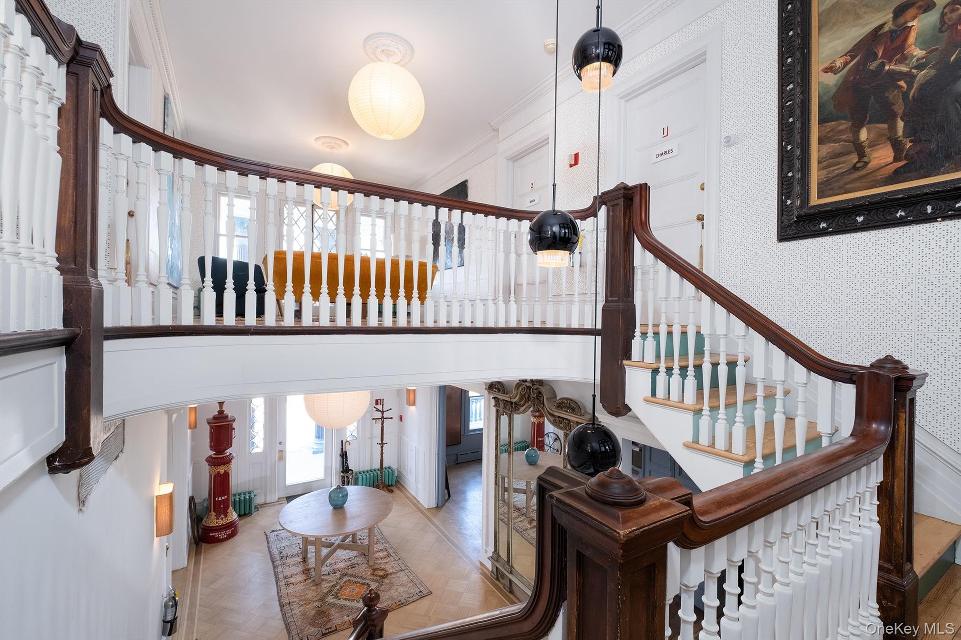 After the original structure was lost to fire in 1899, the current Georgian-style mansion was constructed in 1900 by H.R. Hastings, a prominent figure in New York’s Gilded Age society, reportedly as a wedding gift for his wife, Mary Hastings. The home was designed for entertaining and welcomed a distinguished social circle.