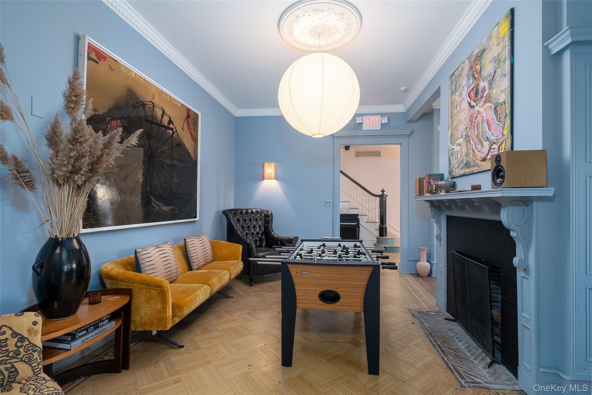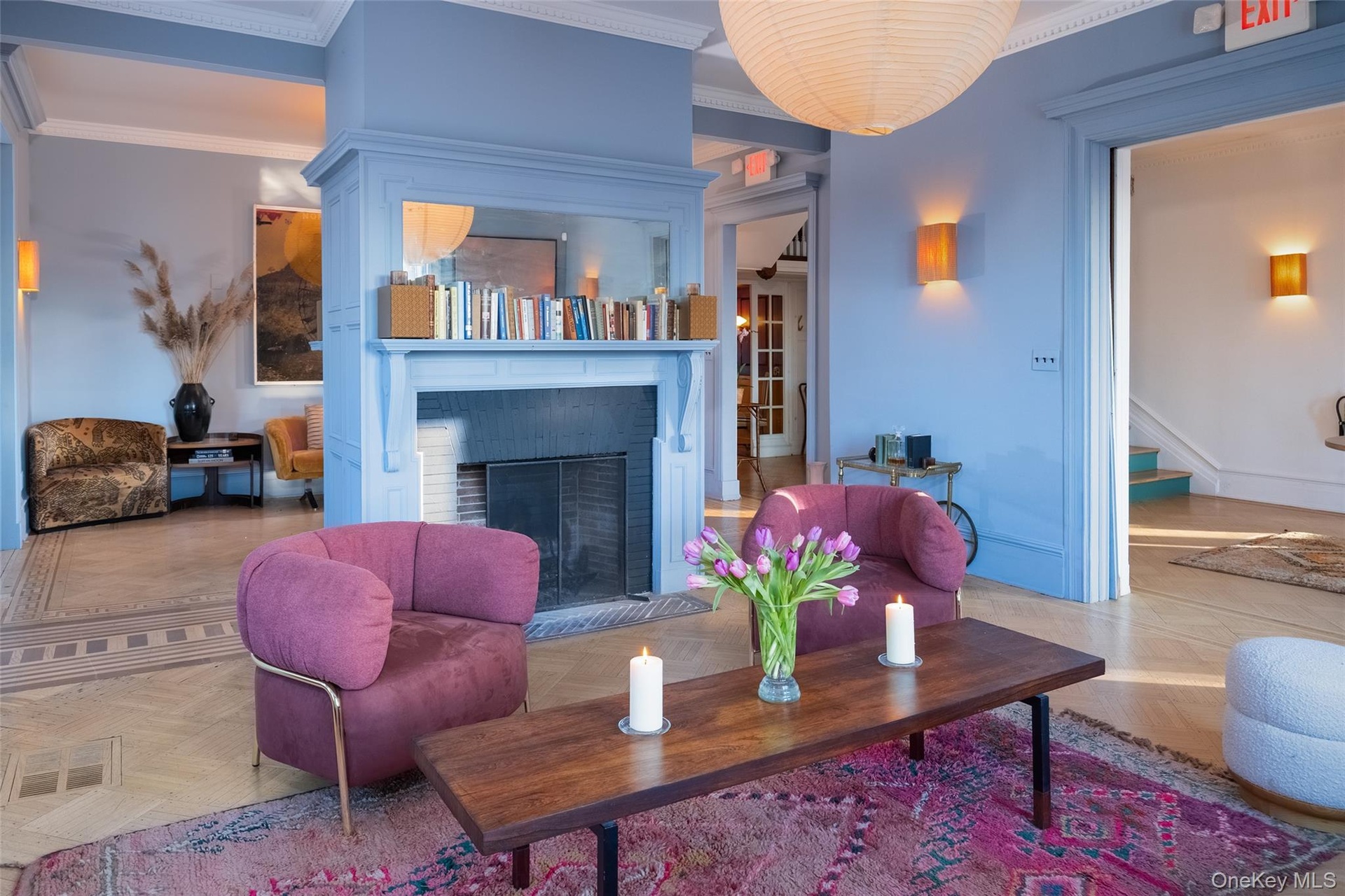 The six-bedroom main residence has been recently restored and thoughtfully redesigned, achieving a seamless balance between original architectural detail and sophisticated modern comfort. Period millwork, well-proportioned formal rooms, and historic finishes coexist effortlessly with updated systems and amenities, resulting in interiors that feel both elevated and timeless.