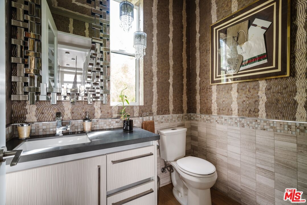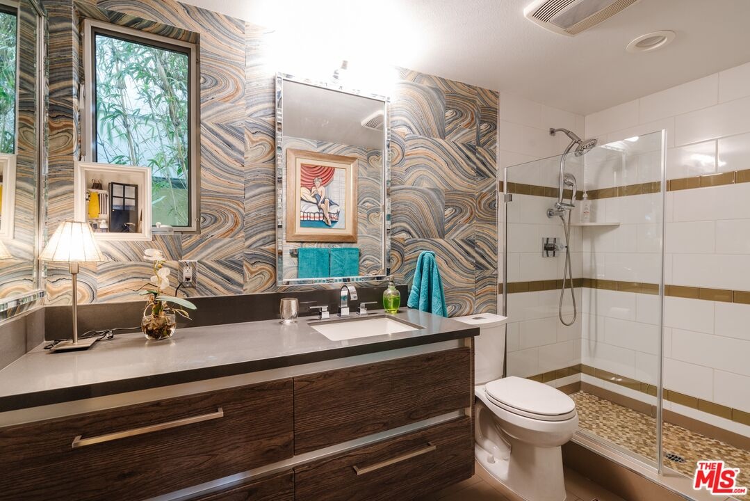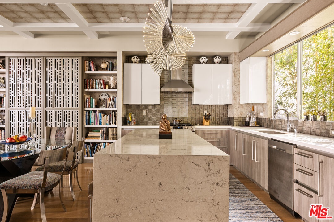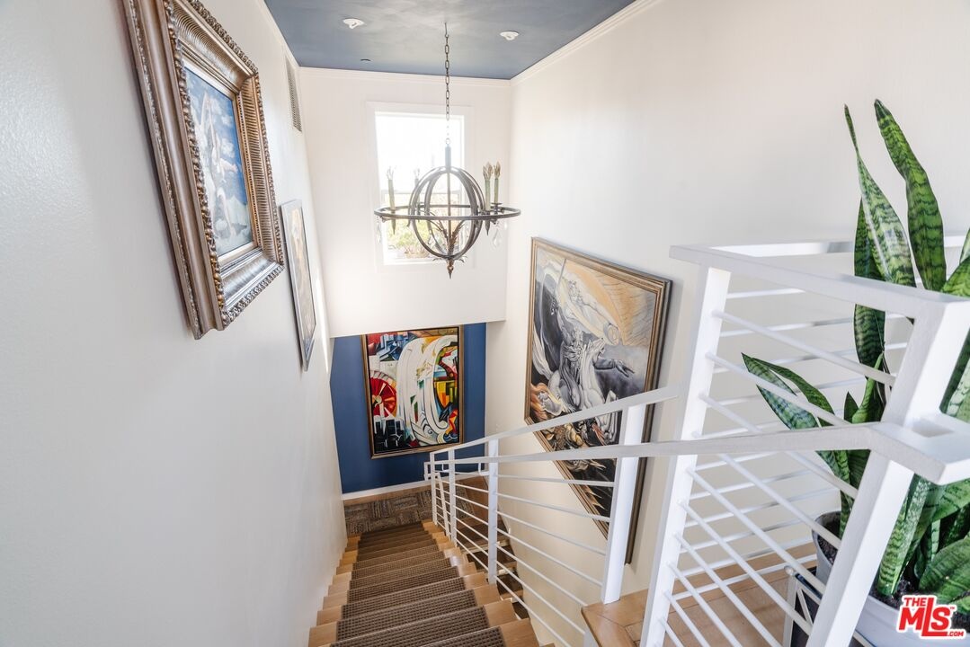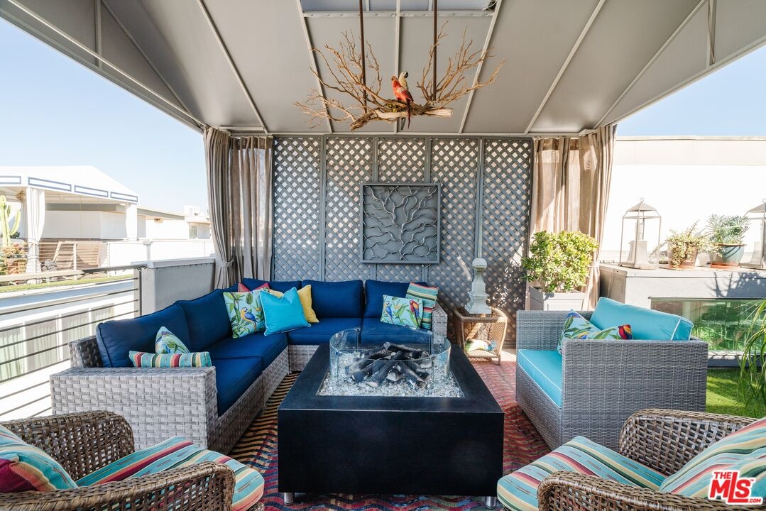 Tucked away on a private gated, brick-paved street, this radiant modern smart home offers both security and serenity in the heart of Hollywood's Media District.From your own oversized, EV-ready two-car garage with storage you step inside to discover the generous two-story gallery-like entry foyer. A stylish bedroom with a full bath and access to a beautifully landscaped lanai perfect as a serene guest suite or sophisticated home office.A graceful, wide staircase leads to the dramatic main floor, where soaring coffered ceilings crown a voluminous great room, seamlessly integrating the open-concept living, dining, with refined built-ins, and chef-inspired kitchen. The kitchen features custom cabinetry, sleek quartz countertops, a large waterfall island, and premium appliances that blend high design with everyday function ideal for both entertaining and intimate evenings at home.Upstairs, you'll find a luxurious primary suite with coffered ceiling and an additional guest suite, currently being used as an office, both offering spa-like bathrooms, generous closet space, and designer finishes that elevate comfort into something extraordinary.Crowning the home is a rooftop terrace your private outdoor sanctuary equipped with a free standing open-sided gable roof large gazebo lounge, bright and breezy under the sun, soothing and exotically inviting under the stars, dining, sink service area, and BBQ areas, all framed by sweeping views of the city skyline, the Hollywood Hills, and its iconic sign. Whether basking in the sun or under the stars, this rooftop retreat is unmatched. Perfectly situated on serene West Hepburn Way, this residence places you just steps from acclaimed restaurants including the Tesla Diner drive-in theater with 75 - V4 Supercharger stalls, premier art galleries, several live theaters and the vibrant pulse of Hollywood all while offering the peace of a tucked-away retreat. Sunlit and airy throughout the day, the home transforms at night into a haven of tranquil, exotic comfort. Rare, radiant, and move-in ready this is a must-see opportunity that won't last.