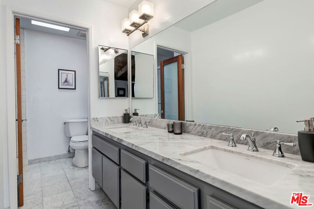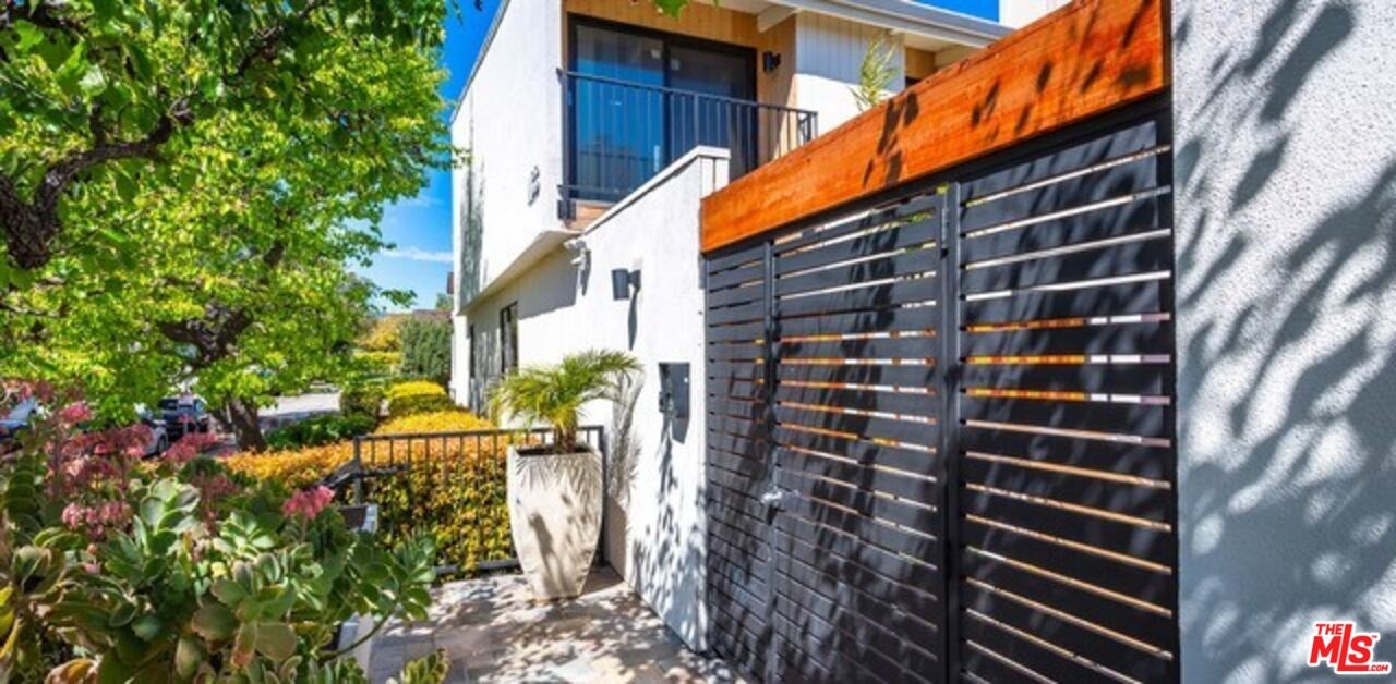 Recently renovated bright townhome with great flow in the heart of Santa Monica! Enter the oversized private front patio to the open living room with wood burning fireplace & sliding door to patio. Living room leads to inviting dining room with custom built-in bar & wine fridge, ideal for entertaining. Updated square kitchen with newer top of the line appliances (including "smart" refrigerator), pantry & ample cabinetry. Breakfast bar off kitchen opens to spacious Den / Family Room / Office with powder room & sliding door to back patio with BBQ. Upstairs has beautiful rustic wood ceilings, skylight & 2 separate, non-adjoining en-suites, both with high pitched ceilings. Luxurious primary suite has large custom closet & balcony. Primary bathroom has double sinks, marble counters & floors & skylight. This home has gated side-by-side parking with type 2 EV charger, central AC with Nest system, beautiful hardwood flooring throughout, in-unit side-by-side laundry, 3 outdoor areas, great in-unit storage, ample street parking & new double pane windows/sliders throughout, creating wonderful natural light! Exceptional smaller building was recently updated, including new paint, new doors & new front balcony enclosures. Excellent "Walkability" with extremely close proximity to Whole Foods, Trader Joe's, restaurants, bars, Douglas Park & more! Outstanding public schools: zoned to Franklin Elementary School & Lincoln Middle School. Easy access: 1 mile to 10 freeway, 1 mile to Metro stop, & 2 miles from beach/PCH.
