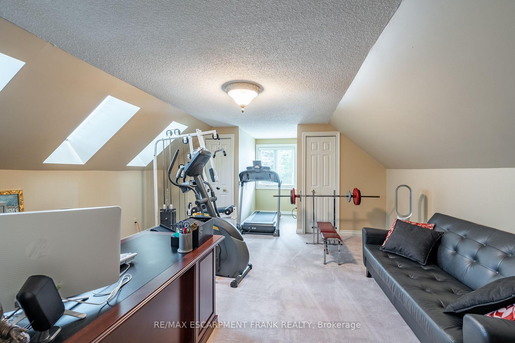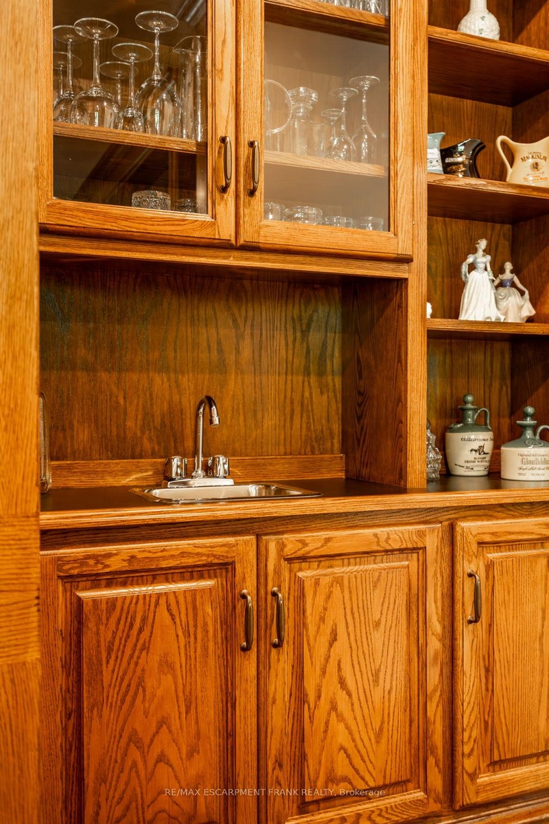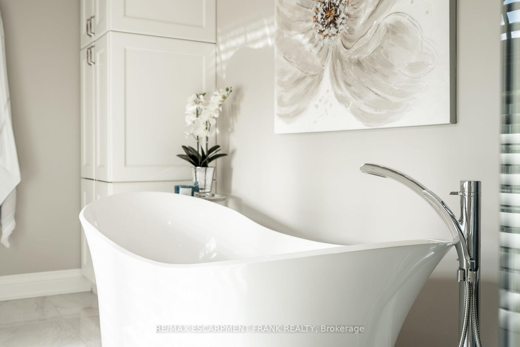 Exceptional Estate in One of Ancaster's most sought-after Neighbourhoods! Just steps from the prestigious Hamilton Golf & Country Club, this remarkable estate offers over 4000sqft above grade of living space on a generous pie-shaped lot w/ lush landscaping, inground pool & a resort-like bckyrd! The approach alone is unforgettable- you're greeted by a picturesque streetscape, grand windows & exterior drs (replaced '11-'15), extensive stonework & landscaping ('14) & an incredible architectural presence. Inside, a stunning dbl staircase (reno'd Spring '21) makes an immediate statement. Beneath the staircase, the elegant great rm feat rich oak wainscoting & a gas fp, creating a warm yet sophisticated gathering space. Main flr hdwd '21. The kitchen, fully reno'd in '21, boasts Cambria quartz countertops & premium Thermador appl. Step outside from the kitch to an extraordinary, bckyrd oasis designed for entertaining! Highlights include two gas fp, multiple outdoor entertaining areas, an impressive L-shaped pool & ample green space for children and pets. Landscaping by Cedar Springs in '11. The main lvl also offers a gracious living rm w/ a wood-burning fp, a formal dining rm, a regal office w/ oak detailing and wainscoting, a 2-pc bthrm and a convenient main-flr lndry rm off the grg w/ heated floors. Upstairs, you'll find 4 generously sized bdrms and 3 full bthrms. The children's rms share a Jack & Jill bthrm reno'd in 15', while the luxurious primary suite feat his-and-hers w/i closets, a spa-like ensuite reno'd in 15' w/ Cambria Quartz countertops, heated flrs, and an add'l gym or private office. The lower lvl offers exceptional versatility, w/ a spacious bdrm, full kitch w/ granite countertops ('15), and a reno'd bthrm w/ heated flrs ('15). With a sep entrance, this lvl is ideal for summer entertaining, pool access, or extended family living. A truly rare offering-private, elegant, and perfectly located-this home delivers timeless design & an unmatched lifestyle.