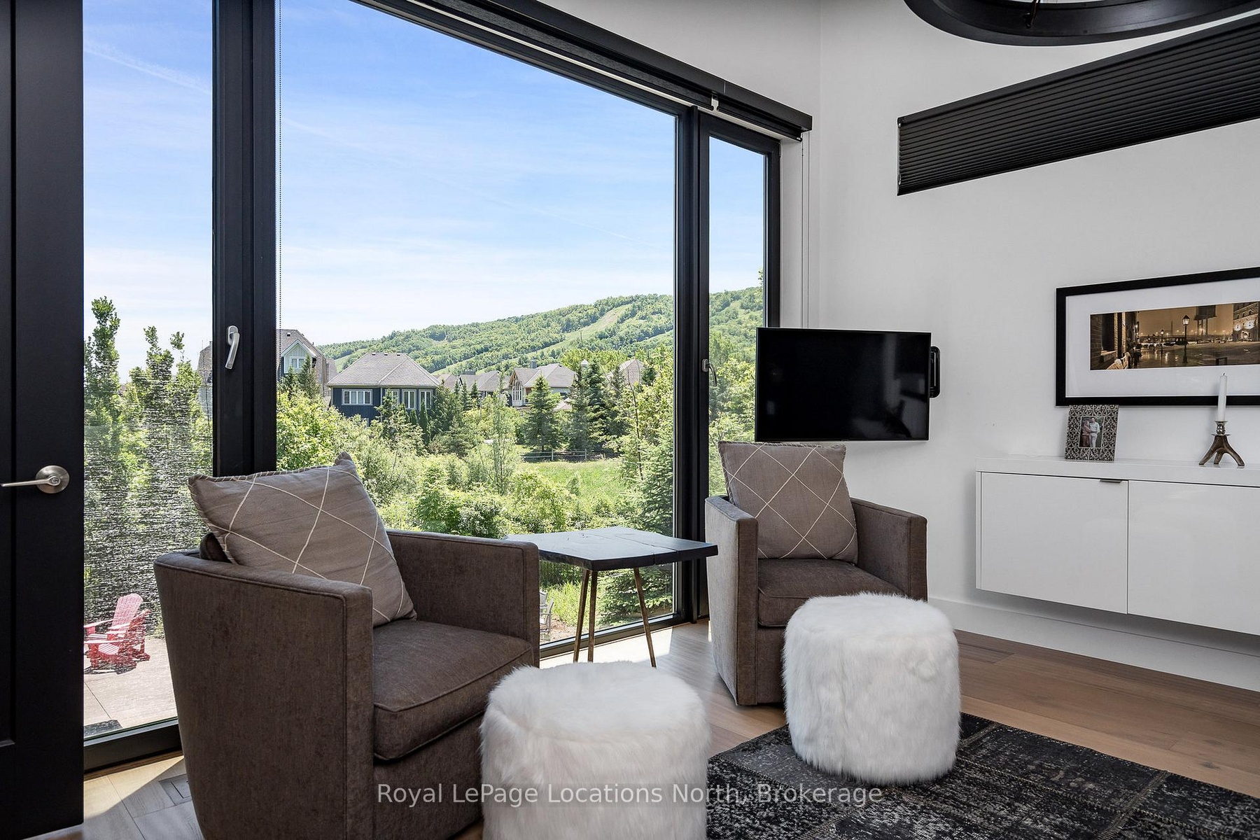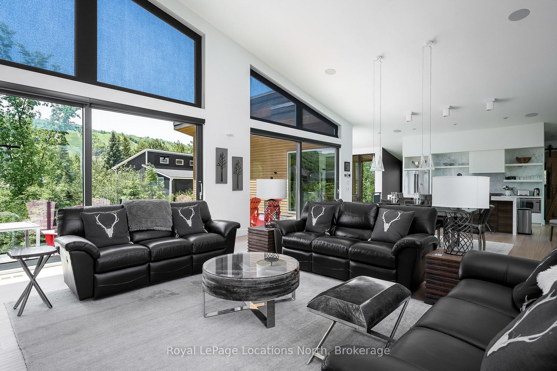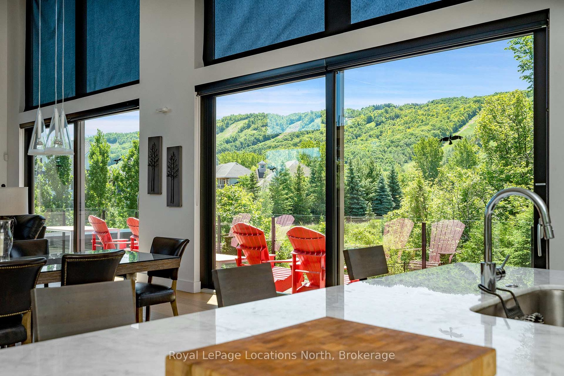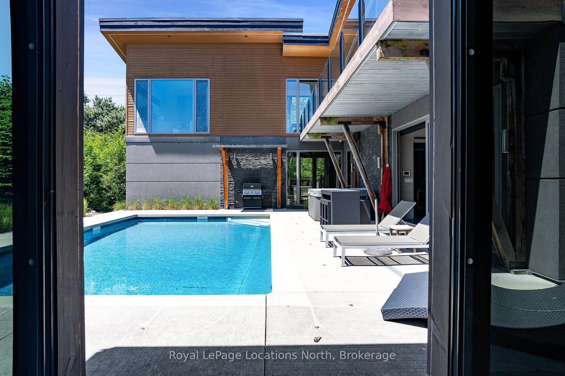 An Architecturally Iconic Luxury Ski Chalet, just steps from Craigleith. This celebrated retreat offers a rare balance of total privacy and effortless access, moments from the ski hills and tennis courts. Set on an expansive 100' x 159' lot backing onto tranquil green space, the property is beautifully landscaped to create a true four-season sanctuary. Designed for elevated mountain living, the chalet features a resort-style swimming pool, pool house, and hot tub, all framed by dramatic TILCO lift-and-slide window walls across two levels, capturing sweeping views of the ski hills and grounds beyond. Spanning three levels, the residence offers six luxurious bedrooms and four bathrooms. The upper-level great room is a showpiece, with soaring 22-foot ceilings, a Rumford-style gas fireplace, and a cantilevered walk-out deck-perfect for après-ski gatherings. The chef's kitchen is outfitted with premium appliances, a striking island, and a walk-in pantry, seamlessly blending form and function.The private primary suite occupies the upper level as well, featuring a distinctive walk-in closet and serene views. On the main floor, a sophisticated media lounge opens directly to the pool deck through expansive sliding doors and includes a wet bar / kitchenette, and fireplace, along with two additional bedrooms and full bath. The lower level completes the home with three generously sized bedrooms and another bath, ideal for hosting family and guests. This exceptional ski chalet is offered for immediate possession - an unparalleled opportunity to own a landmark retreat in one of the area's most coveted locations.