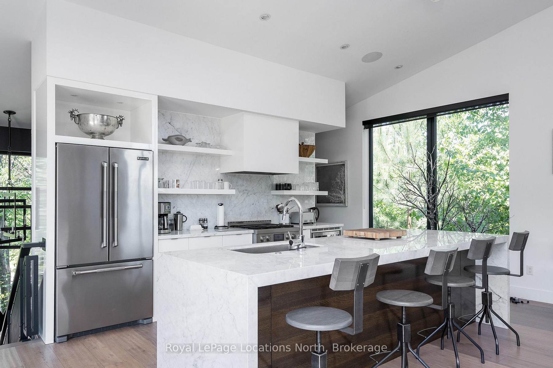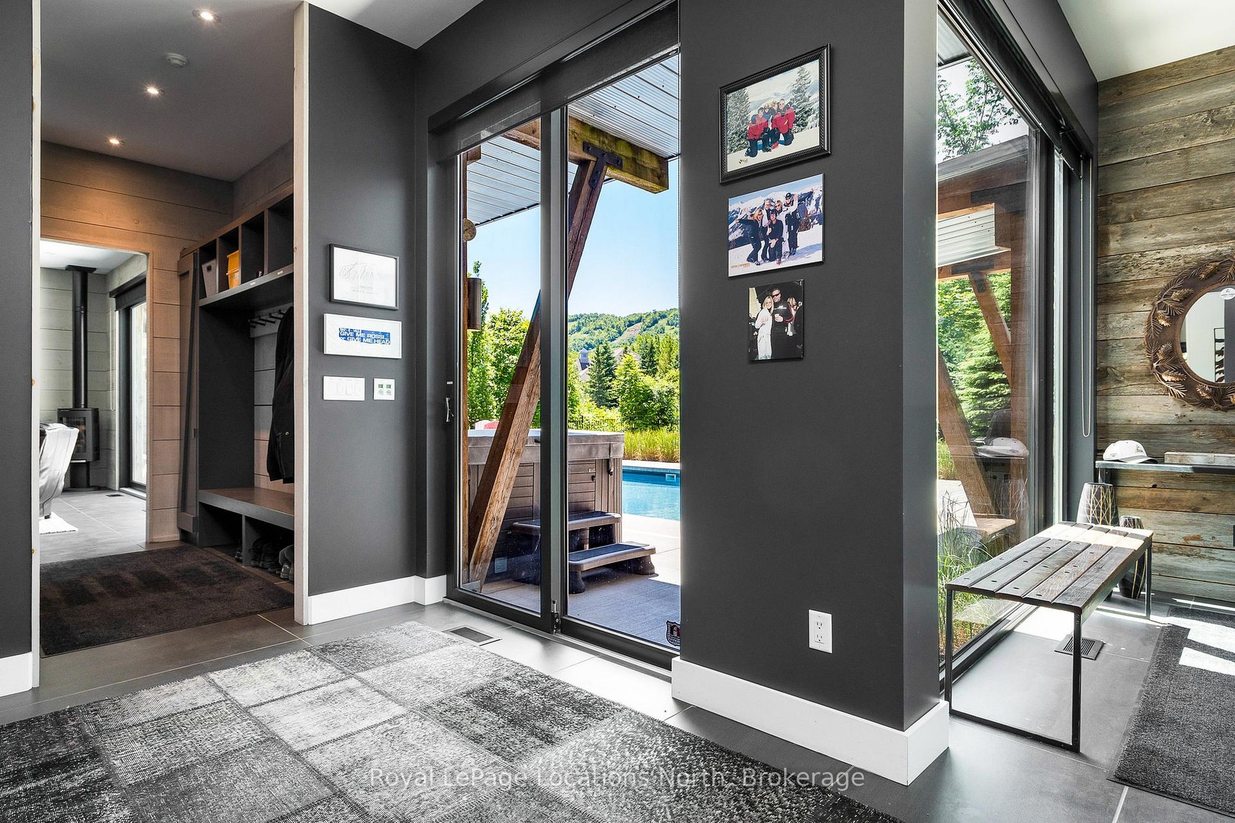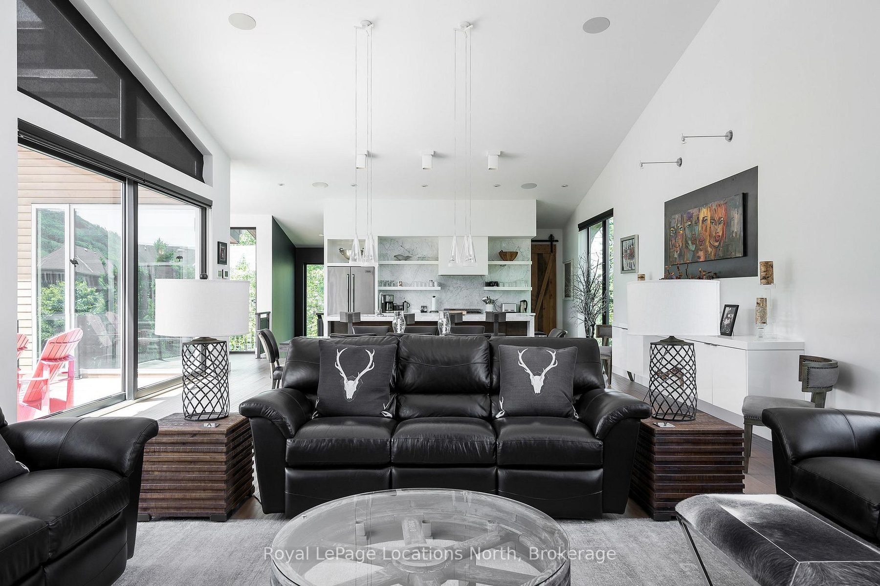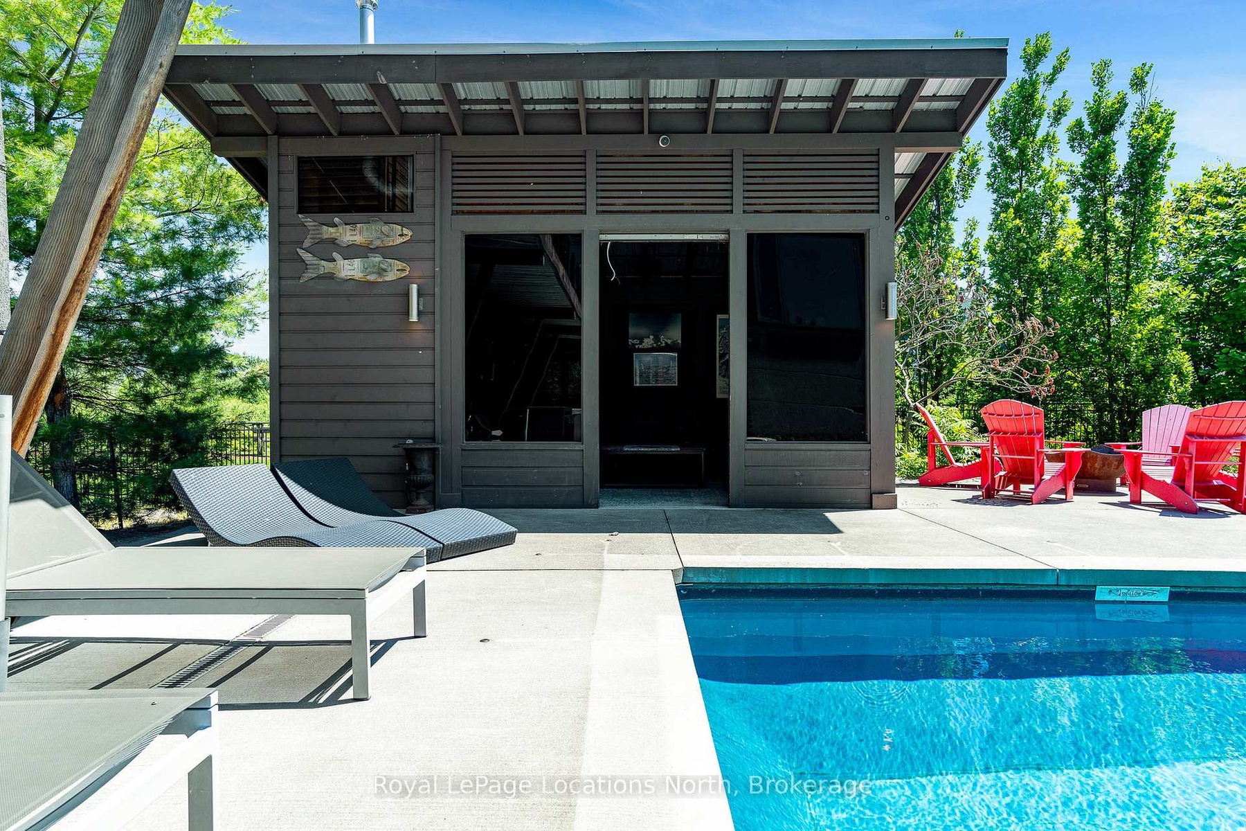 An Architecturally Iconic Luxury Ski Chalet, just steps from Craigleith. This celebrated retreat offers a rare balance of total privacy and effortless access, moments from the ski hills and tennis courts. Set on an expansive 100' x 159' lot backing onto tranquil green space, the property is beautifully landscaped to create a true four-season sanctuary. Designed for elevated mountain living, the chalet features a resort-style swimming pool, pool house, and hot tub, all framed by dramatic TILCO lift-and-slide window walls across two levels, capturing sweeping views of the ski hills and grounds beyond. Spanning three levels, the residence offers six luxurious bedrooms and four bathrooms. The upper-level great room is a showpiece, with soaring 22-foot ceilings, a Rumford-style gas fireplace, and a cantilevered walk-out deck-perfect for après-ski gatherings. The chef's kitchen is outfitted with premium appliances, a striking island, and a walk-in pantry, seamlessly blending form and function.The private primary suite occupies the upper level as well, featuring a distinctive walk-in closet and serene views. On the main floor, a sophisticated media lounge opens directly to the pool deck through expansive sliding doors and includes a wet bar / kitchenette, and fireplace, along with two additional bedrooms and full bath. The lower level completes the home with three generously sized bedrooms and another bath, ideal for hosting family and guests. This exceptional ski chalet is offered for immediate possession - an unparalleled opportunity to own a landmark retreat in one of the area's most coveted locations.