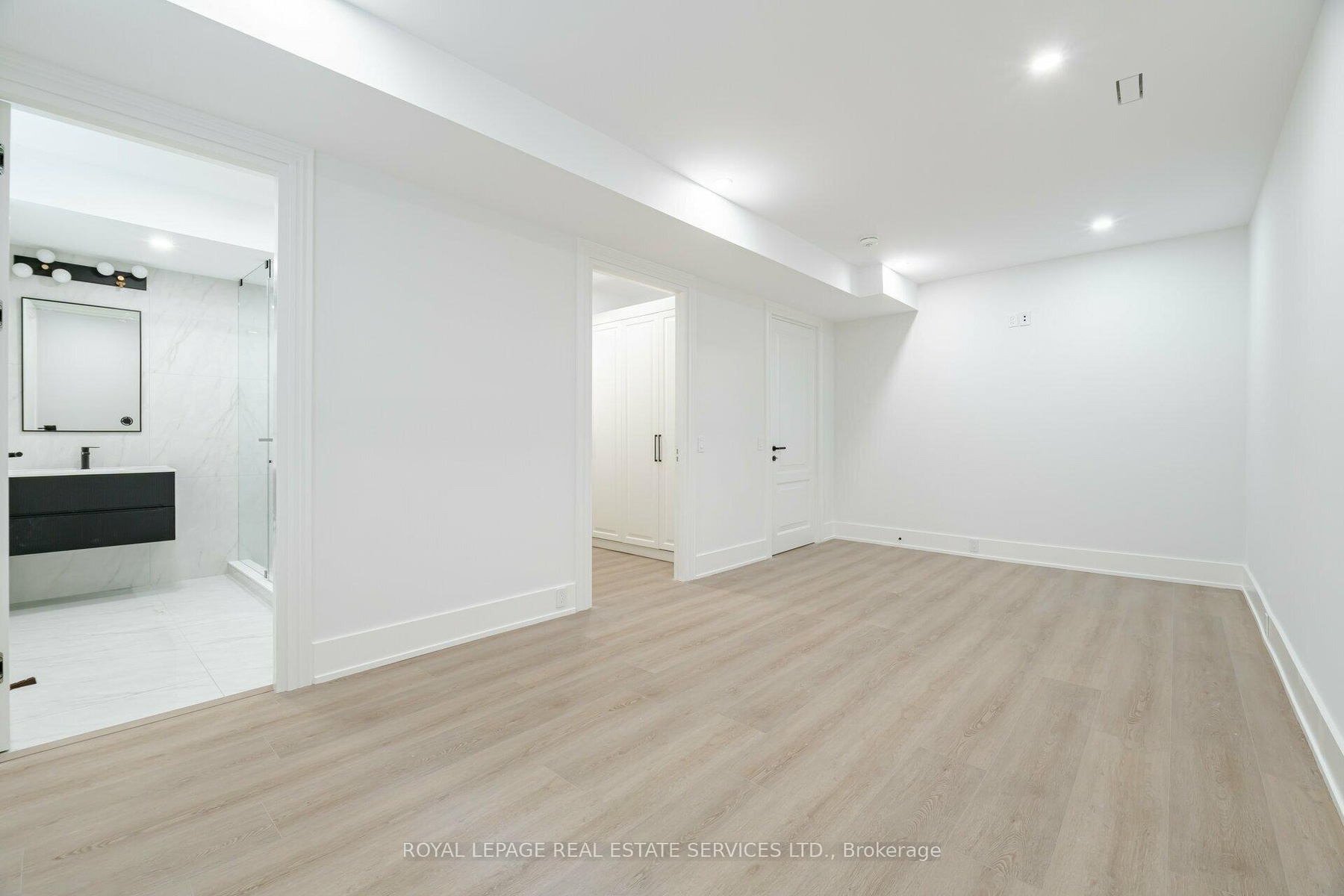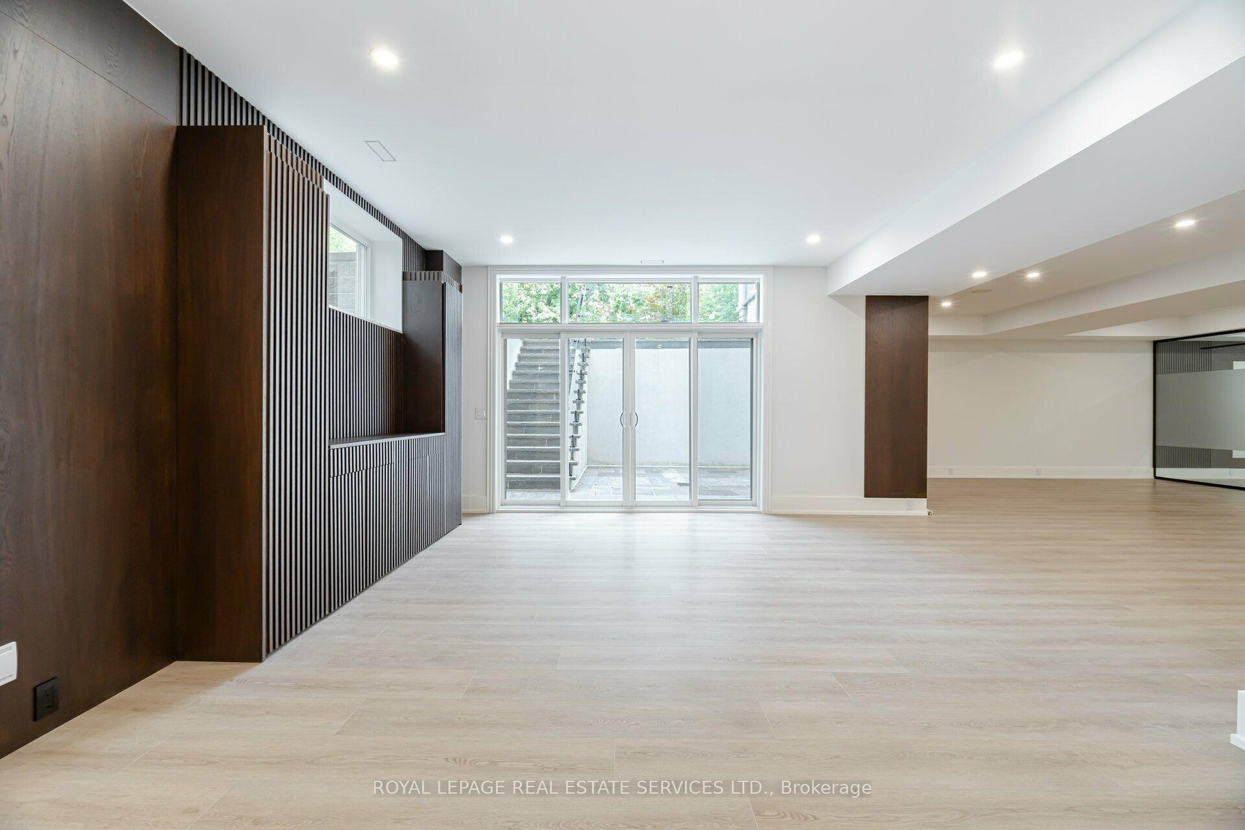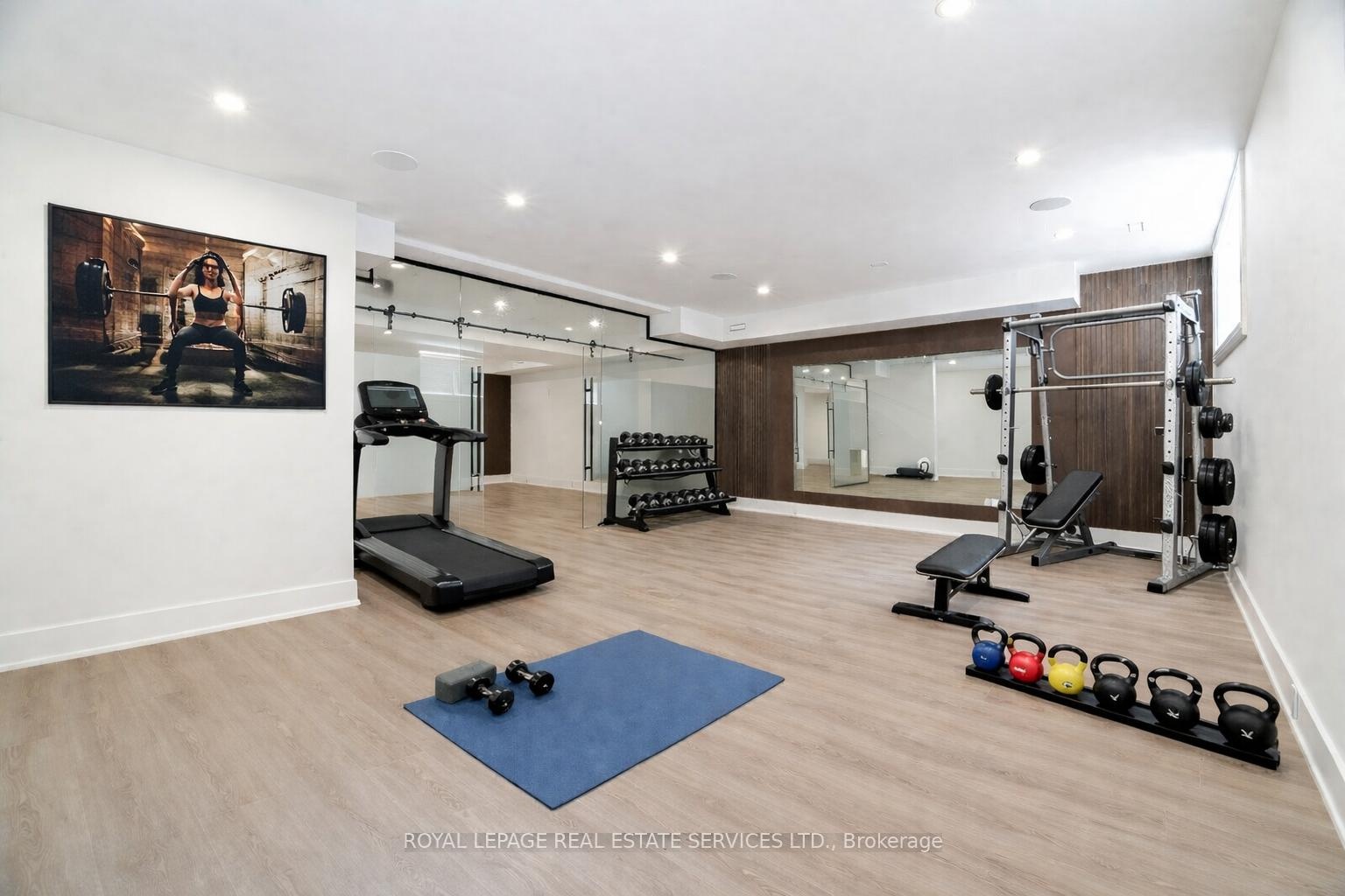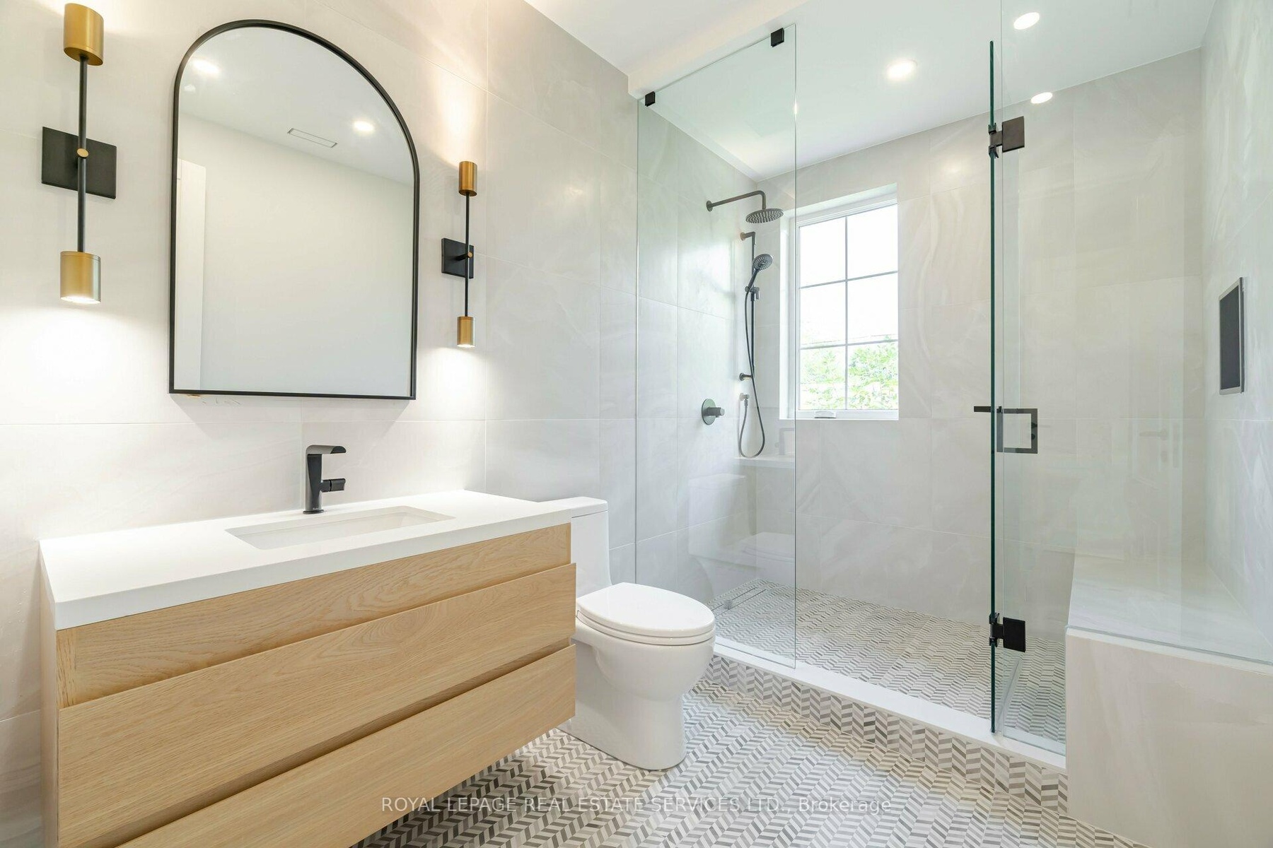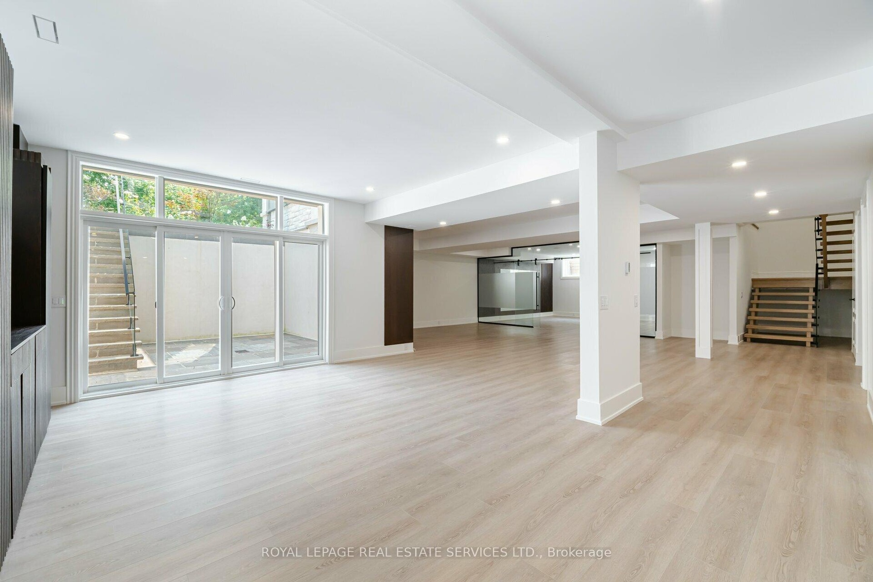 Set on a commanding 112.5'x199.5' lot just steps from the lake, this custom modern-traditional estate offers nearly 11,000SF of finished living space across three levels. A long private drive with parking for up to 12 cars and oversized 3-car garage create a striking arrival, complemented by stone and stucco architecture, soffit lighting, and professionally landscaped grounds. A dramatic double-height foyer introduces the home's scale, anchored by an open-riser staircase with smoked glass panels and integrated lighting. Principal rooms feature tile inlaid borders, herringbone engineered hardwood flooring, oversized windows, and sleek architectural lighting. The chef's kitchen is centred around a 10' quartz island with premium Thermador appliances, bespoke cabinetry, and a dedicated coffee station, flowing seamlessly into the family room with a modern fireplace feature wall, built-in media cabinetry, and multiple walkouts to a covered portico designed for four-season entertaining. A private main-floor office with double French doors and its own exterior entry offers exceptional work-from-home flexibility. Upstairs, four bedroom suites include a luxurious primary retreat with dual walk-in closets and a spa-inspired ensuite featuring a steam shower, freestanding tub, wall-mounted fixtures, and heated floor. The walk-up lower level is designed for lifestyle living with radiant in-floor heating, theatre room, wet bar, glass-enclosed gym, guest suite, pet spa, and extensive storage. Outdoor living is elevated with a rectangular pool and water feature, large-format stone terraces, composite sun deck, covered outdoor fireplace wall with TV rough-in, built-in BBQ station, and pool-house. Smart home technology, multi-zone audio, dual HVAC systems, and security surveillance complete this exceptional Lakeshore Road offering near parks, trails, and Bronte amenities. An outstanding blend of architectural presence, scale, and resort-style living! (some images have virtual staging)