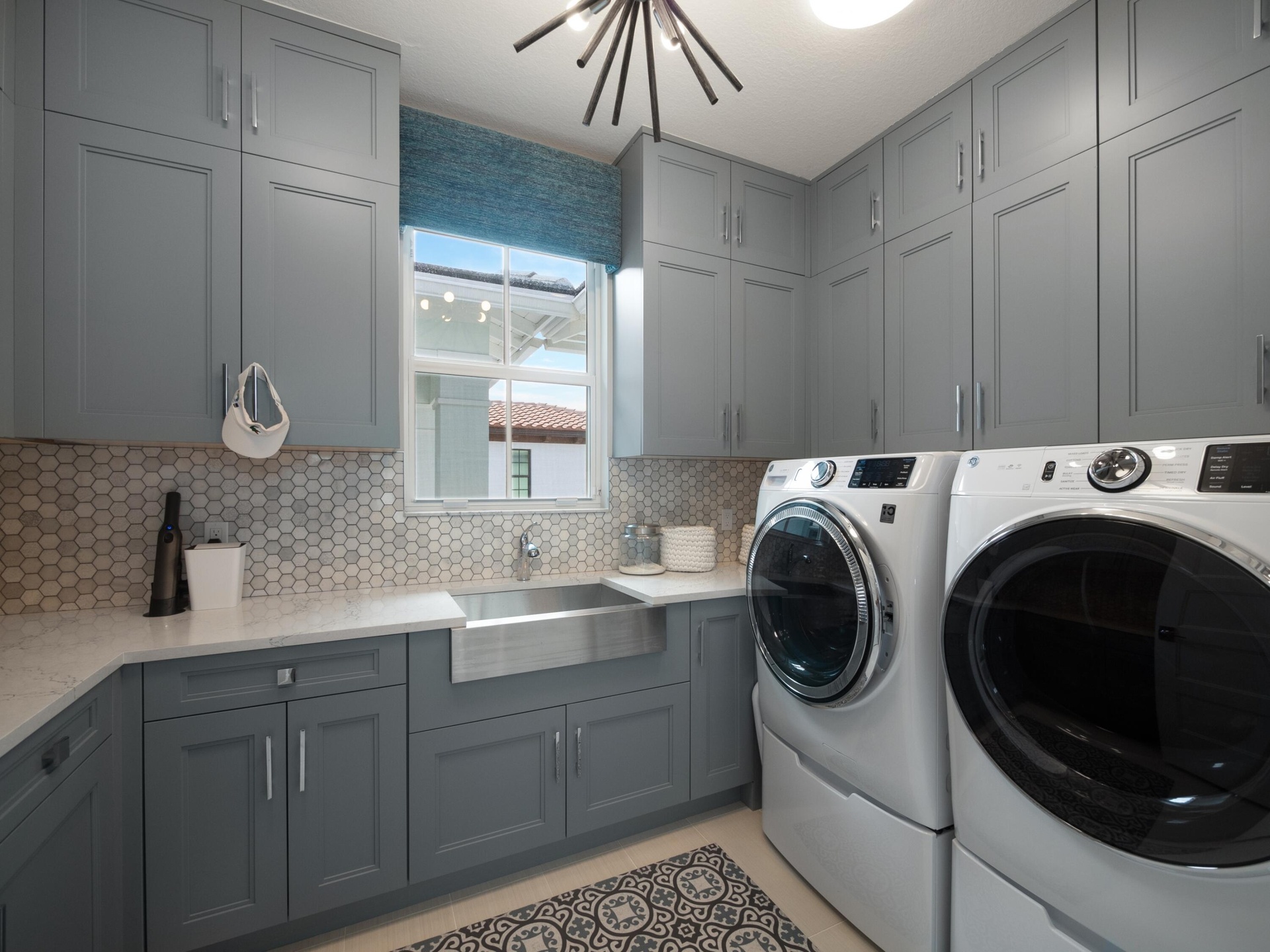 Luxurious living at its finest, this 4,999-square-foot residence in the prestigious Alton community radiates opulence with coffered ceilings, custom trim, and a fully equipped laundry room with GE Washer & Dryer. Enjoy comfort with impact doors and windows, electric blinds, Eco water, and a Rinnai tankless water heater. The garage is equipped with a Tesla electric car charger.