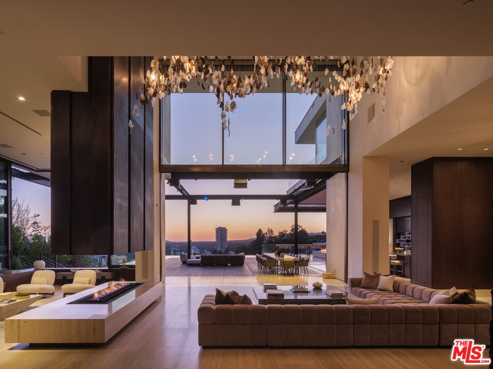 Perched above the city on a coveted promontory, 1305 Collingwood Place is a statement estate where architecture, technology, and sweeping views converge. Spanning approximately 11,800 square feet, this six-bedroom, seven-bathroom residence is designed for those who value scale, privacy, and effortless indoor-outdoor living. A dramatic retractable glass wall dissolves the boundary between inside and out, unveiling panoramic vistas stretching from Downtown Los Angeles to the Pacific Ocean. The expansive entertainer's deck functions as a private resort, complete with an infinity-edge pool, spa, fire feature, and built-in barbecue ideal for sunset gatherings or quiet mornings above the city. The primary suite occupies its own serene level, offering a private balcony with sweeping views, a spa-like bath with soaking tub, and dual walk-in closets creating a true retreat within the home. Additional amenities include a temperature-controlled wine cellar, media room, state-of-the-art gym, and spa and sauna accented with salt walls for ultimate relaxation. The residence is fully integrated with Savant smart-home technology, allowing seamless control of lighting, climate, and security throughout. A rare 20-foot, three-car garage with lift capability accommodates up to six vehicles, completing a property that effortlessly blends luxury, innovation, and livability. This is a rare opportunity to experience elevated Southern California living at its finest.