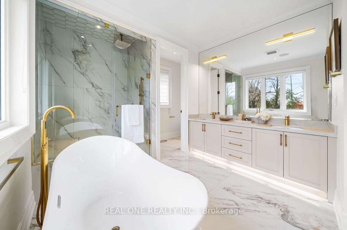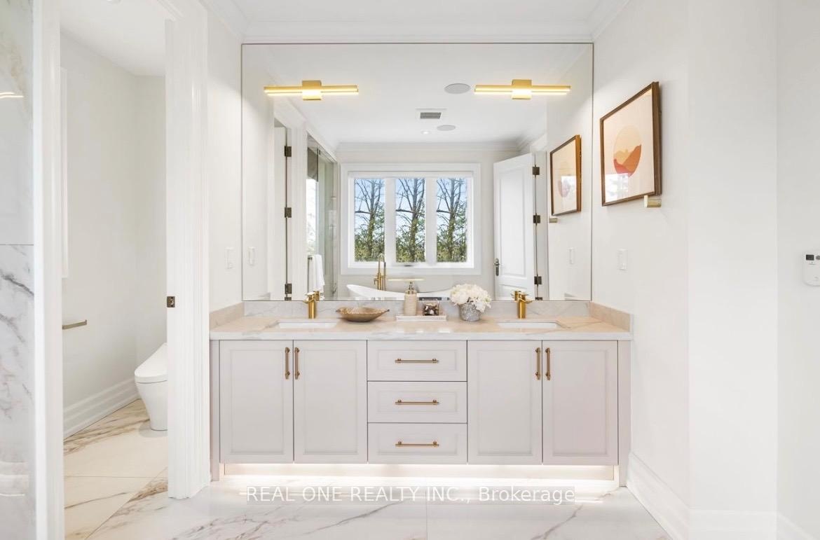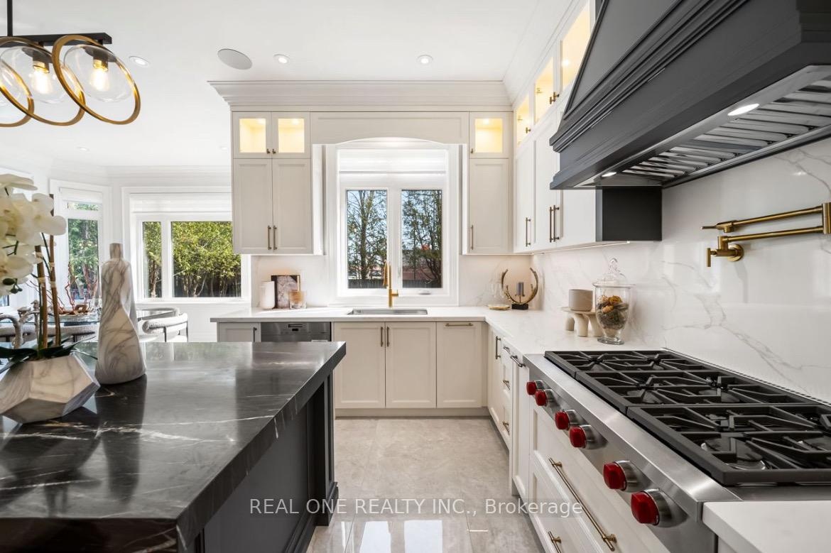 Welcome to this new built, meticulously crafted estate, offering approximately 7000 sq. ft living apace nestled in the heart of Markham at Buttonville community! Featuring 4+2 bedrooms 6-bathroom. Luxury Bronze entrance door with Smart Lock. The main level features a Sunlit Stunning double-story high grand Foyer, built-in speakers, hardwood flooring, elegant paneling, custom moulding, Premium lighting illuminate every space, enhanced by an abundance of natural light from skylights and expansive windows. The finest craftsmanship throughout, plaster moldings, Skylight, Oak Stairs. The modern gourmet kitchen is a chefs dream, equipped with top-of-the-line appliances and featuring a chef-inspired gourmet kitchen with top-tier appliances, central island, and stunning countertops, catering/work kitchen offering additional prep space and storage. The breakfast area opens to the sunlit deck. Bright family room with custome built-in showcases & fireplace, and panoramic views of the backyard. Private office and functional mudroom with garage access complete the main floor. The primary suite is a true retreat, featuring a luxurious 6-piece ensuite, a Toto automatic toilet, along with a spacious walk-in closet. Elegant drop ceilings and custom lighting details enhance the ambiance. All four generously sized bedrooms feature ensuite bathrooms. Second floor laundry room adds convenience. Fully finished basement offers spacious recreation room with fireplace and feature wall, 2 additional bedrooms, and walk-up to backyard. Built-in speaker/sound system, security camera system, cvac. Close to Hwy 404 and Hwy 407, and within walking distance to First Markham Place, shops, restaurants, and transit and much more!