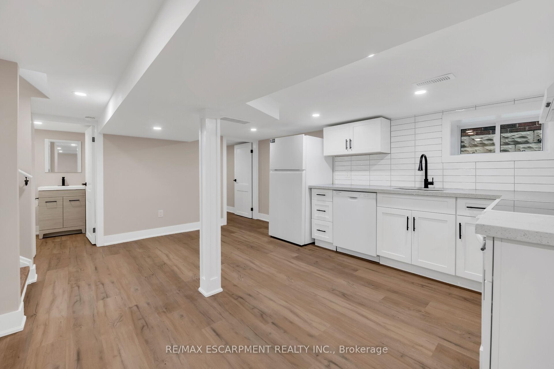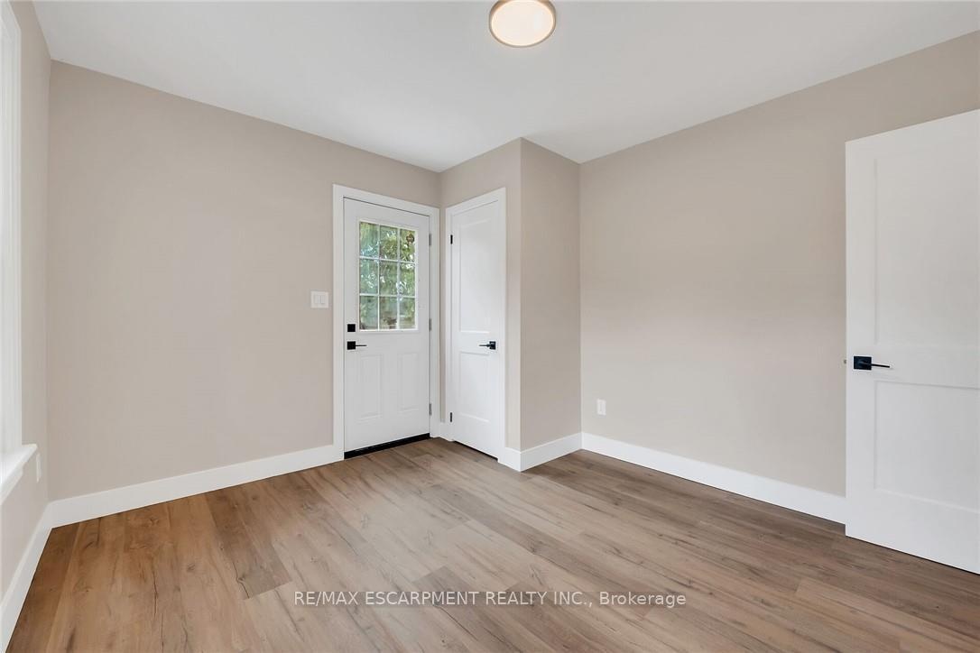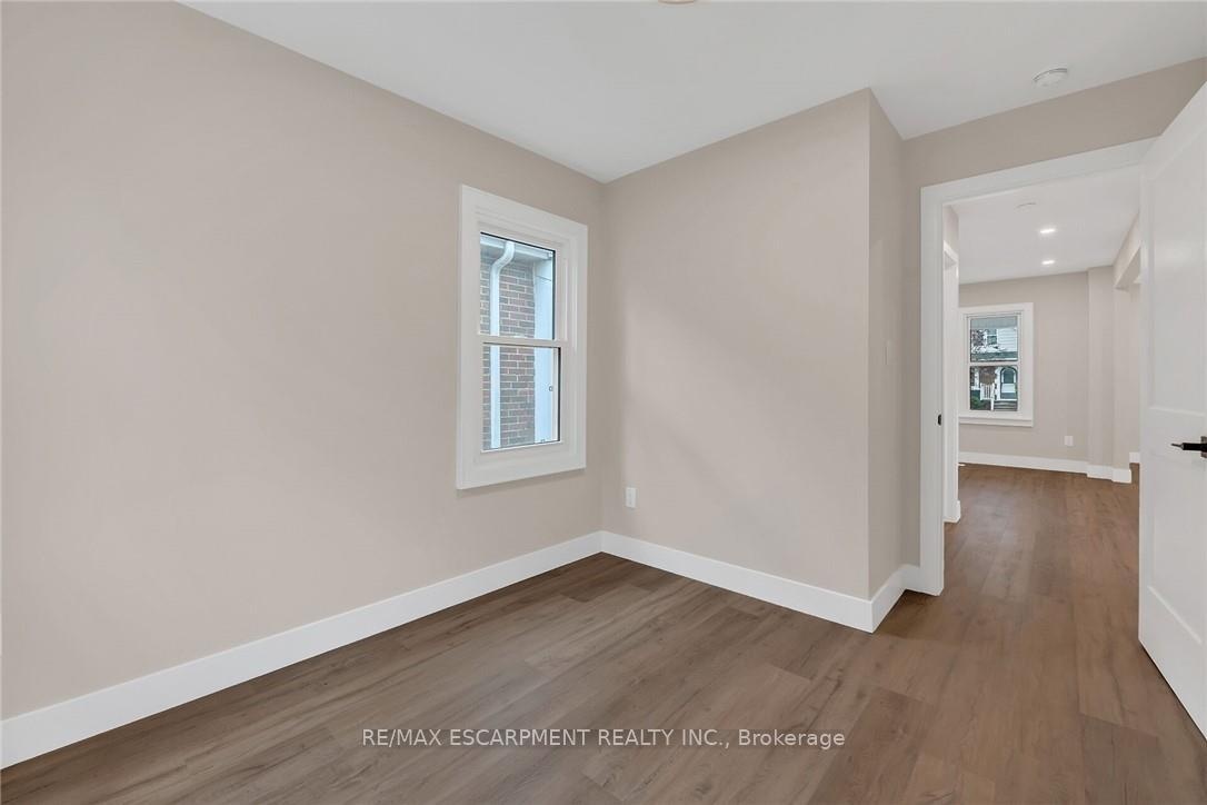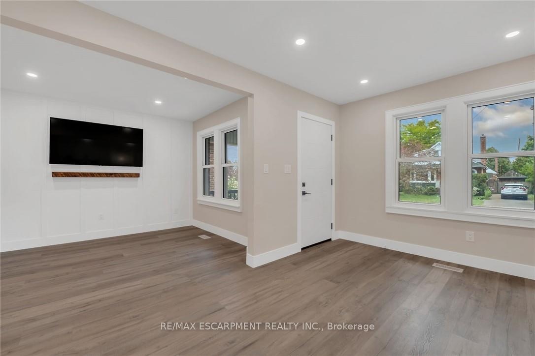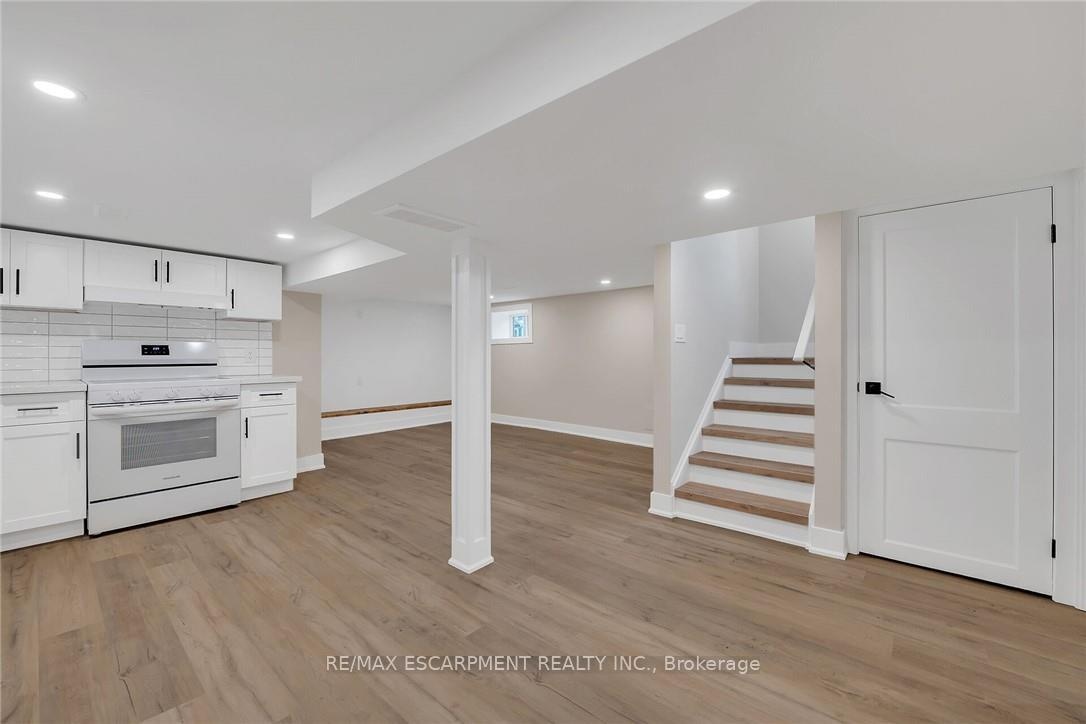 The home you've been waiting for--featuring a FULL IN-LAW SUITE with private side-door entry! Offering 4 total bedrooms plus a den, 2.5 brand-new bathrooms, 2 new kitchens, 2 laundry rooms, and parking for 4 cars, this property checks every box. Step into the main floor and you'll find a custom kitchen with quartz countertops, undermount sink, backsplash, crown molding, pot lights, and a bright, open layout that flows into your living room, flooded with natural light. The main floor also includes 2 bedrooms, a 4-piece bathroom, laundry, and walkout access to your fully fenced, private backyard. Providing all you need on one floor of living space!!! Upstairs offers a large bedroom, convenient 2 pc bath, and a bonus den ideal for a child's play area or home office setup!! The fully finished basement is in-law suite ready, complete with its own private side entrance, full custom kitchen with again quartz countertops, undermount sink, backsplash and pot lights open concept to your spacious living room. With a bedroom, 3-piece bath, and laundry this space is perfect for an extended family, a teenager who needs their own space or added income. Updates include all-new flooring, 2 new kitchens, 2.5 new bathrooms, new lighting, doors, trim, new driveway, and much more. Located in a highly desirable neighborhood, within walking distance to parks, schools, trails, and all amenities. Just minutes to Downtown, QEW, 403, Red Hill, and The LINC-this home truly has it all.