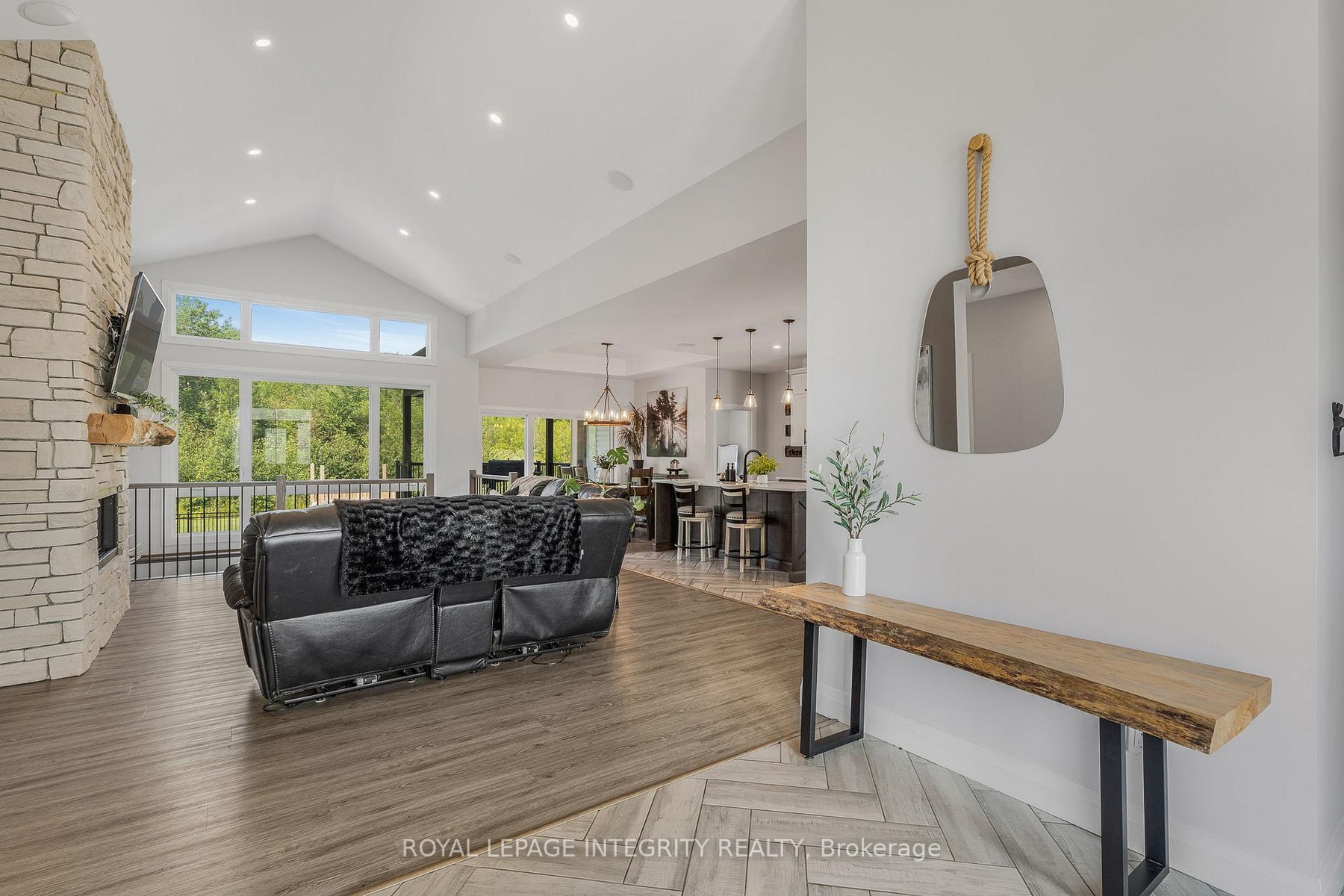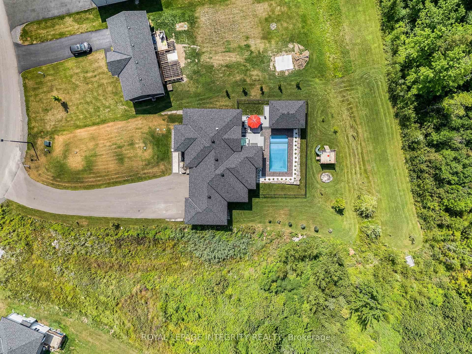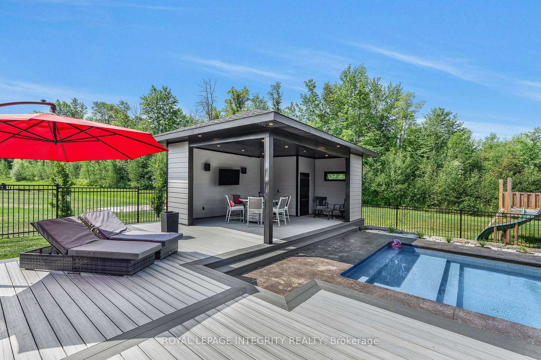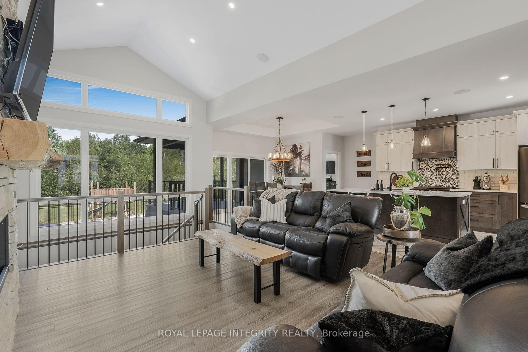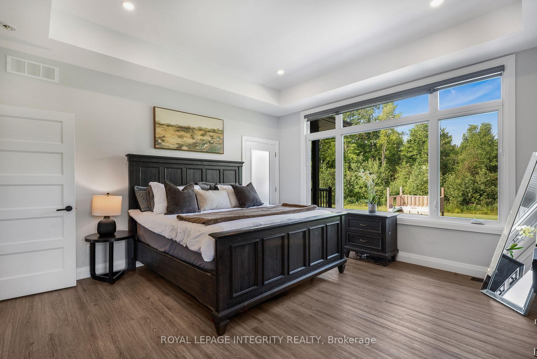 Welcome to this exceptional 3+1 bedroom, 3.5 bathroom custom-built bungalow, thoughtfully designed with high-end finishes and modern comfort in mind. Set on a private, landscaped lot, this home offers a perfect blend of style, function, and serenity. The open-concept main level features vaulted ceilings, wide plank flooring, and oversized windows that flood the space with natural light. The chefs kitchen impresses with quartz countertops, two-tone cabinetry, a statement backsplash, and a large island ideal for both cooking and entertaining. The primary suite is a true retreat with a luxurious ensuite boasting a freestanding soaker tub, walk-in shower with custom tile, and expansive windows with views of nature. The fully finished basement adds a spacious recreation room, a fourth bedroom, full bath, and room for a gym or office. Step outside to your own private oasis: a beautifully fenced yard with an inground pool, hot tub, and multi-level composite deck, offering the perfect setting for relaxation or entertaining. Complete with an oversized three-car garage, paved driveway, and surrounded by greenery, this property offers refined living in a peaceful, family-friendly location just minutes to local amenities.