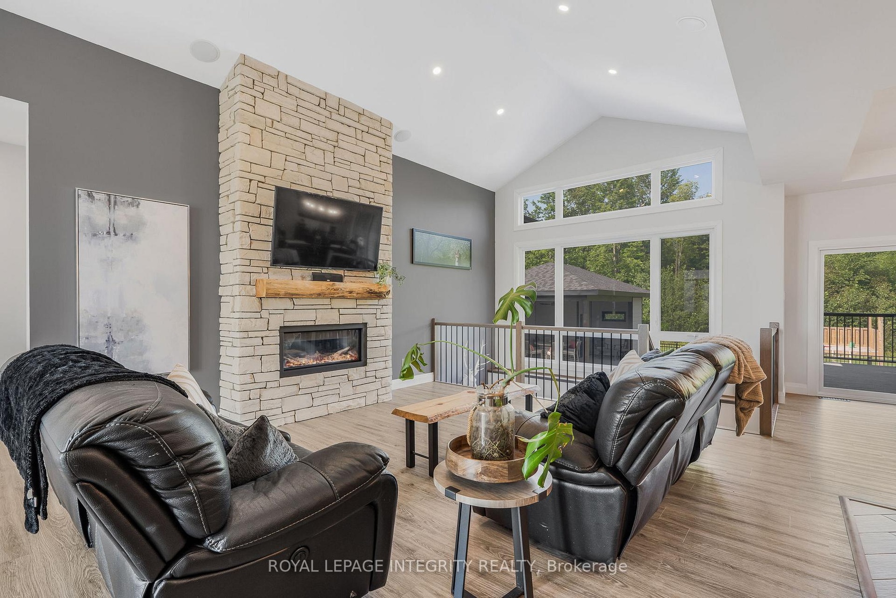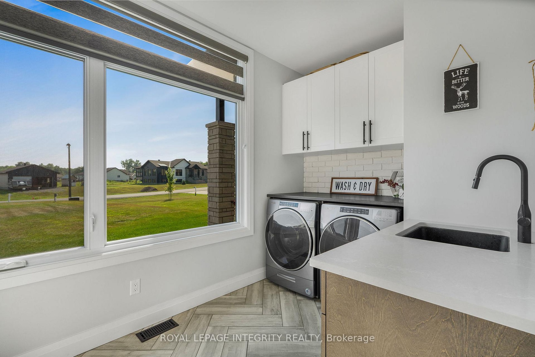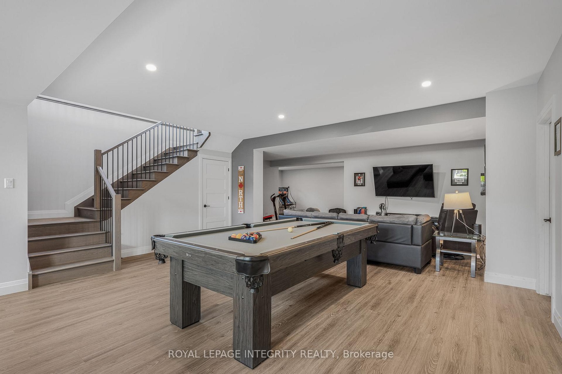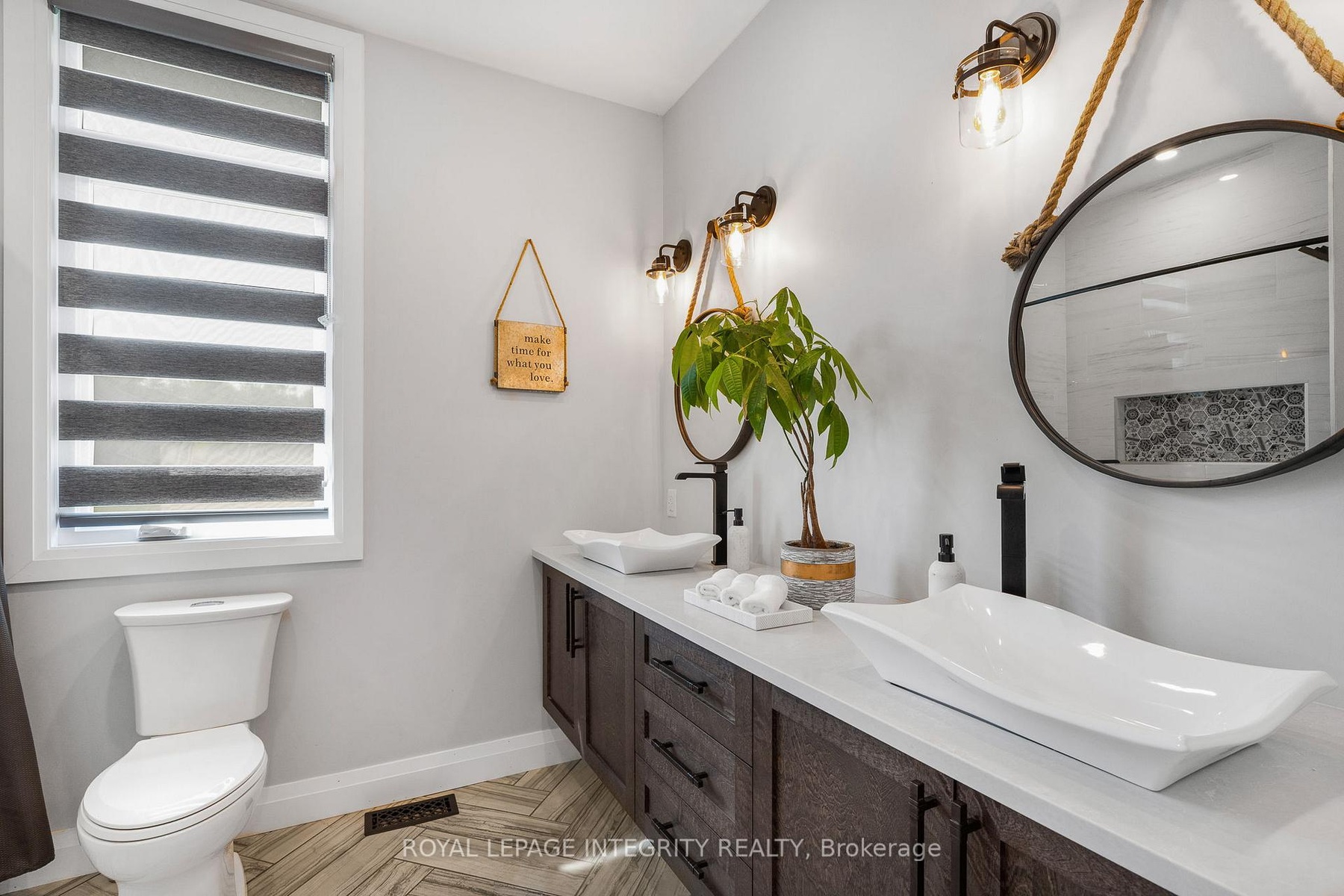 Welcome to this exceptional 3+1 bedroom, 3.5 bathroom custom-built bungalow, thoughtfully designed with high-end finishes and modern comfort in mind. Set on a private, landscaped lot, this home offers a perfect blend of style, function, and serenity. The open-concept main level features vaulted ceilings, wide plank flooring, and oversized windows that flood the space with natural light. The chefs kitchen impresses with quartz countertops, two-tone cabinetry, a statement backsplash, and a large island ideal for both cooking and entertaining. The primary suite is a true retreat with a luxurious ensuite boasting a freestanding soaker tub, walk-in shower with custom tile, and expansive windows with views of nature. The fully finished basement adds a spacious recreation room, a fourth bedroom, full bath, and room for a gym or office. Step outside to your own private oasis: a beautifully fenced yard with an inground pool, hot tub, and multi-level composite deck, offering the perfect setting for relaxation or entertaining. Complete with an oversized three-car garage, paved driveway, and surrounded by greenery, this property offers refined living in a peaceful, family-friendly location just minutes to local amenities.