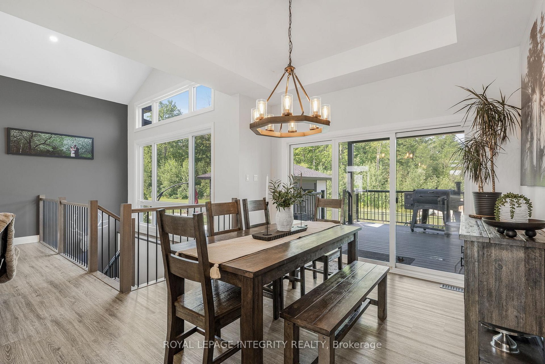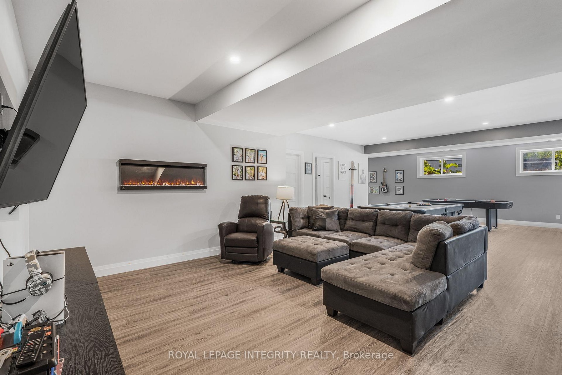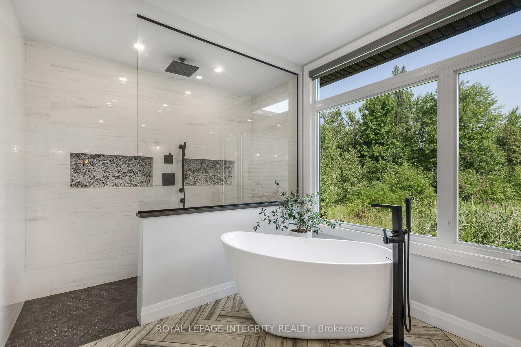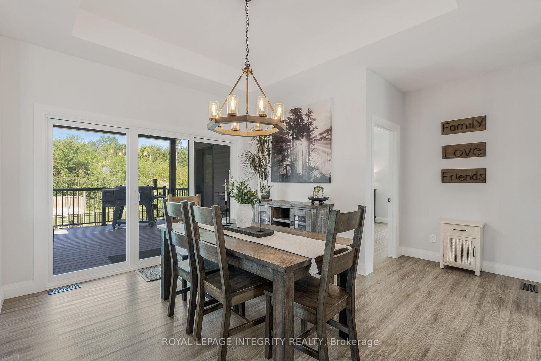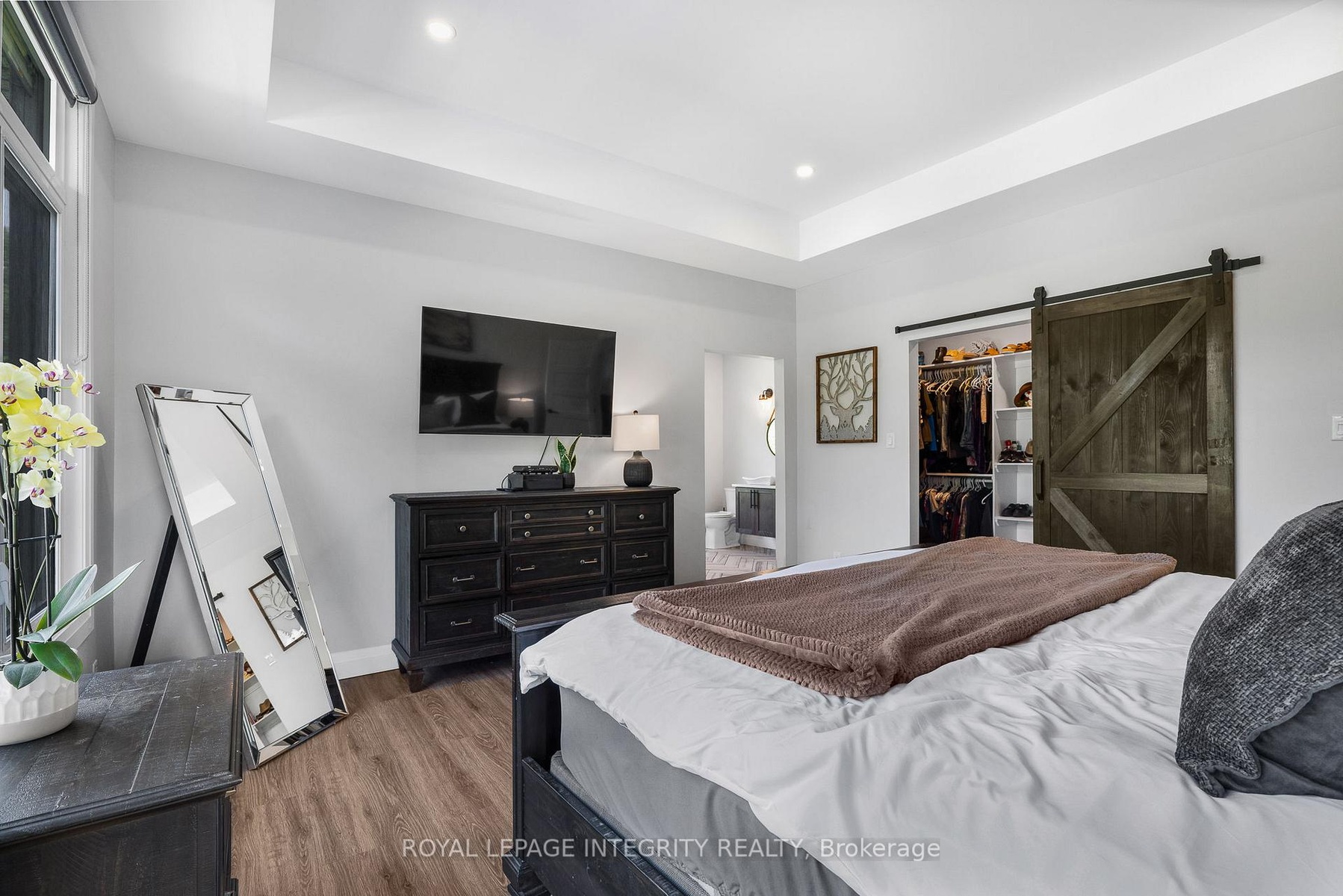 Welcome to this exceptional 3+1 bedroom, 3.5 bathroom custom-built bungalow, thoughtfully designed with high-end finishes and modern comfort in mind. Set on a private, landscaped lot, this home offers a perfect blend of style, function, and serenity. The open-concept main level features vaulted ceilings, wide plank flooring, and oversized windows that flood the space with natural light. The chefs kitchen impresses with quartz countertops, two-tone cabinetry, a statement backsplash, and a large island ideal for both cooking and entertaining. The primary suite is a true retreat with a luxurious ensuite boasting a freestanding soaker tub, walk-in shower with custom tile, and expansive windows with views of nature. The fully finished basement adds a spacious recreation room, a fourth bedroom, full bath, and room for a gym or office. Step outside to your own private oasis: a beautifully fenced yard with an inground pool, hot tub, and multi-level composite deck, offering the perfect setting for relaxation or entertaining. Complete with an oversized three-car garage, paved driveway, and surrounded by greenery, this property offers refined living in a peaceful, family-friendly location just minutes to local amenities.