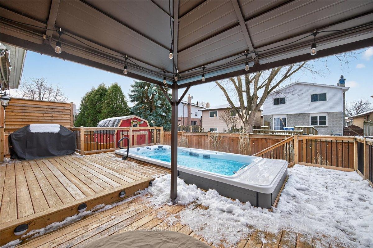 Welcome to 71 Royaledge Way, a meticulously cared-for 4-bedroom, 3-bathroom family home located in Waterdown West - one of the city's most desirable and truly family-friendly neighbourhoods. Loved by the same owners for 20 years, this property shines with pride of ownership and thoughtful updates throughout. The second floor features four spacious bedrooms, including a generous primary suite with ensuite and walk-in closet. The main floor offers a timeless dining/family room combo, a neat-in kitchen, main-floor laundry, a 2-piece bath, and a warm, cozy living room with a working gas fireplace - an ideal space to unwind. The kitchen was fully renovated in 2022, and the appliances are only six months old, offering afresh and modern space for everyday living. Additional major upgrades include window replacements in 2013 and 2021, a front door replaced in 2021, a furnace installed in 2018, and two air conditioners (2010 & 2013). The roof was replaced in 2008 with 40-year shingles ,providing long-term peace of mind. Step into the backyard to find a true retreat. The swim spa (installed four years ago) includes a brand-new cover and features a designated electrical breaker, adding safety and convenience. Paired with the gazebo and the beautifully maintained landscaping, this space is perfect for hosting friends, family, or enjoying quiet evenings outdoors. The double garage offers a brand-new epoxy floor, steel insulated garage door, and room for two cars plus storage, along with a four-car driveway. All systems and utilities have been regularly serviced, ensuring dependable upkeep for years to come. A rare opportunity to own a truly cared-for home in one of Waterdown's most sought-after communities