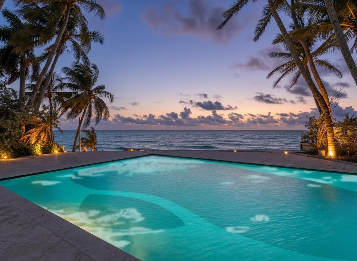 Welcome to Casa Fortuna, a rare oceanfront Mediterranean jewel where craftsmanship, beauty, and serenity converge. Every curve, arch, and hand-selected finish tells a story—warm stone, sculpted details, glowing artisan glass, and rooms that breathe with coastal light. The bespoke Officine Gullo kitchen with Gaggenau appliances anchors the home with quiet sophistication, while VENINI art-glass and Gherardo Degli Albizzi chandeliers create a warm, intimate glow. A private pool and direct sand access turn daily life into a retreat. In famously safe, exclusive Golden Beach, Casa Fortuna lives like a sanctuary - timeless, soulful, and crafted for those who see a home as art.