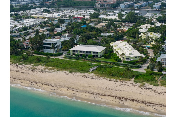 Wake up every morning to ocean views at this townhome that lives like a single-family residence with an oceanfront patio and side-yard patio with a spa! Features include a thoughtful open-concept layout, a first-floor bedroom currently serving as an office, gourmet kitchen, wet bar, and a serene primary bedroom suite that features a private balcony offering awe-inspiring ocean views. Ocean Ridge, Florida: One of the Gold Coast's best-kept secrets, Ocean Ridge is prized for its tranquility, relaxed ambiance, and unspoiled barrier island beauty nestled between the Atlantic Ocean and Intracoastal Waterway, midway between Palm Beach and Boca Raton.