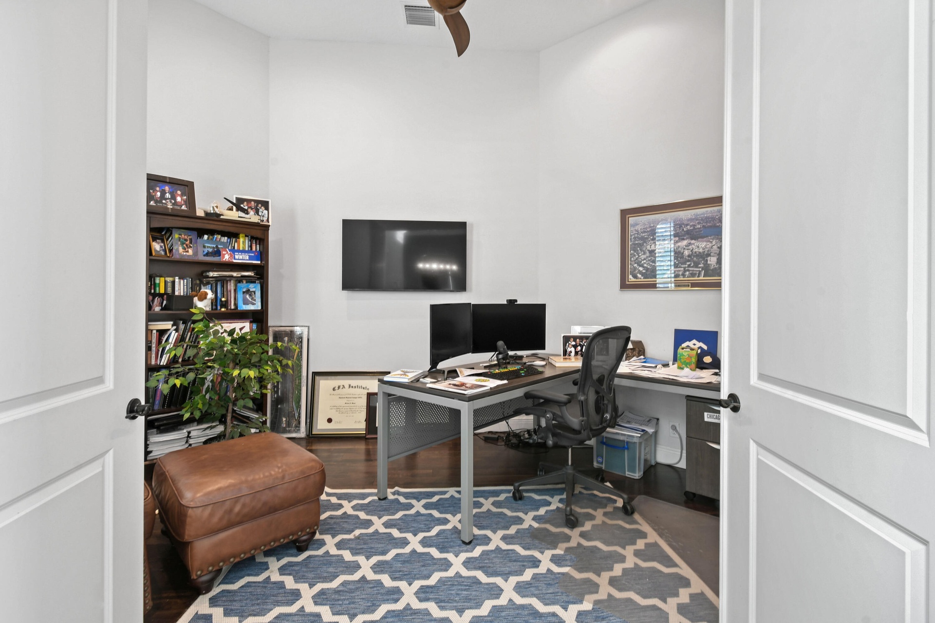 The main-level primary suite is a serene retreat offering dual walk-in closets, a spa-inspired bath with soaking tub and oversized shower, and an adjoining private den ideal as an office, nursery, or fitness space. The first floor also includes a guest suite with private bath, formal living and dining rooms, a powder room, and a dedicated officeeach space curated with refined balance and timeless elegance.