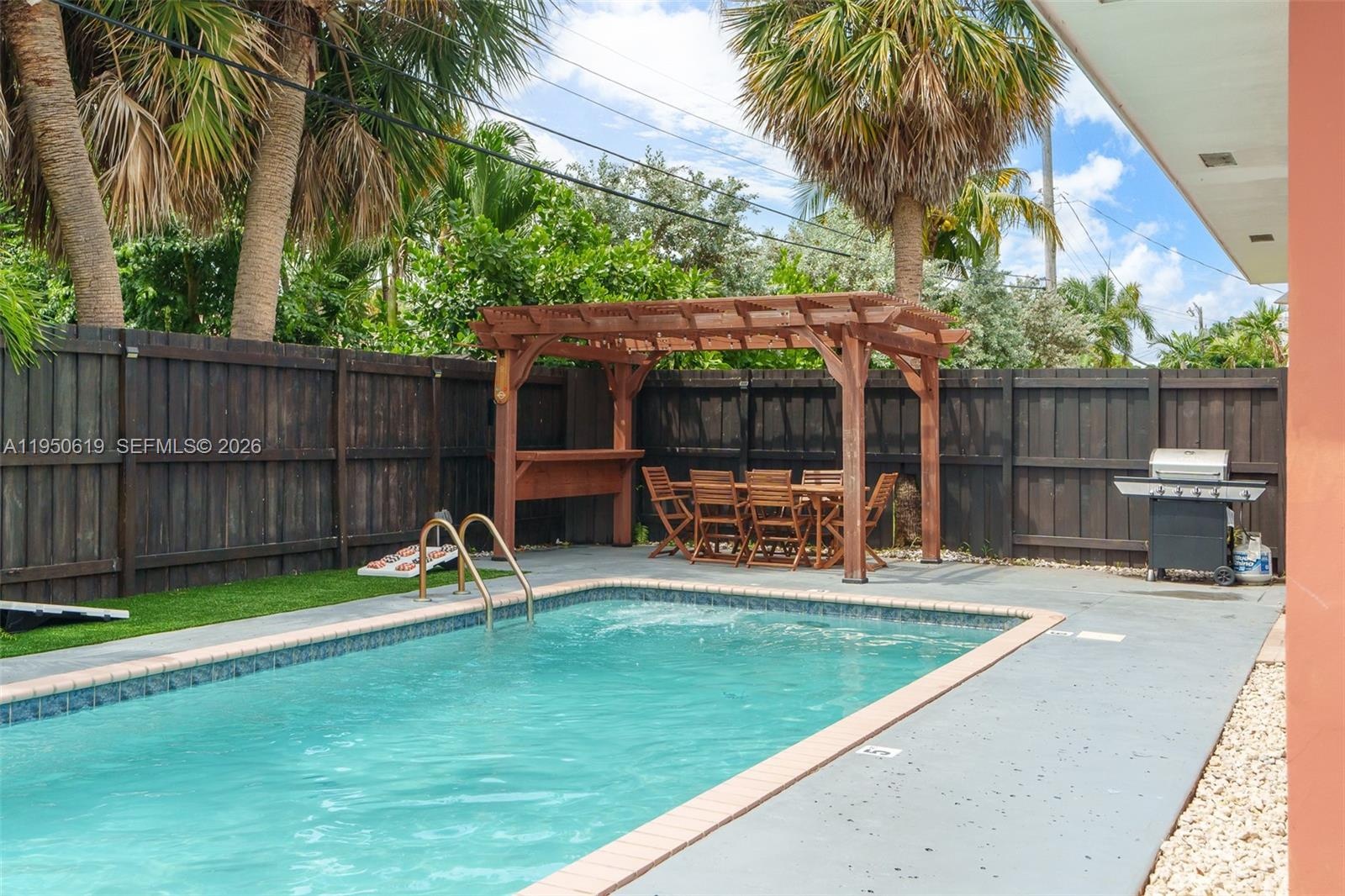 Great investment opportunity. 3-bedroom, 2-bath single-family home featuring a large private in-ground pool with jets and plenty of outdoor space, ideal for short-term rental use. Major updates include new HVAC (2023), tankless water heater (2022), electric pool heat pump (2022), and washer and dryer (2022). All impact windows and doors. One-story home with a metal roof (2020), 1-car garage, no HOA, and short-term rentals permitted. Centrally located between the beach, Las Olas, and Lauderdale-by-the-Sea. Easy to show.