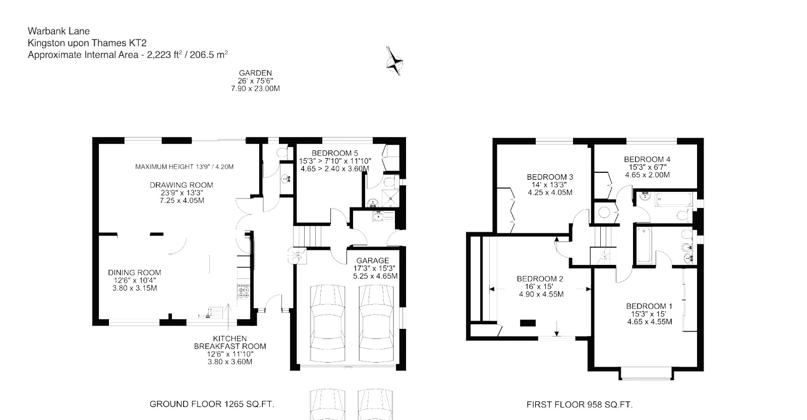 The private rear garden offers a peaceful setting for outdoor dining, entertaining and family use, while maintaining a sense of seclusion. A double garage provides secure parking alongside valuable additional storage.