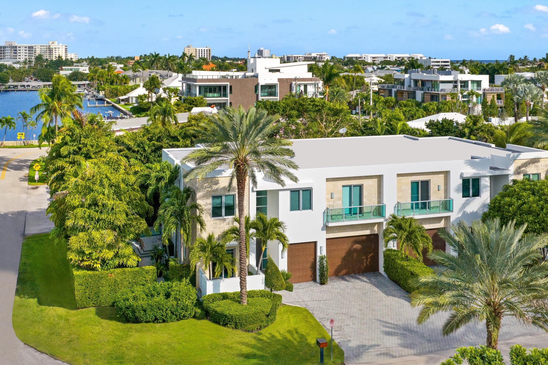 Modern corner-lot home built by JH Norman and designed by George Brewer Architects, with soaring ceilings, walls of glass, and a seamless indoor-outdoor flow to a pool, spa, and lush mature landscaping. The open kitchen features Miele appliances, a dramatic oversized island, and wine storage. A main-level flexible room, upstairs en-suite bedrooms, spa-inspired primary suite, three-car garage, and elevator complete this private, refined retreat. Light-filled interiors, generous entertaining spaces, and thoughtfully designed layouts combine with privacy and modern design, just steps from the beach and moments from Atlantic Avenue, offering effortless coastal living in one of Delray Beach's most coveted neighborhoods. while an additional room on the main level provides flexibility for a home office, media room, or guest suite. Upstairs, all bedrooms feature en-suite bathrooms, and the primary suite serves as a private retreat with a spa-inspired bathroom that complements the home's modern design. Additional features include a three-car garage, thoughtful storage, and a layout that supports easy day-to-day living. Just moments from Atlantic Avenue's dining, shopping, galleries, Green Market, live music venues, and nightlife, this home allows you to enjoy the energy of downtown Delray while returning to the quiet character of one of the area's most established beachside neighborhoods.