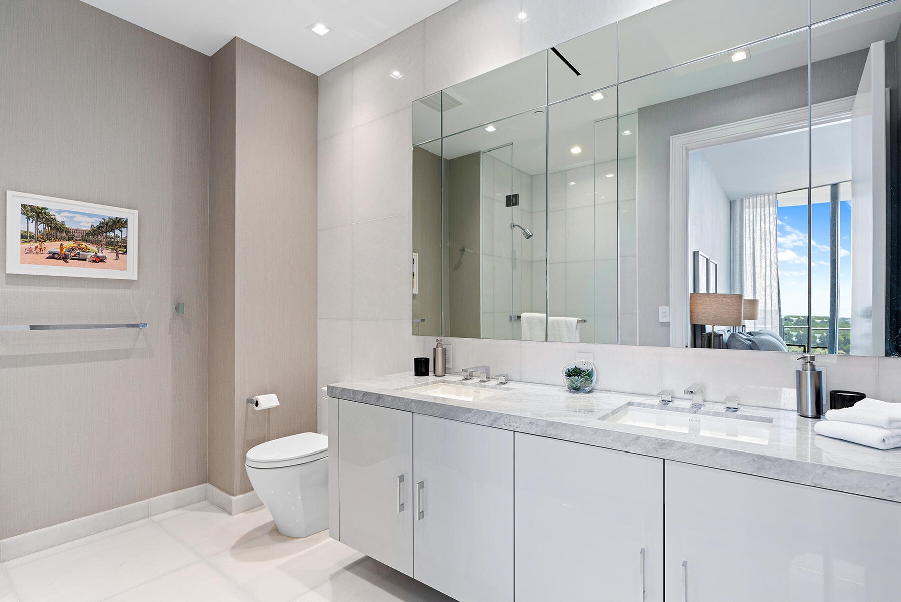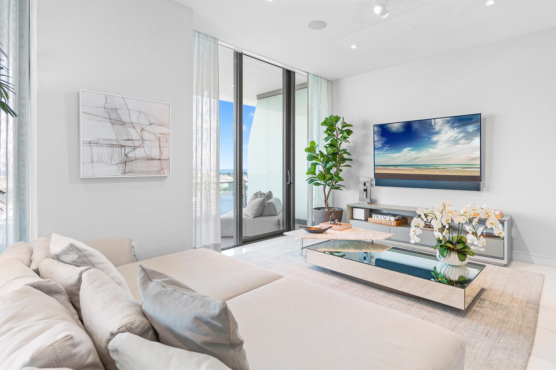 DIRECT WATERFRONT at The Bristol, showcasing breathtaking completely unobstructed direct ocean and Intracoastal views from the 14th floor through floor-to-ceiling 11-foot glass throughout. This impressive 3-bedroom plus den residence spans over 4,200 SF total, including two expansive terraces. Enjoy light-filled living with panoramic vistas from every room, offering both eastern and western exposures to capture stunning sunrises and sunsets. The primary suite is a private retreat featuring dual spa-inspired bathrooms and separate dressing rooms. Refined finishes include marble flooring throughout, electronic shades with blackout blinds, custom closets, and integrated sound, exuding luxury at every turn. Residents of The Bristol enjoy a truly exceptional, five-star lifestyle with... unparalleled attention to detail. Amenities include an on-site professional concierge, two spas, cold plunge, beauty salon, waterfront fitness center, 75-foot swimming pool, club lounge, and indoor/outdoor dog park. Three house vehicles with professional drivers, a gated entrance, and 24-hour valet and front desk services provide effortless living. Ideally located just moments from Palm Beach Island, world-renowned Worth Avenue, premier private aviation, the One Flagler office district, Palm Beach International Airport, and the exclusive Palm Beach Marina. This is not simply a home, it is a lifestyle and a statement of sophistication and prestige.