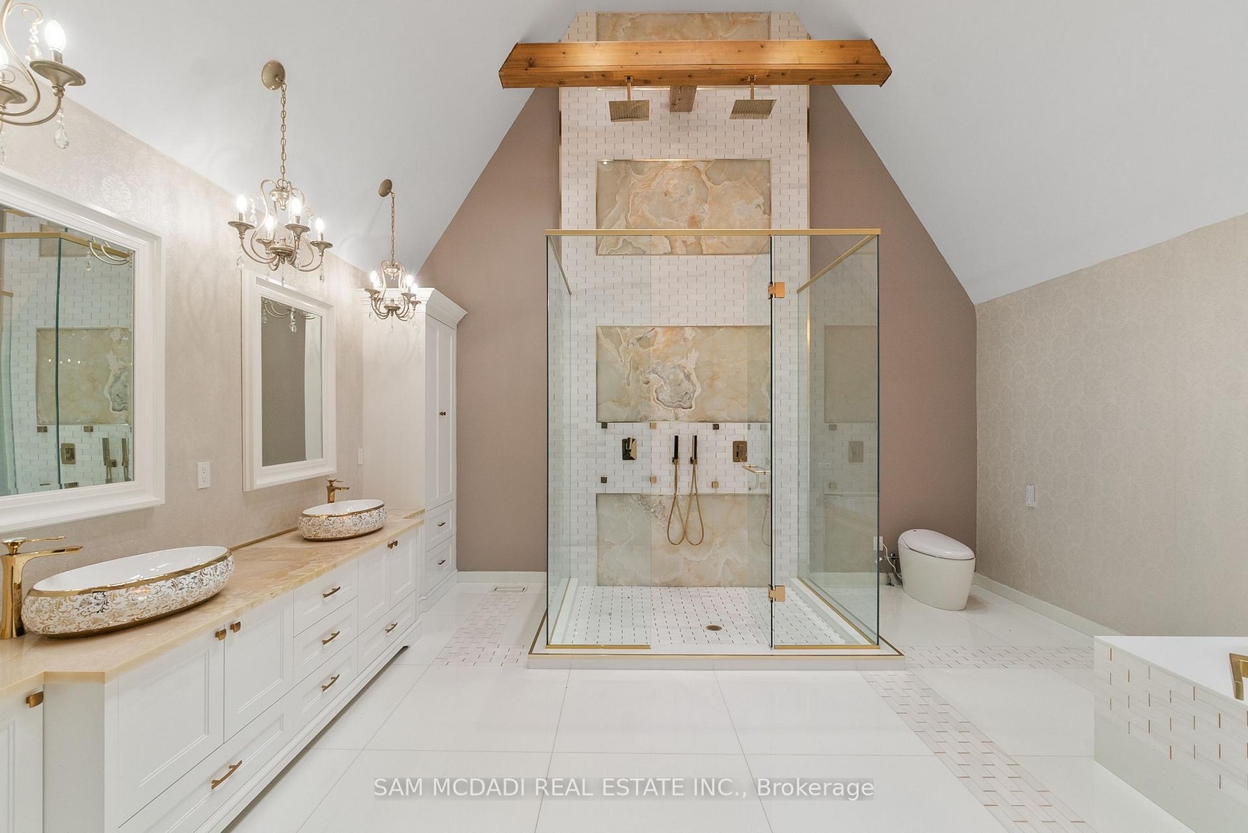 Set on a secluded almost 2-acre estate, this newly constructed architectural masterpiece offers over 13,000 square feet of refined indoor-outdoor living. Gated, grand, and privately positioned along Glenview Heights Lane, boasting modern luxury with timeless craftsmanship, designed for the most discerning of buyers. An inviting open-to-above foyer welcomes you inside, from dramatic ceiling heights to custom lighting, every detail has been thoughtfully curated to evoke elegance and ease. Expansive principal rooms flow effortlessly across the main level, including a formal dining room with fireplace, sunlit office retreat, and a sprawling family room with oversized windows framing the treetop views. The culinary kitchen is both stylish and functional, anchored by not one but two centre islands, custom cabinetry, premium built-in appliances, and a walk-in pantry. Whether hosting lavish dinner parties or casual gatherings, this space offers endless versatility. Above, the primary suite is an indulgent retreat, complete with a private terrace, spa-like 5-piece ensuite, and dual walk-in closets. Each additional bedroom is a suite unto itself, with vaulted ceilings, ensuite baths, and walk-in closets that speak to the elevated design throughout. For multigenerational or extended living, a private guest wing features its own kitchen, living area, and 3-piece bath. The fully finished walk-out basement spans over 3,600 square feet, offering a dynamic recreational space with lounge zones, and seamless access to the serene backyard. Intentionally designed with practicality in mind, this estate is equipped with 2 kitchens, 9-car parking, and surrounded by mature forest that ensures complete privacy and year-round tranquility. Positioned in a peaceful wooded enclave just moments from golf courses, conservation lands, and top-rated schools, this one-of-a-kind residence is a rare offering!
