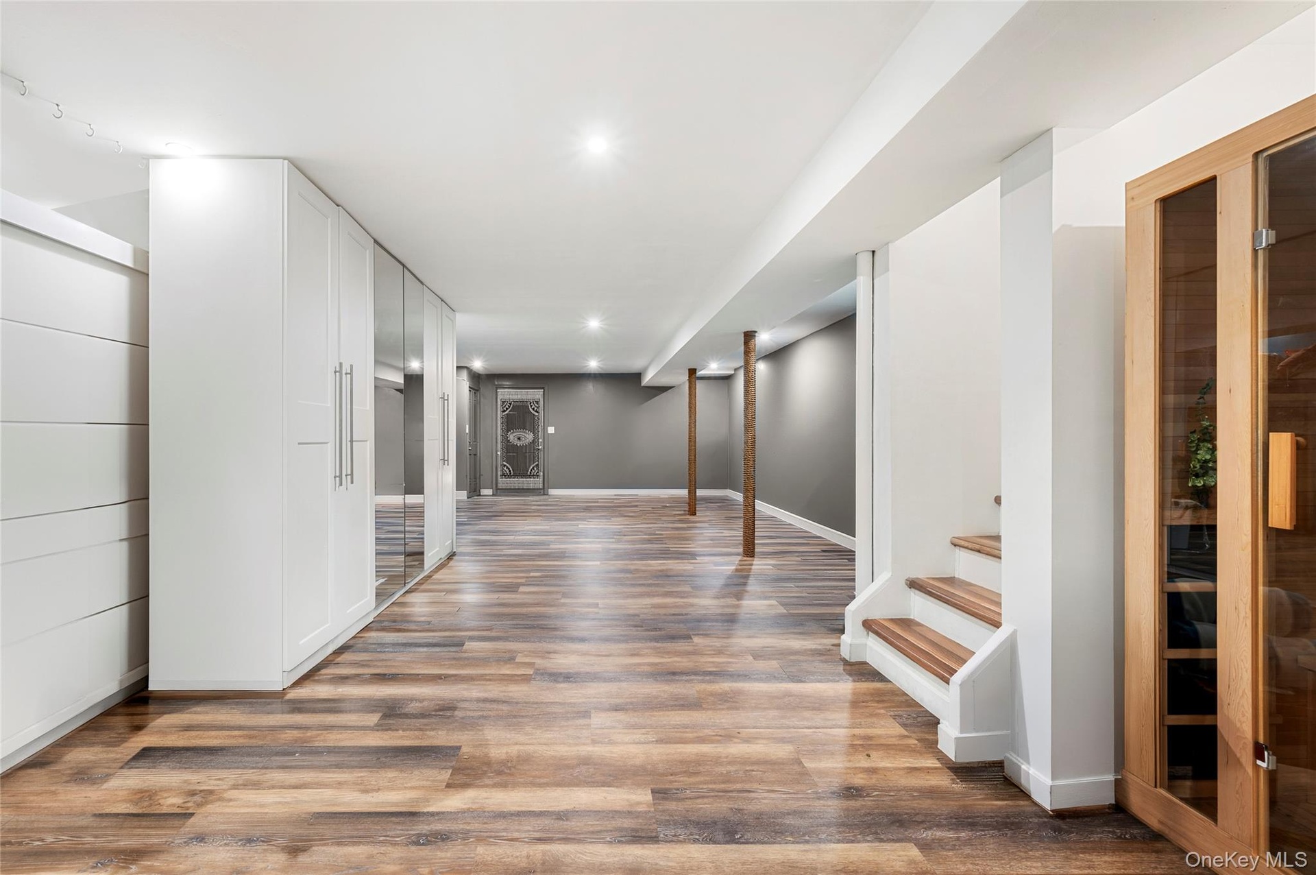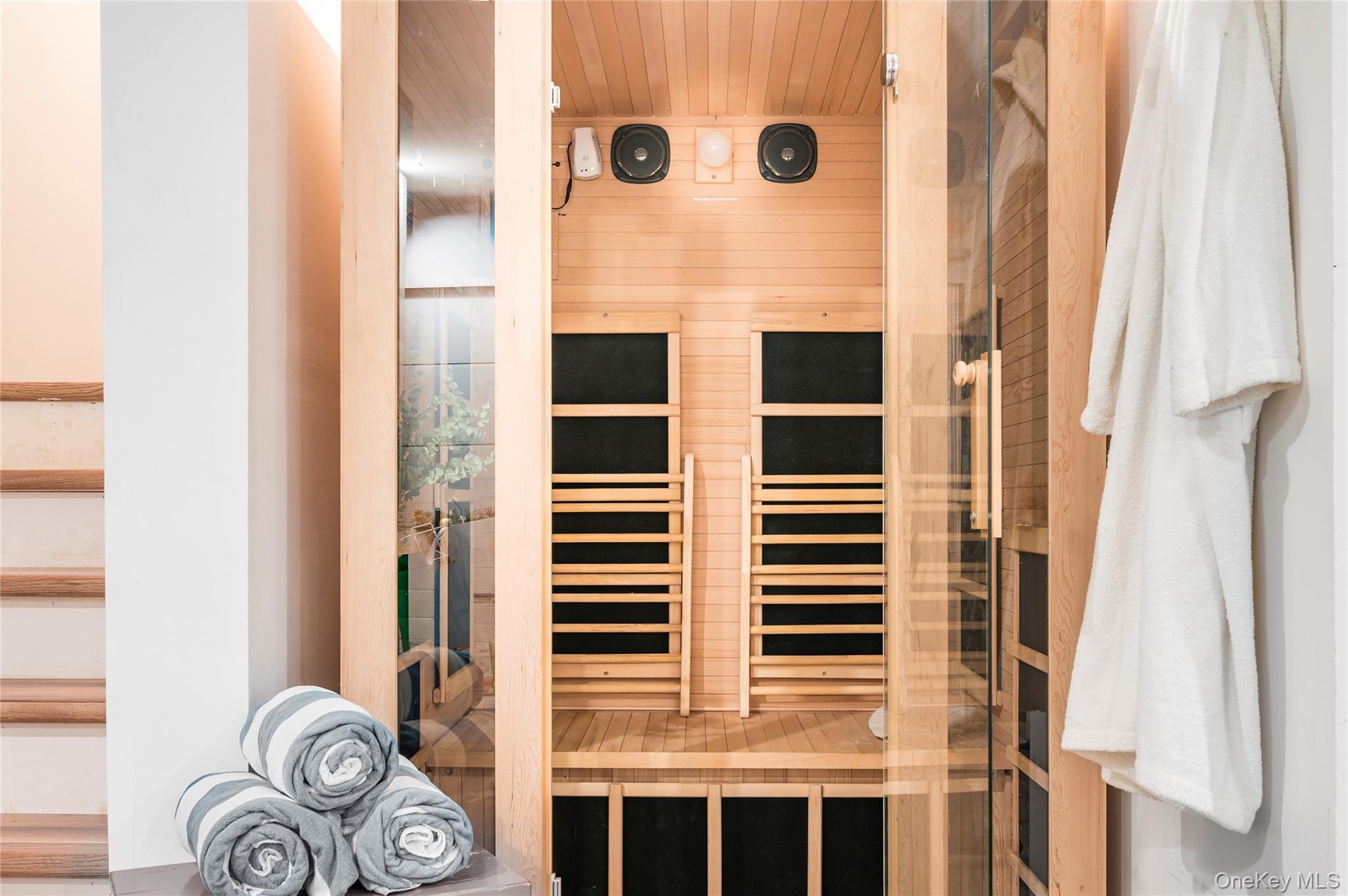 The lower level offers excellent ceiling height and strong potential for future customization. Currently featuring a infra-red sauna and gym, this space provides an opportunity to create media room, studio, or hybrid retreat to suit a buyer’s individual vision.