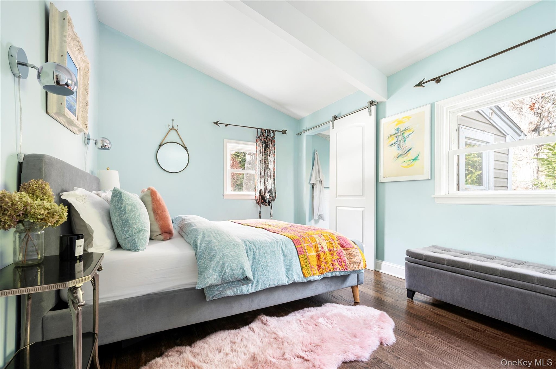 Just off the main hall, the spacious primary suite features high ceilings, generous windows, a walk-in closet, and a private en-suite bath - a calm retreat tucked away from the home’s main living areas.