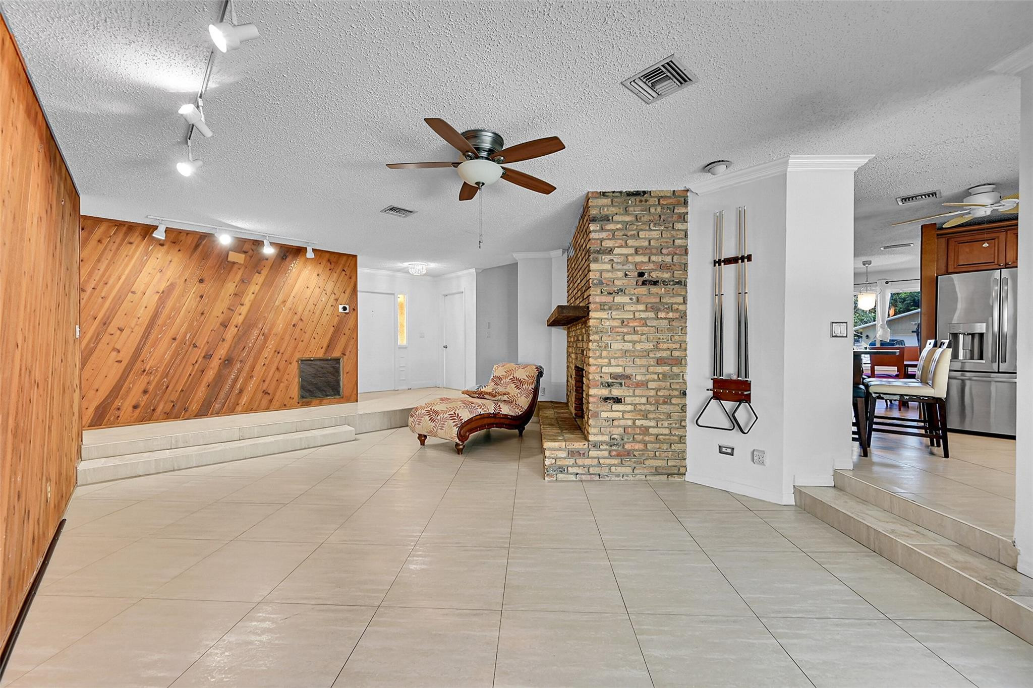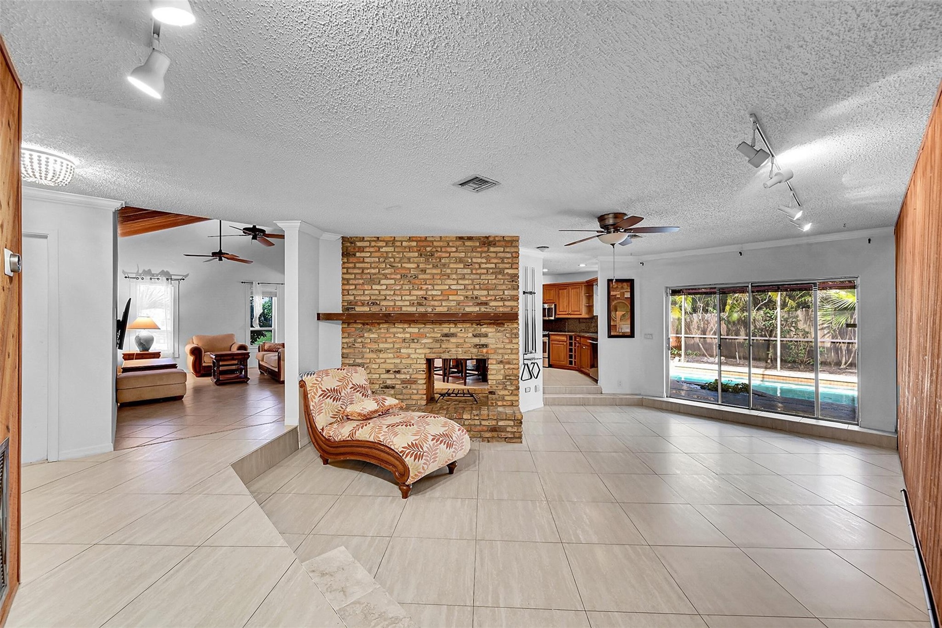 Welcome to this charming 3-bedroom, 2-bath pool home in the heart of Deerfield Beach. It offers a perfect blend of character and comfort. This unique property features an amazing layout with a rare dual-sided fireplace enjoyed from both the family room and the eat-in kitchen—perfect for cozy evenings or entertaining guests. The spacious kitchen offers granite countertops, stainless steel appliances, and ample cabinetry. Vaulted ceilings with skylights fill the home with natural light, creating an open and airy feel throughout. Step outside to a long, sparkling pool and screened-in patio—perfect for relaxing or entertaining. Ideal for year-round Florida living. Conveniently located with easy access to shopping, dining, and major highways.