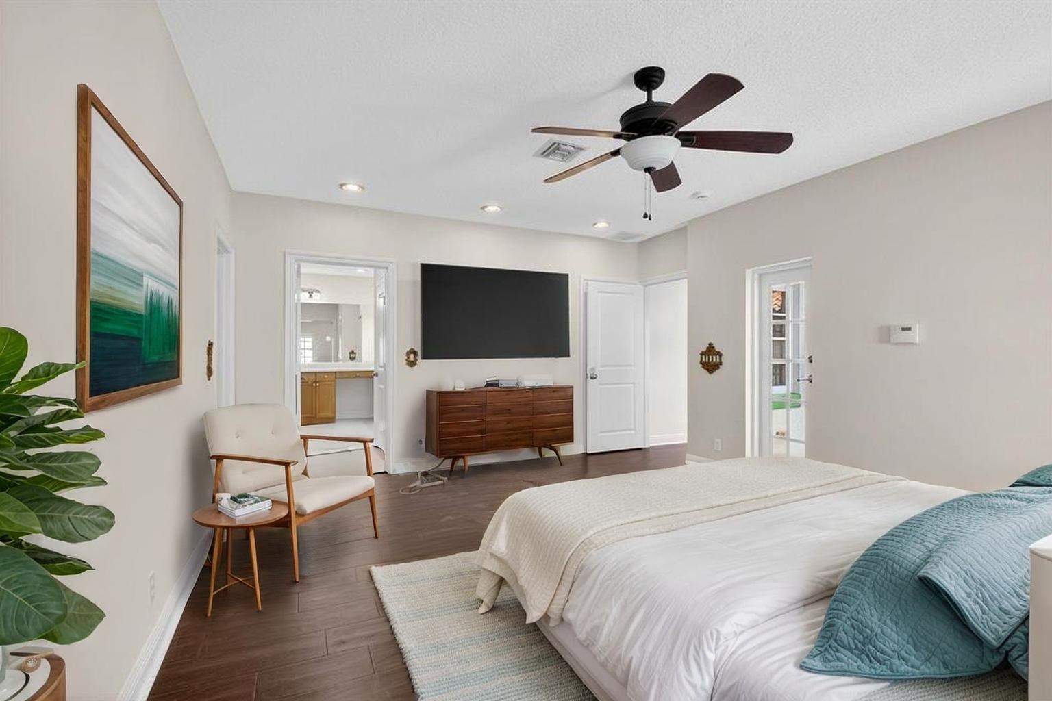 LOCATION! LOCATION! LOCATION! LOOK NO FURTHER. One mile away from the beach and 1 1/2 mile from the buzzing nightlife and gourmet restaurants of downtown Atlantic Avenue. The open living home has high Cathedral ceilings with 1/2 bath plus den/office/library and partially covered outdoor patio with a 3 car garage. A beautiful 6 foot chandelier lights up a circular stairway to 3 large bedrooms upstairs with roomy closets and each with a private bath. House is well maintained and newly painted. Windows and doors are all hurricane impact with plush landscaping maintained by the HOA. Don't miss out on this beautiful gated community of Old Palm Grove in East Delray with low maintenance fees.