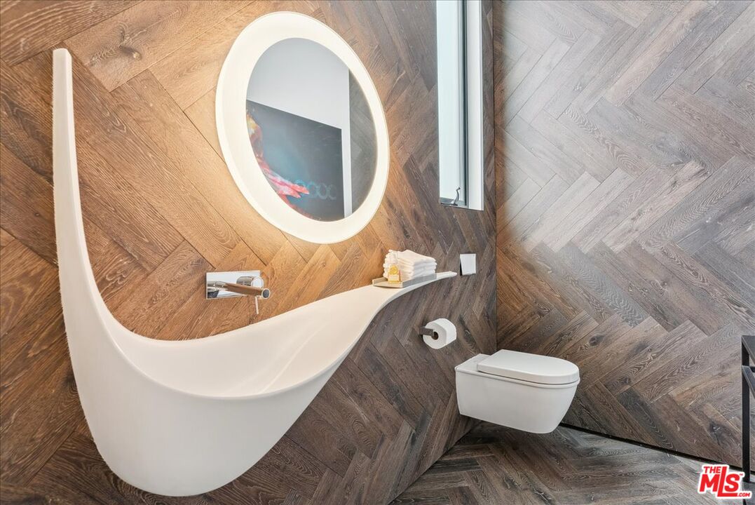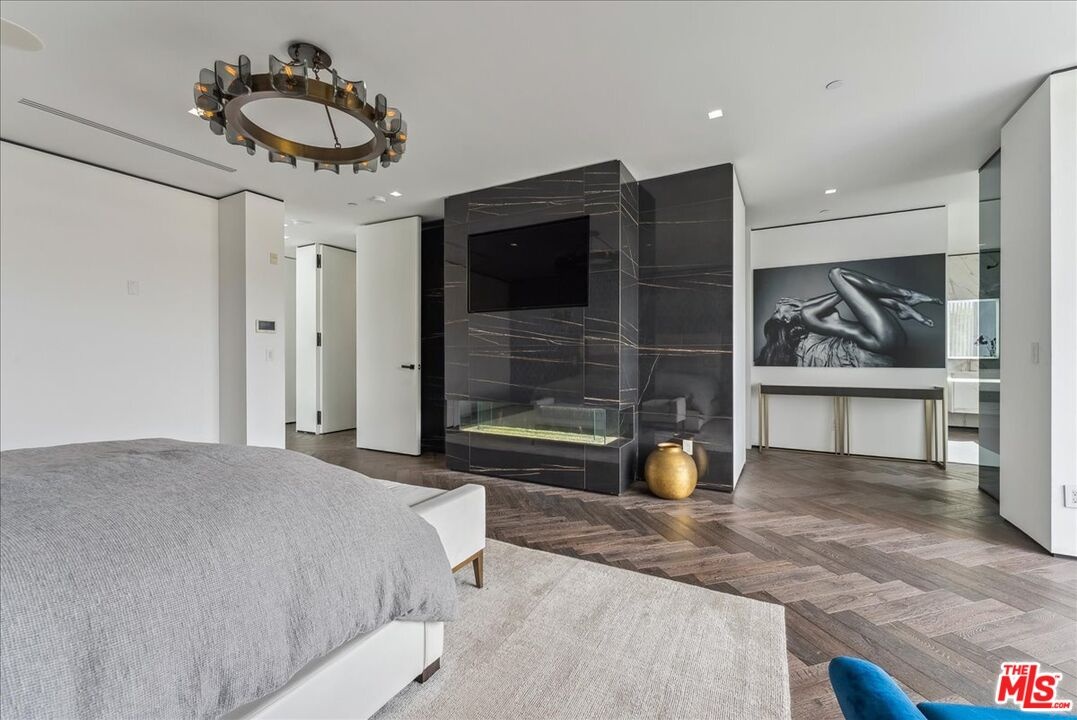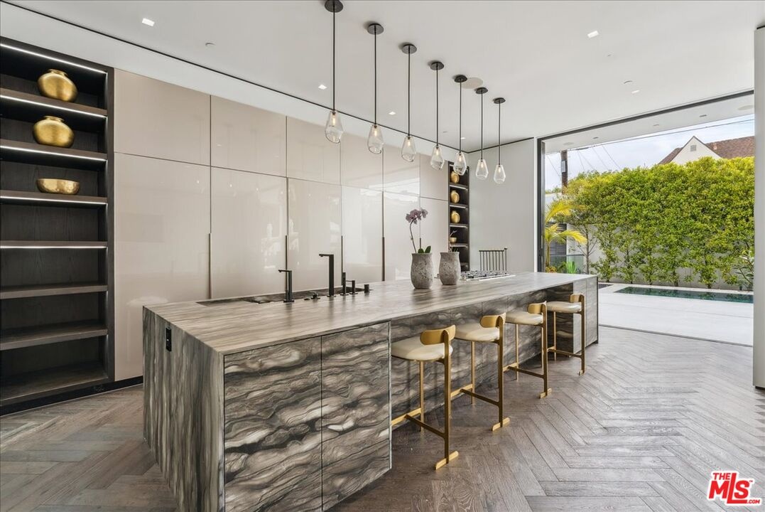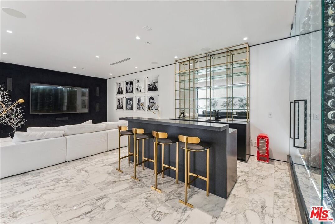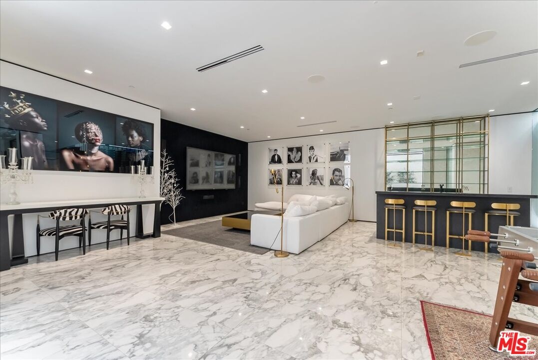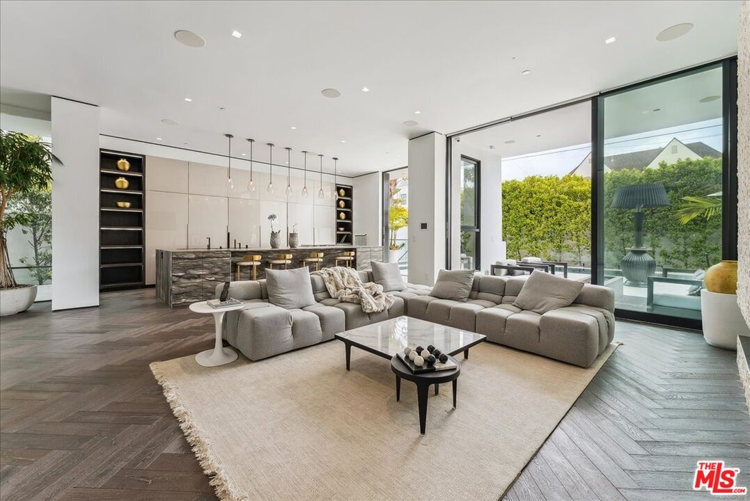 Fully Furnished! Discover this stunning modern estate in Beverly Hills, a privately gated architectural marvel that pairs striking contemporary design with turnkey convenience in one of the world's most glamorous cities. Immaculately designed and fully furnished by the renowned SIA Architects firm, every detail has been thoughtfully considered to create a seamless blend of beauty and comfort. Behind secure gates, soaring ceilings and expansive Fleetwood sliding doors flood the interiors with natural light, while exquisite custom floors add warmth and refinement. The open floor plan includes a formal dining room and two distinct living areas that extend effortlessly to the pool, barbecue, and outdoor lounge perfect for entertaining or unwinding in style. The gourmet kitchen boasts brand-new Miele appliances, sleek cabinetry, and generous prep space for both casual meals and lavish dinner parties. First-class amenities include a complete camera surveillance network, integrated home alarm system, automated privacy blinds, fireplaces, and comprehensive audio/visual wiring. Dual laundry stations one upstairs and one in the basement add convenience for busy households or extended stays. Upstairs, three bedrooms await, including a luxurious master suite with a spacious walk-in closet, spa-like bath, and private patio. A comfortable upstairs lounge offers flexible space for work or relaxation. The expansive basement spans over 2,000 square feet, featuring a full bar, live pond, movie room, game area, decorative wine display, and a private guest suite. Outdoors, the pool and barbecue lounge invite year-round enjoyment under the California sun, while thoughtful landscaping ensures privacy. Just a short stroll from world-class shopping and dining on Rodeo Drive, this extraordinary residence offers the rare combination of seclusion, sophistication, and proximity.