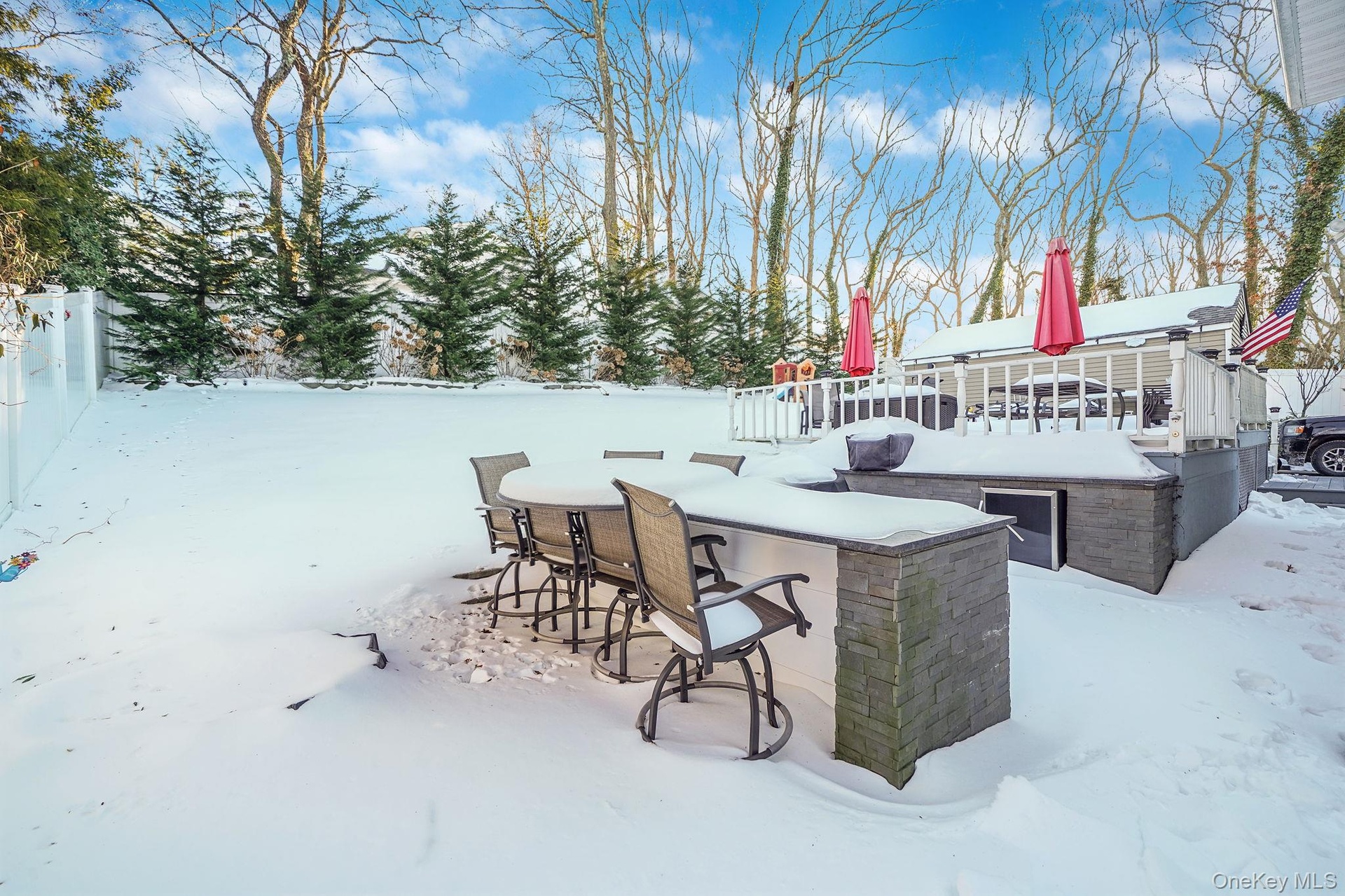 Step outside to a paver driveway, paver patio, and expansive deck with seating and a dedicated barbecue area—perfect for gatherings, summer evenings, or quiet outdoor enjoyment. The wraparound deck further enhances the home’s charm, offering a welcoming setting to unwind and savor the surroundings.