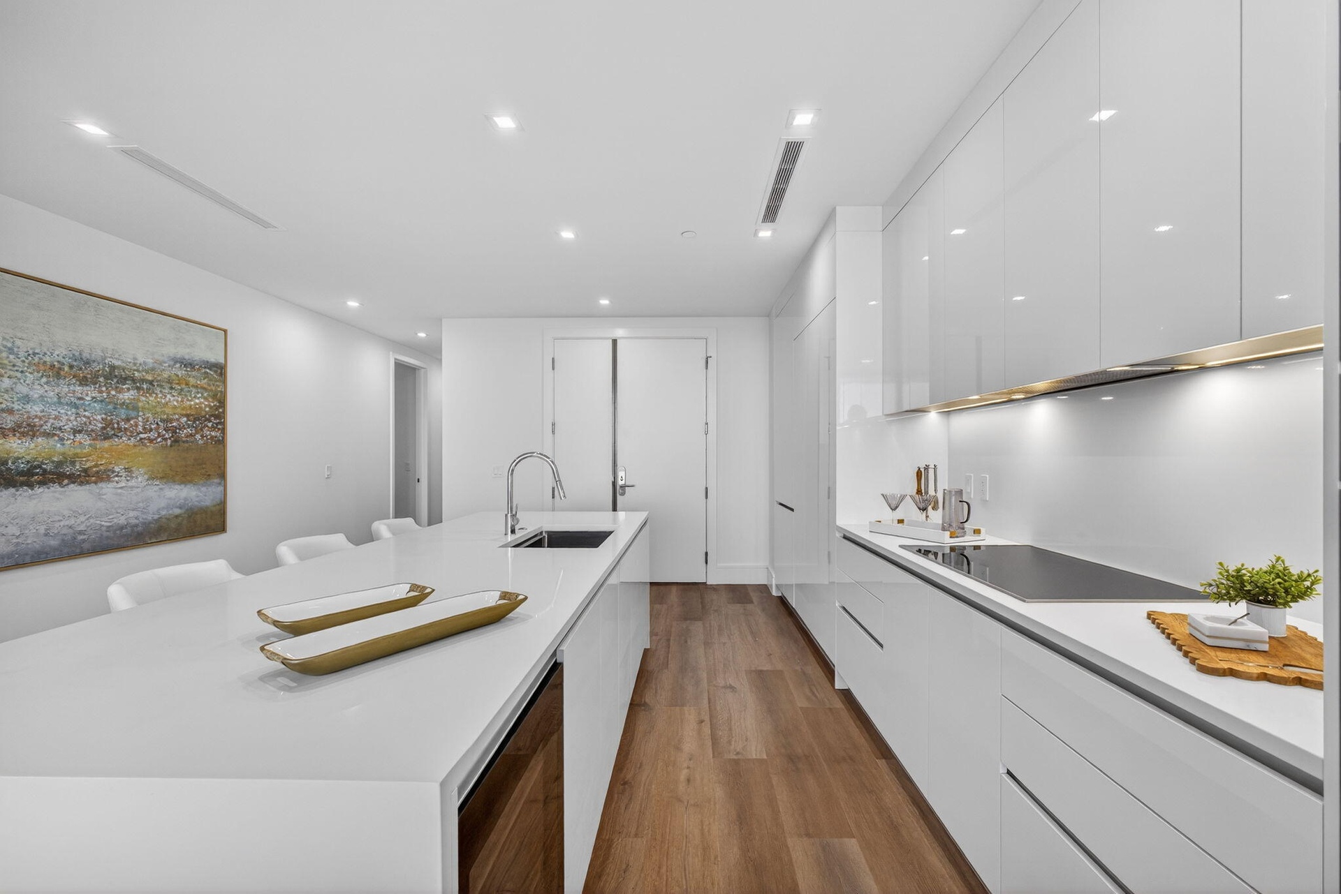 Additional services include 24-hour onsite security and management, electric car charging stations, and guest suites. Residents enjoy exclusive access to waterfront restaurants, retail spaces, offices, café, and a private beach club, making Nautilus 220 the ultimate destination for luxury living. The grand lobby, with its 18-foot ceilings, and amenities areas are masterfully designed by the renowned Interiors by Steven G., ensuring a sophisticated arrival experience.
