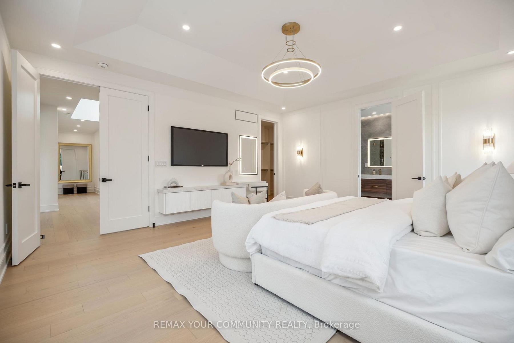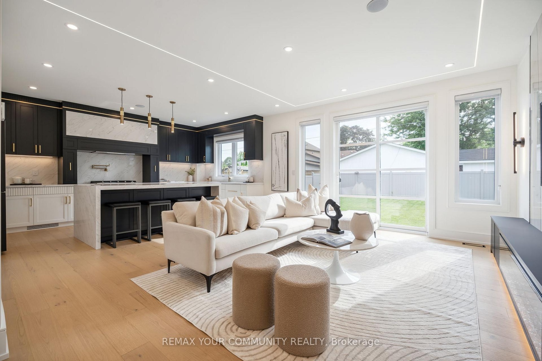Step into a realm of unparalleled luxury at 14 Ranwood Drive, an architectural masterpiece that redefines modern living in the west part of Toronto. This distinctive residence with a living space of over 4800 square feet, harmoniously blends sophistication, comfort, and functionality, offering a lifestyle that is both grand and inviting. As you enter, be captivated by the soaring 9 ft ceilings that create an airy atmosphere, adorned with exquisite hardwood flooring that flows seamlessly throughout. Oversized solid-core wood doors and contemporary baseboards add an elegant touch, while energy-efficient LED lighting and stylish pot lights illuminate every corner of this beautifully designed home. The highlight is a custom gourmet kitchen, featuring state-of-the-art smart appliances, sleek quartz countertops, and a concealed walk-in butler's pantry, perfect for both daily meals and lavish entertaining. The open-concept layout is anchored by a stunning floating staircase, leading you to a serene main-floor office-an invaluable space for productivity. Ascend to find five generously proportioned bedrooms, each designed with convenience in mind, with bath ensuites, ensuring both comfort and privacy for family living. The fully finished in-law suite, complete with its own kitchen and separate entrance, opens the door to endless possibilities-ideal for extended family stays or potential rental income. Outside, indulge in the meticulously landscaped lot featuring a sophisticated irrigation system and beautiful interlocked pathways, enhancing your outdoor oasis. This extraordinary home offers a unique lifestyle where elegance meets practicality. Embrace a living experience that must be seen to be fully appreciated-a truly rare offering in today's competitive market. Minutes from Humber River Hospital.