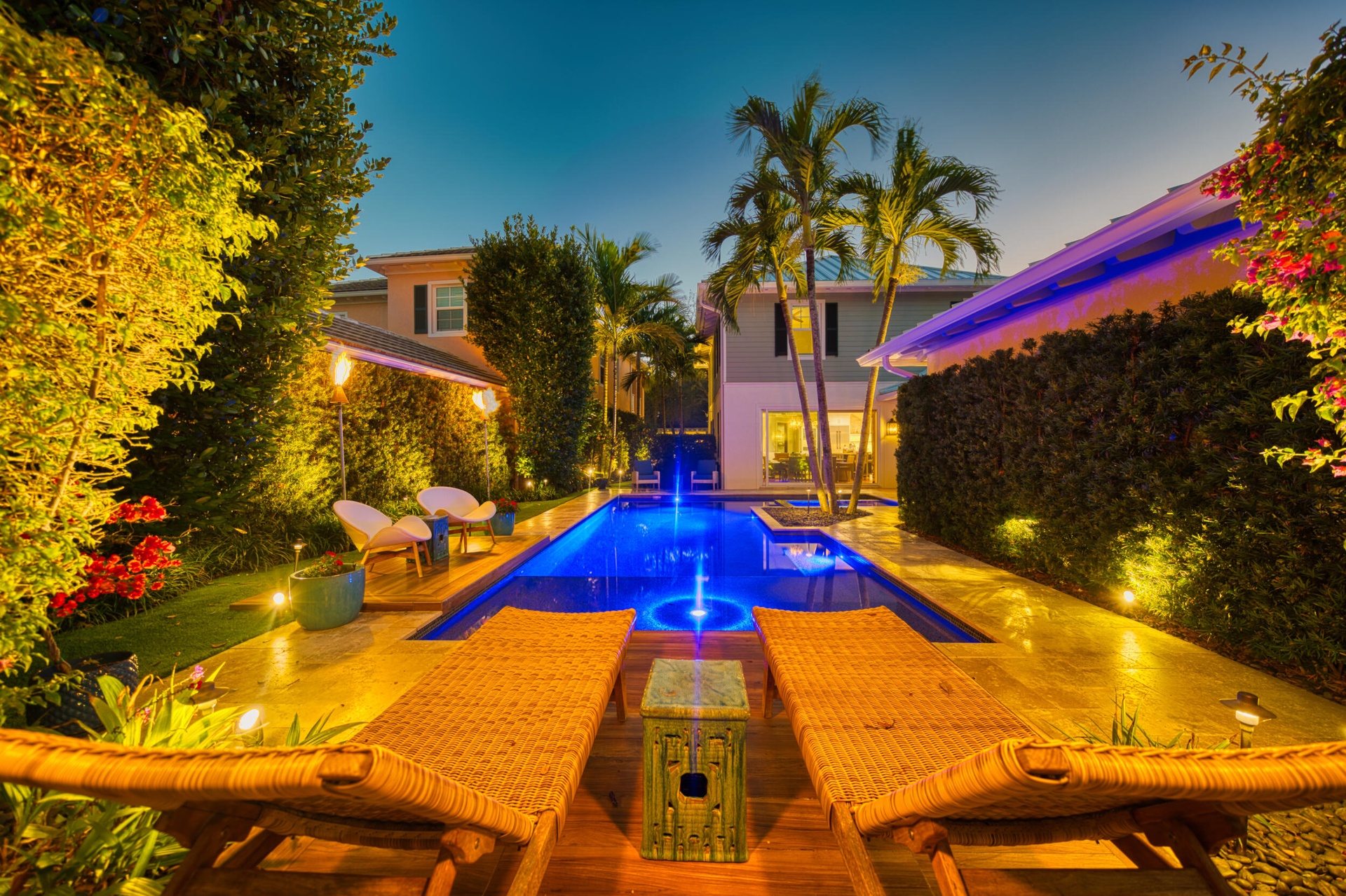 Step outside to a private tropical retreat designed by D'Allesandro Landscaping (designer behind Guanabanas). The backyard features custom landscape lighting, artificial turf, and gas-lit tiki torches supplied by an 800-gallon underground LP tank that also powers the pool, spa heater, and outdoor features. Enjoy the custom pool with built-in spa, expansive sun shelf with bubblers, travertine pool decking, and raised faux wood tile lounge areas ideal for entertaining or relaxing year-round. A new LP gas pool heater (2023) and home security system complete the package.