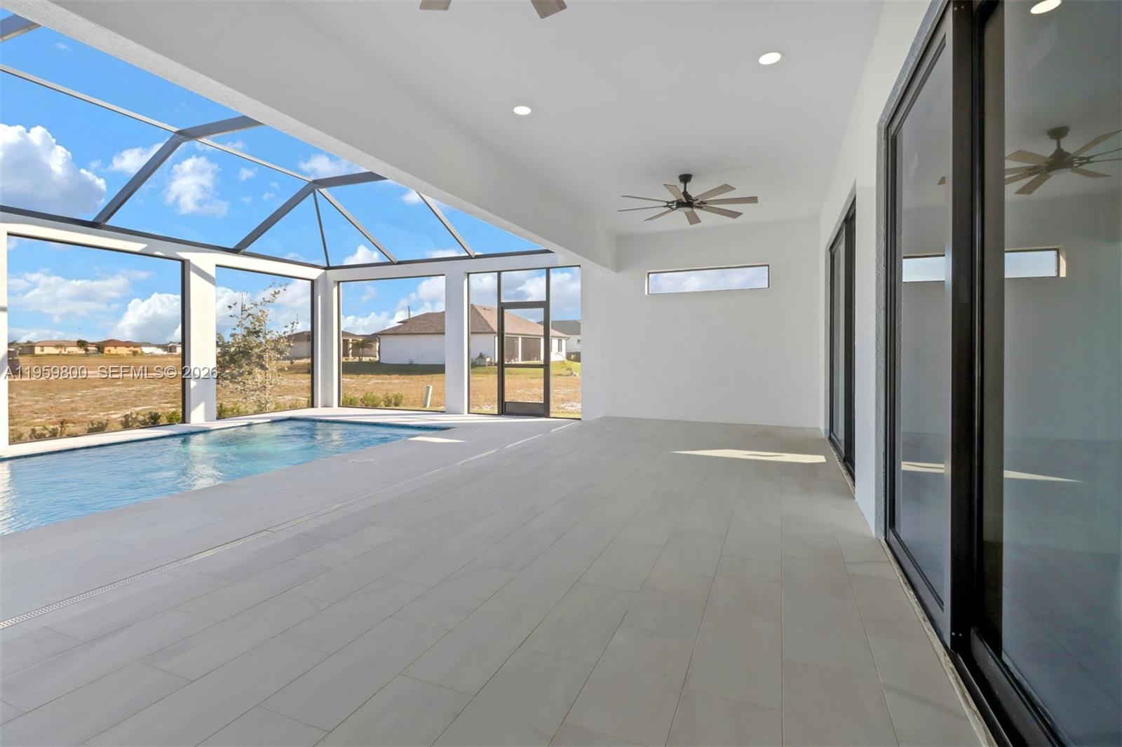 SELLER WILL CONTRIBUTE $30,000.00 TOWARDS BUYER'S CLOSING COSTS! Discover the epitome of modern luxury at 3517 NW 46th Ave, Cape Coral, FL 33993, where smart home technology meets exquisite design. This home features Alexa integration through ceiling speakers, allowing seamless control of your environment, and showcases imported Spanish wood bathroom cabinets for a touch of elegance. The living room is adorned with a modern wooden TV wall and a fireplace, while the master bedroom offers its own cozy retreat with another fireplace. The interior boasts expansive 36"x36" floor tiles, extra-high ceilings, and grand 96" doors, contributing to an open, luxurious feel. The kitchen is a chef's delight with 100 wood cabinets and high-end appliances, including a washer and dryer. Outside, marble tiles enhance the front and back yard, leading to two Entertainment areas - a terrace and BBQ space, both equipped with ceiling fans for year-round comfort. The property also includes a triple garage with an insulated door and epoxy flooring, ensuring ample space for your vehicles or hobbies. The pool area is secured by a complete fence, featuring smart Pentair equipment manageable via phone, heated by a Rheem pool heater for continuous enjoyment. Situated on a .28-acre lot, this home blends technology, comfort, and style into one impeccable living experience.