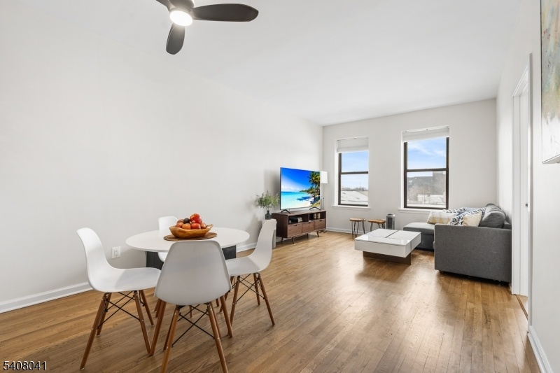 Welcome to this updated two bedroom home in the heart of Journal Square, located in an elevator building with deeded parking, a fitness room, and an on site superintendent.