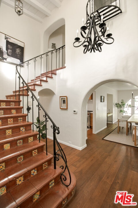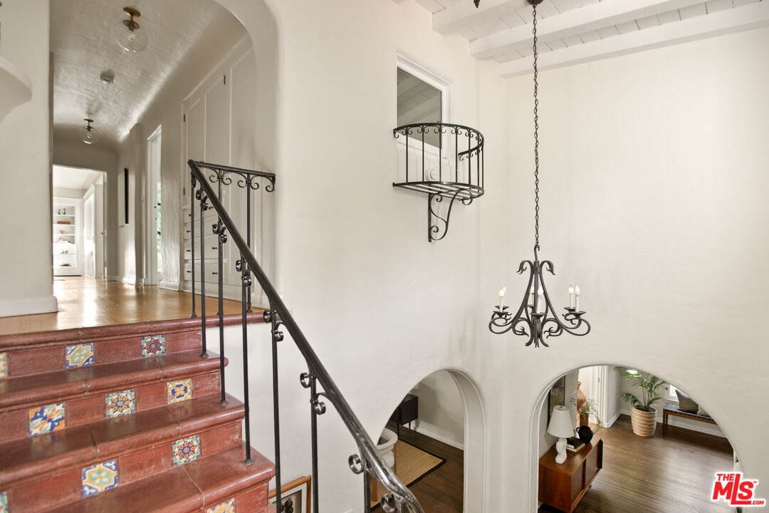 Located in the peaceful Beverly Crest area of BHPO, this 1928 Spanish home by architect James Conway built as his personal home, blends historic charm with modern comfort. With four bedrooms (one downstairs) and three newly remodeled bathrooms, the expansive living spaces remain special honoring the architecture while making it beautiful for today. The step-down living room features original details throughout with vaulted king post truss ceilings and an arched, tile laced hearth as the centerpiece. Double arched doors from the media and dining rooms open to a grassy yard and hardscaped patio, offering seamless indoor-outdoor flow, perfect for entertaining or enjoying California living at any time of day. A new chef's kitchen with eat-in dining features an 8 burner wolf range, ample storage space, double door SubZero fridge, side door entrance and direct entry from the 2 car garage with laundry. Upstairs are three generous bedrooms offering privacy and natural light. The primary suite features a double door step out balcony, both living and dressing areas, and the spa-like bathroom with double vanity and walk-in shower all showcasing Conway's design that draws light from both the front and back of the home. This rare offering combines the appreciation of real Los Angeles architecture with comforts, function, and proximity to nature. Being just minutes from Coldwater and Franklin Canyon Parks, in a strong school district, the character, lifestyle and long term value is an opportunity for a new owner to embrace its legacy while making it their own.