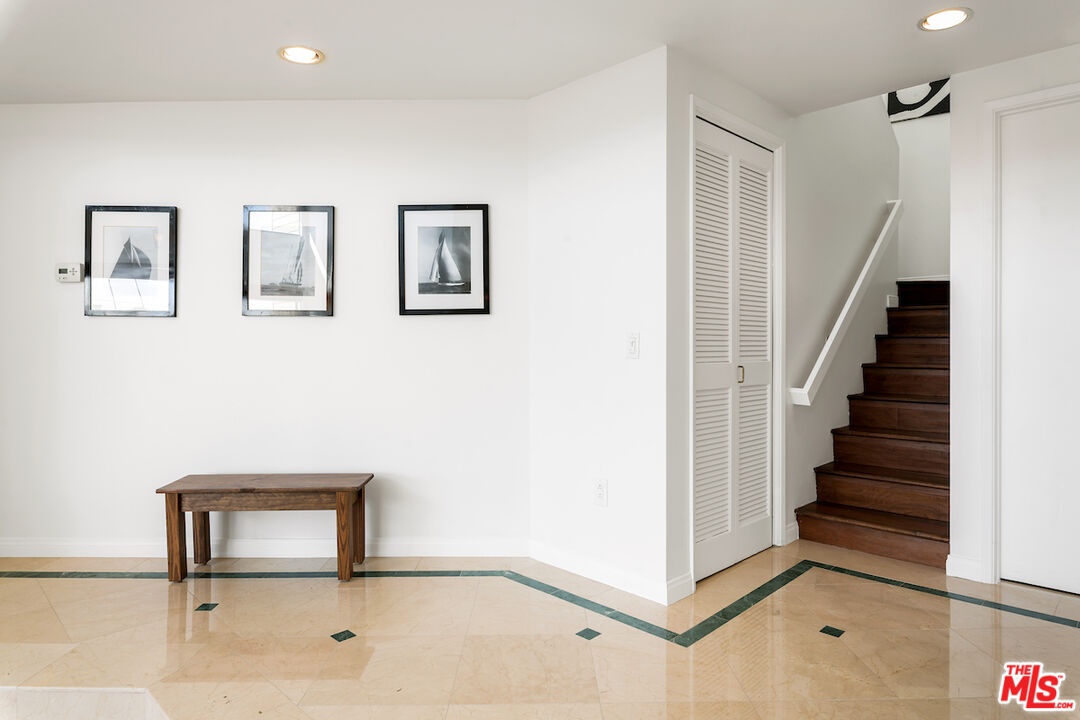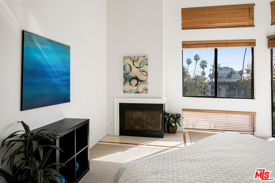 Brentwood's Premier Corner Penthouse! 2 Bedrooms + Loft + 2.5 Baths with approx. 1800 sqft. Dramatic Two-Story living room with floor to ceiling windows. This South facing unit is infused with natural light throughout. Tastefully laid marble flooring with deep emerald accents. Spacious floor plan that expands to an outdoor patio with palm tree views and a sleek marble fireplace provides a dramatic architectural focal point. Beautifully redone Chefs Kitchen with stainless steel appliances and wine fridge. Theres an Intimate breakfast alcove that opens to the balcony for your perfect sunrise coffee. Dedicated laundry closet features a full sized side by side washer/dryer. Primary suite retreat offers a sense of immense scale with double-height ceilings and is also anchored by a fireplace and second private terrace. Expertly curated wardrobe gallery provides an expansive dressing area with stone infused primary bath with separate shower and soaking tub. Ample counter space and a dual sink vanity anchors the primary bath. Graciously proportioned second bedroom suite features its own private bath. Upper-Level loft with ocean views is a master work of indoor-outdoor living with a fireplace. Secluded rooftop deck offering unparalleled vistas of Brentwood's urban landscape. Building amenities include controlled access, indoor pool, spa, sauna and gym. The Bundy Brentana Condominiums is a 24 unit condo complex built in 1983. Two car side by side parking plus guest spots. Enjoy immediate proximity to renowned San Vicente Bistros and Boutiques. Close to UCLA, Santa Monica, Century City and the beach.There is a special assessment for $235. For 18 months only.