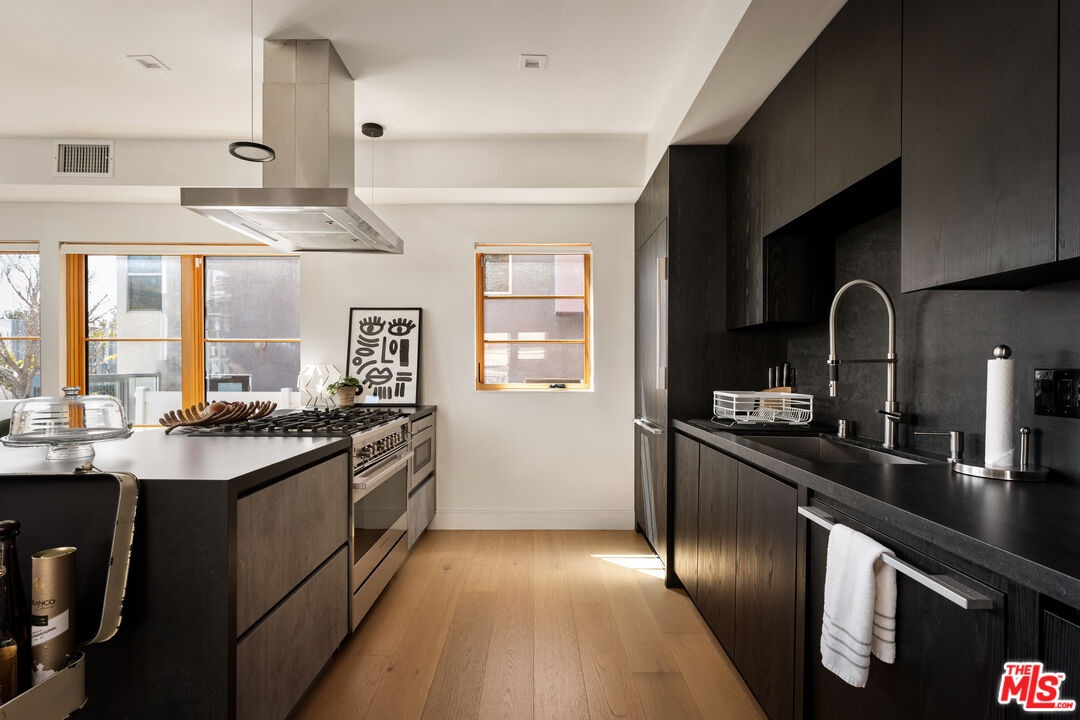 As featured in The New York Times, welcome to 1033 N Vista, where contemporary luxury meets unparalleled convenience in the heart of West Hollywood. Step into 1033 N Vista, a meticulously crafted 2-bedroom, 2-bathroom residence spanning 1,391 square feet of modern elegance. Indulge in the seamless fusion of form and function, with wide plank oak wood floors and soaring ceilings adorning every corner. Oversized windows flood the space with natural light, illuminating the sleek lines of the modern floating staircase and custom cabinetry throughout. The main living space on the second floor beckons with an open concept layout, leading effortlessly to your own private patio perfect oasis for entertaining or unwinding in style. The chef's kitchen is a culinary masterpiece, boasting high-end appliances and slab counters that elevate every meal to gourmet status. Upstairs, the master suite awaits, bathed in sunlight streaming through large skylights. A generous walk-in closet and a luxurious Italian marble-clad bathroom with an oversized contemporary shower promise indulgent comfort at every turn. Two additional levels house a flex space, perfect for a home office or cozy retreat, and an oversized bedroom ideal for guests or family members. Venture downstairs to find an attached garage designed to accommodate two cars with the convenience of a car lift, along with a laundry room for added convenience. As part of a community of four independent single-family homes, enjoy the freedom of homeownership without the burden of HOA fees. With top-tier walkability to the finest restaurants and nightlife, every convenience is at your doorstep.