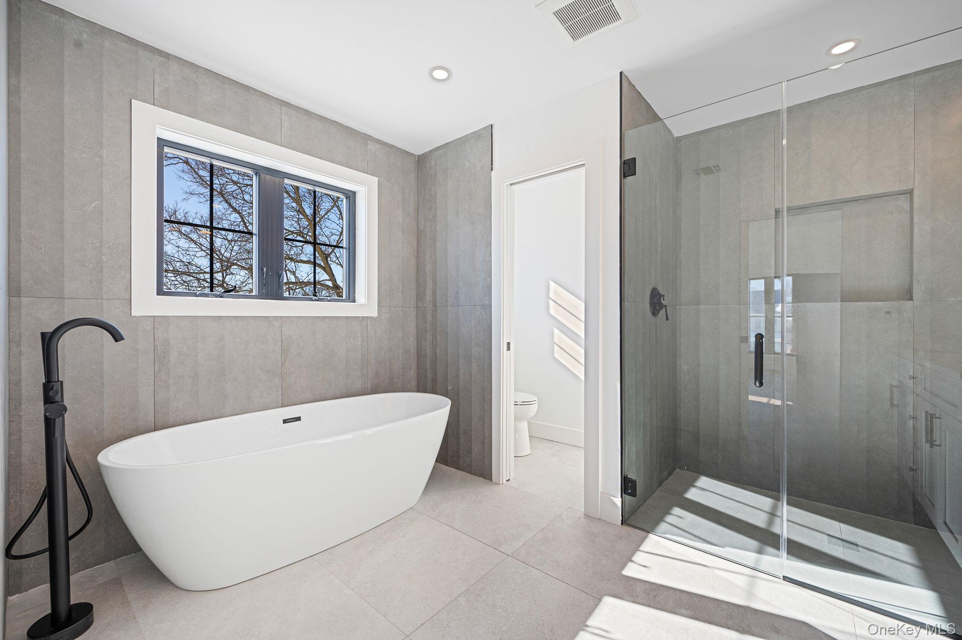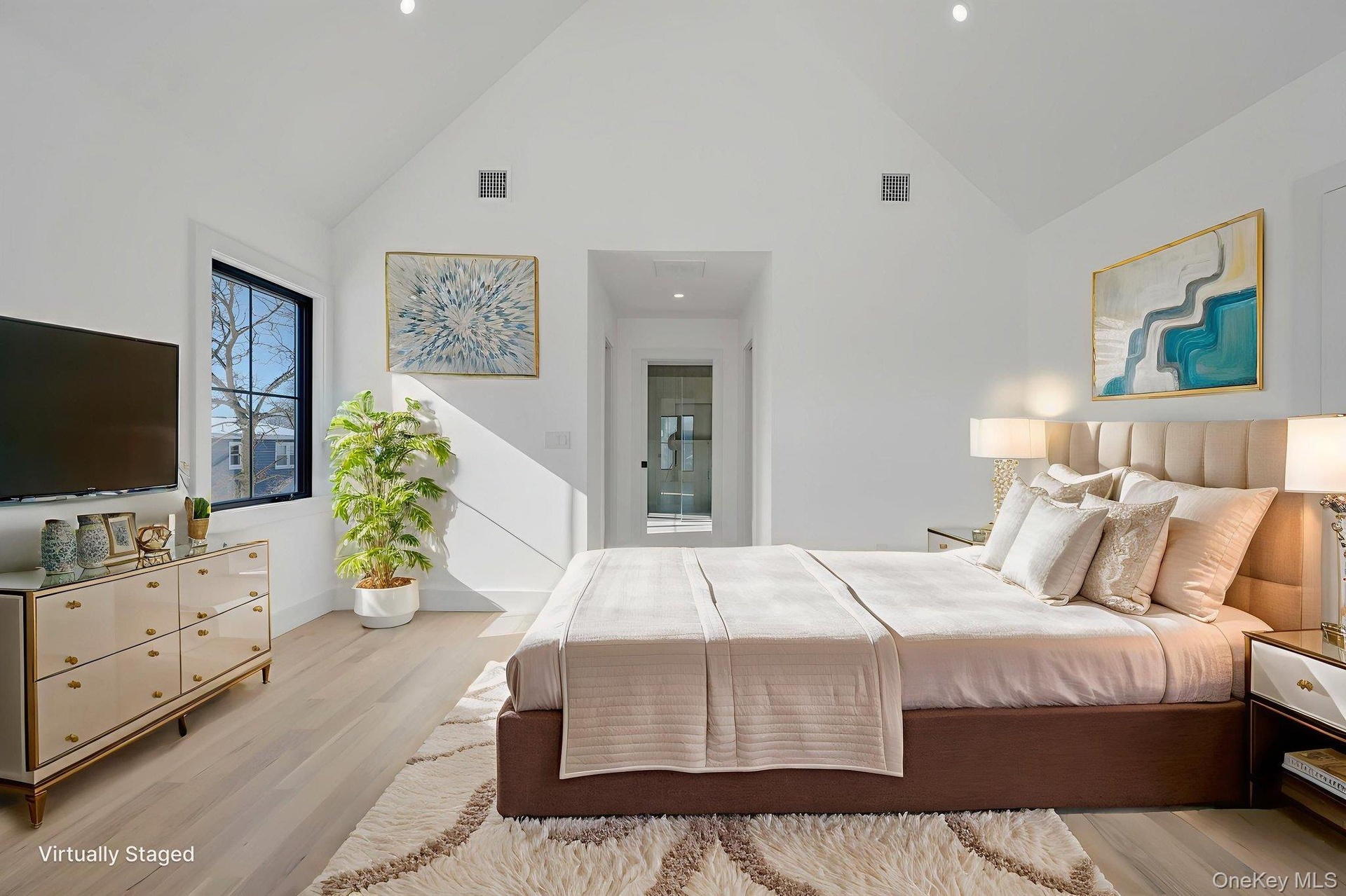 Upstairs, the primary suite feels like a true retreat with vaulted ceilings, large windows, two walk in closets, and a beautifully designed private bath featuring a freestanding soaking tub, oversized glass shower, and modern finishes. Three additional bedrooms are all well proportioned and share a full hall bath. The second floor laundry room adds everyday convenience to the layout.