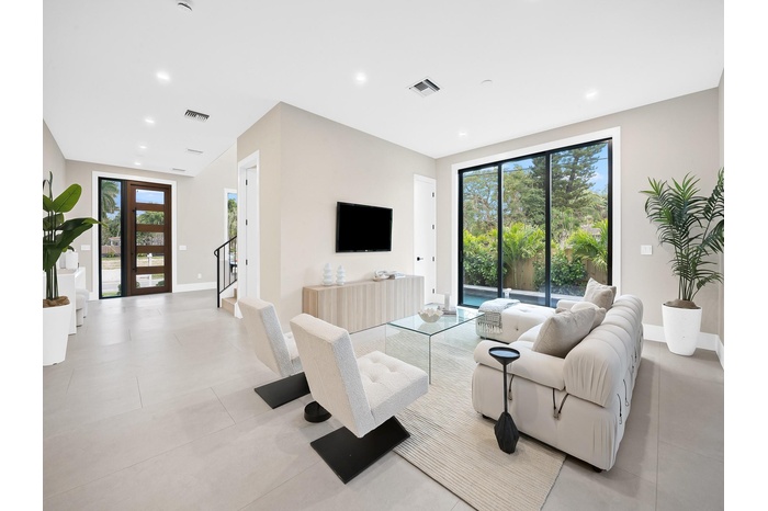 NEW CONSTRUCTION & READY FOR OCCUPANCY | Inspired by contemporary design & architecture in E. Fort Lauderdale. Walls of glass illuminate the open concept design with volume ceilings conducive to today's lifestyle. The culinary kitchen offers upgrade appliances, tremendous storage & a large center island for casual meals & entertaining. The great room opens onto a large side yard with a pool & patio area ideally positioned for sun & tropical breezes. The spacious primary suite boasts a large walk-in closet & lavish bathroom with dual sinks, oversized shower, soaking tub & water closet. 2 additional bedrooms share a full bathroom. Conveniently located 2nd floor laundry room. Oversized 2 car garage provides additional space for storage. Minutes to shopping & restaurants. Sq Ft from architect!