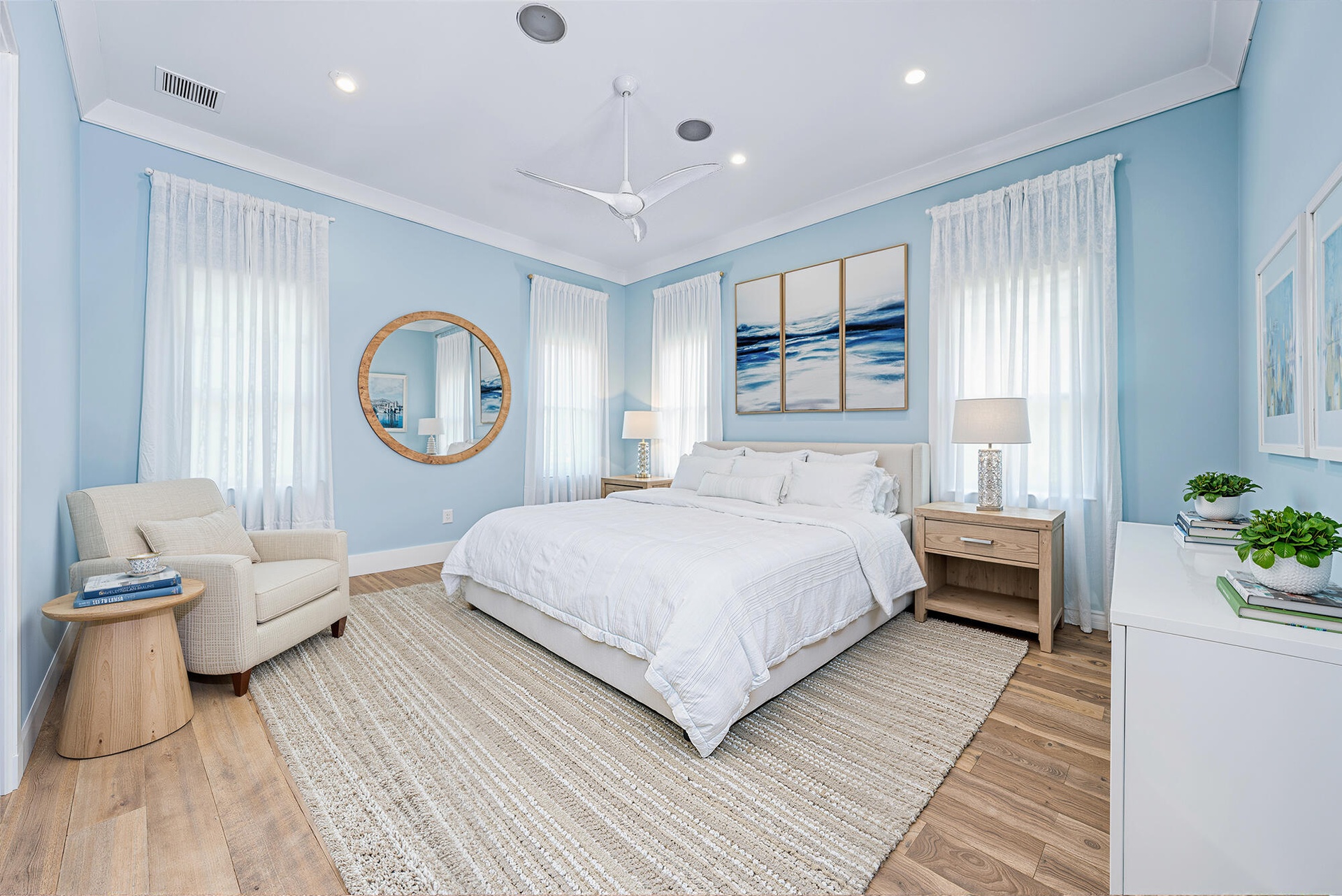 Outside, enjoy a private resort setting with travertine decking, pool, outdoor kitchen, putting green, and ambient landscape lighting - all within a golf-cart-friendly gated community just minutes from premier golf, dining, beaches, and the airport.