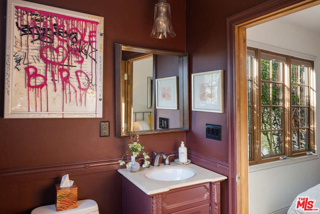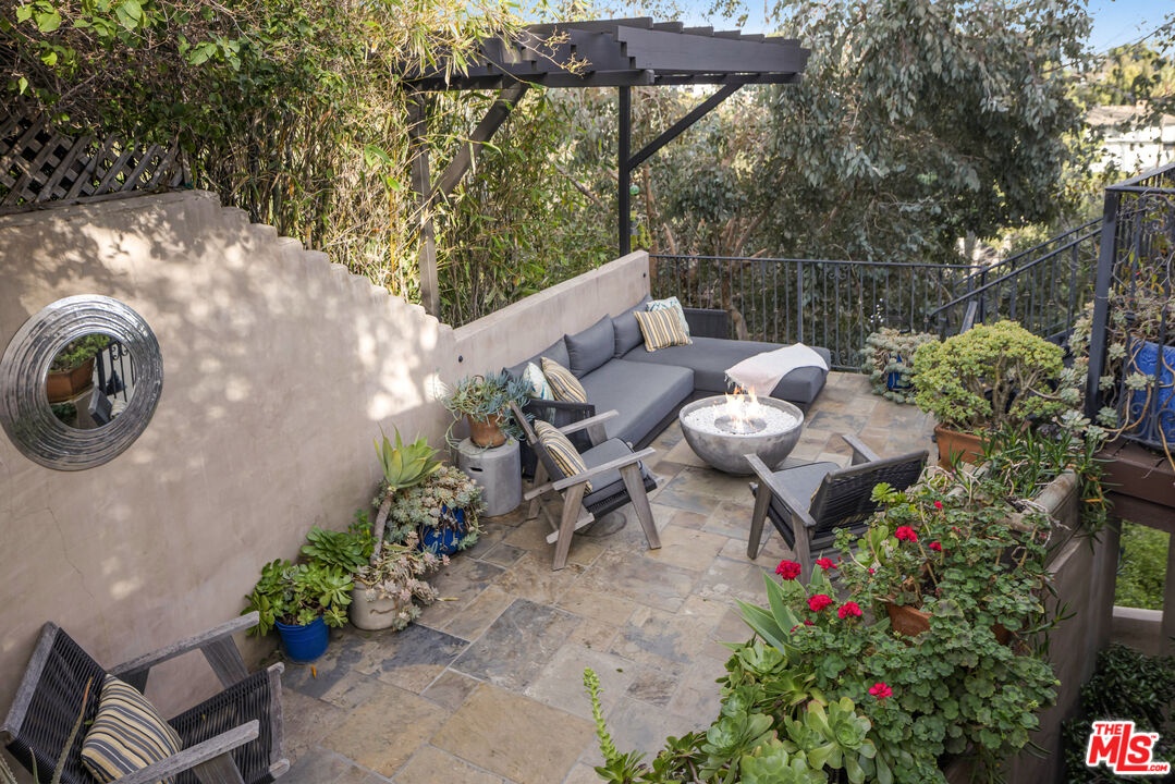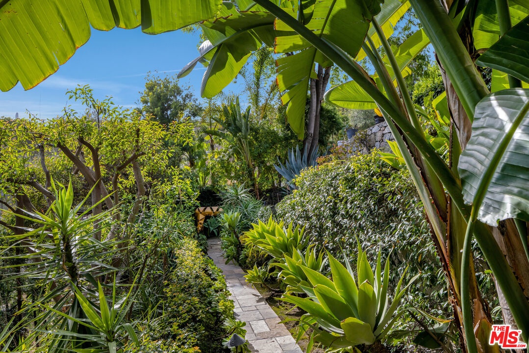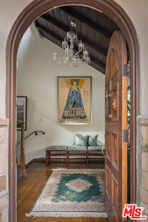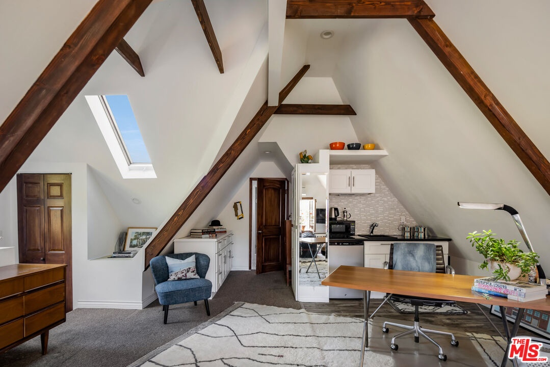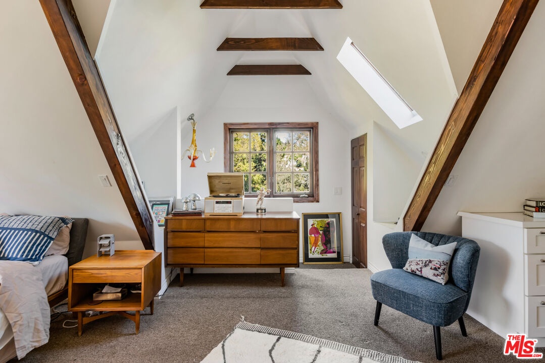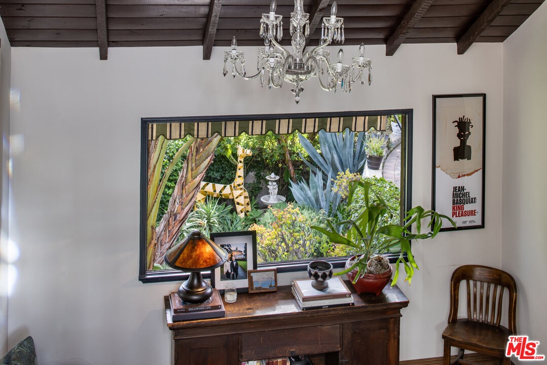 Peacefully tucked amidst the treetops of Beachwood Canyon, this fully furnished 1920s French Normandy chateau is a luxurious retreat where Old Hollywood charm meets modern sophistication! With breathtaking views of the Hollywood Sign, Griffith Observatory, and the iconic Los Angeles skyline, this secluded oasis offers an unparalleled experience in the Hollywood Hills. Step through the arched entryway and be transported to a world of elegance, exquisite walnut millwork, soaring truss ceilings, and abundant windows that bathe the home in natural light. Cathedral ceilings tower over the living room's stone fireplace and scenic French doors, opening to a picturesque deck that sets the stage for unforgettable evenings under the stars. A designer chandelier lends a relaxing mood for intimate gatherings in the dining area. Crafted for the avid cook, the gorgeous kitchen features premium appliances, custom cabinetry, a distinctive backsplash, and gleaming marble countertops. Three generous bedrooms invite you to unwind after a long day, the grandest of which is the primary suite with its exclusive balcony, walk-in closet, and opulent ensuite. Multi-level outdoor seating areas, a covered fitness alcove, and lush greenery make this home an entertainer's dream. Notables include the versatile loft with a separate entry, kitchenette, and a long, gated driveway offering ample parking. Its elevated location makes this sanctuary feel remote despite being only moments from the heart of LA. The house is offered fully furnished