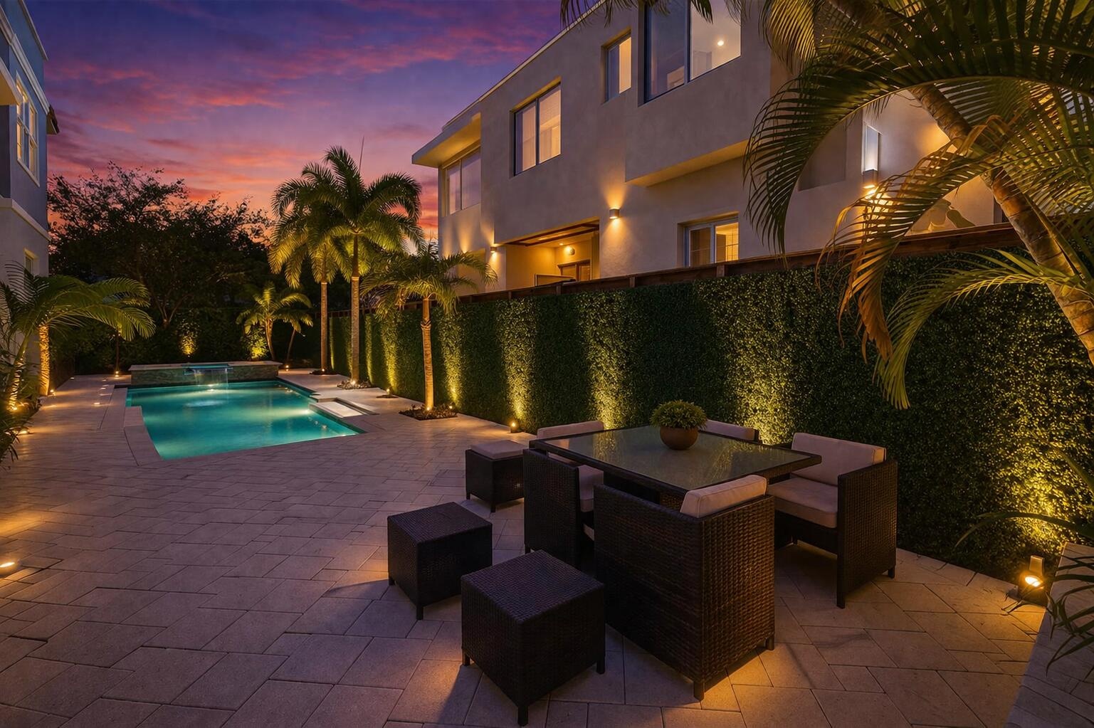 Simply stunning corner unit townhouse in one of Fort Lauderdale’s most desirable neighborhoods, with top-rated schools (Bayview Elementary), parks, and beach access nearby. This 4-bedroom, 4.5-bathroom townhome features an expansive open living area, gourmet kitchen with brand new stove & screened refrigerator, and an upstairs loft ideal for a 4th bedroom or home office / gym. All bedrooms include walk-in closets and private balconies. Two massive rooftop patios off third floor. Private heated pool, large hot tub, and an outdoor kitchen perfect for entertaining. Enjoy sunrise yoga or sunset views from dual rooftop terraces. Complete with a 2-car garage, hurricane impact windows/doors, and lush landscaping. Surrounded by waterfront estates, this townhome offers a luxurious lifestyle.