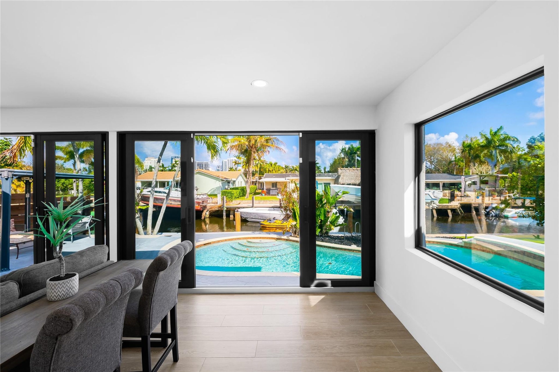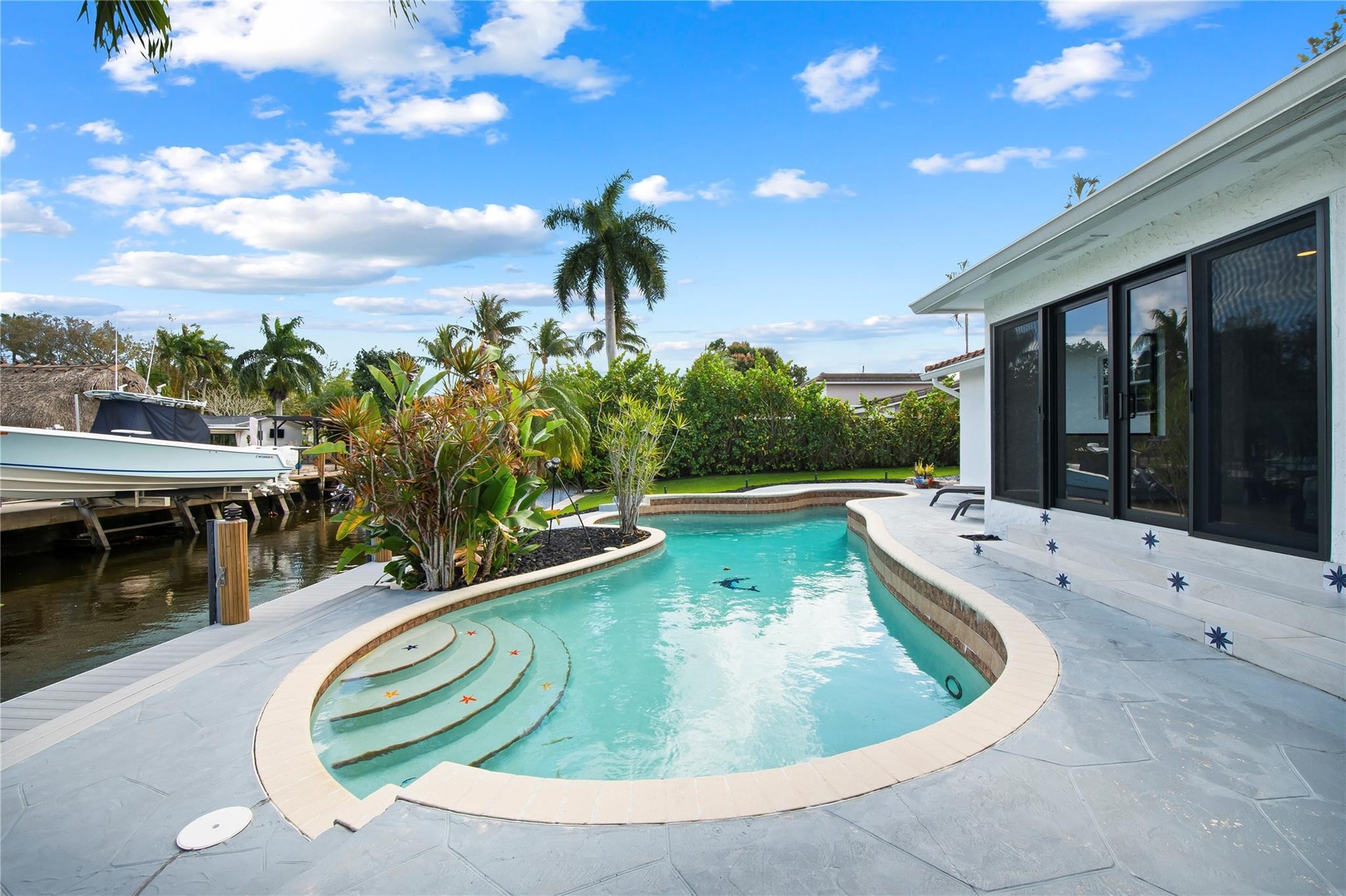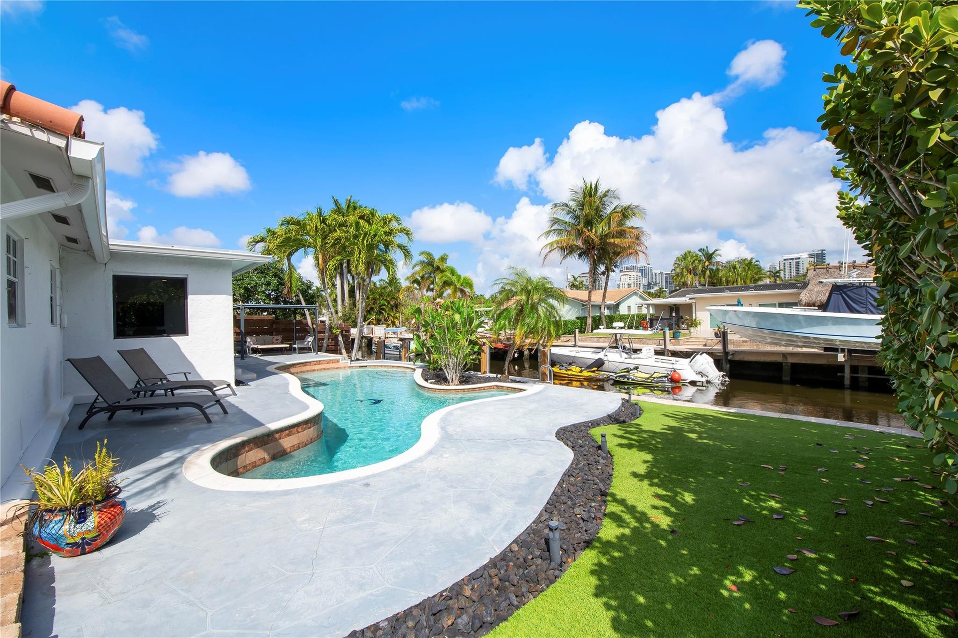 Spectacular and rare fully furnished waterfront opportunity! 3-bed, 2-bath single family pool home with ocean access & NO FIXED BRIDGES! Only two homes off the north fork of the New River, east of the swing bridge! Featuring: 75' of water-frontage, massive heated freeform pool, recently renovated kitchen & baths, brand new dock, partial impact glass, laundry room, massive primary walk-in closet, 2018 HVAC, 2026 water heater and Downtown views! GE & Siemens electrical panels. Just tented, with warranty in place. Located in the sought-after Riverside Park neighborhood, you are walking distance to several parks, Riverside Market, Chimney House, The Riverwalk, Las Olas Blvd & more! Note: 1-car garage is currently used as a the 3rd bedroom. Tile roof 2001. No HOA!