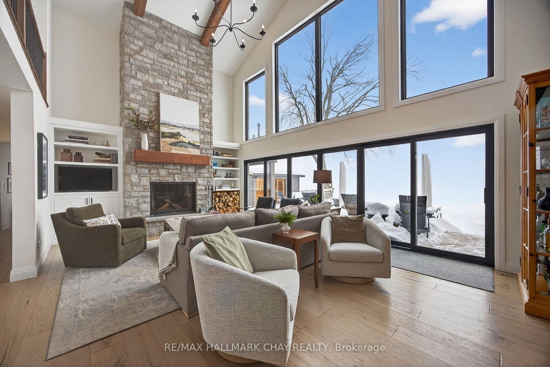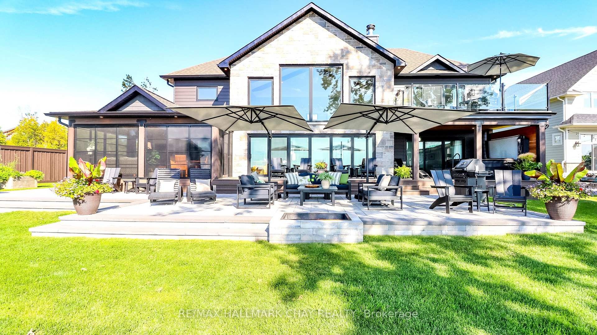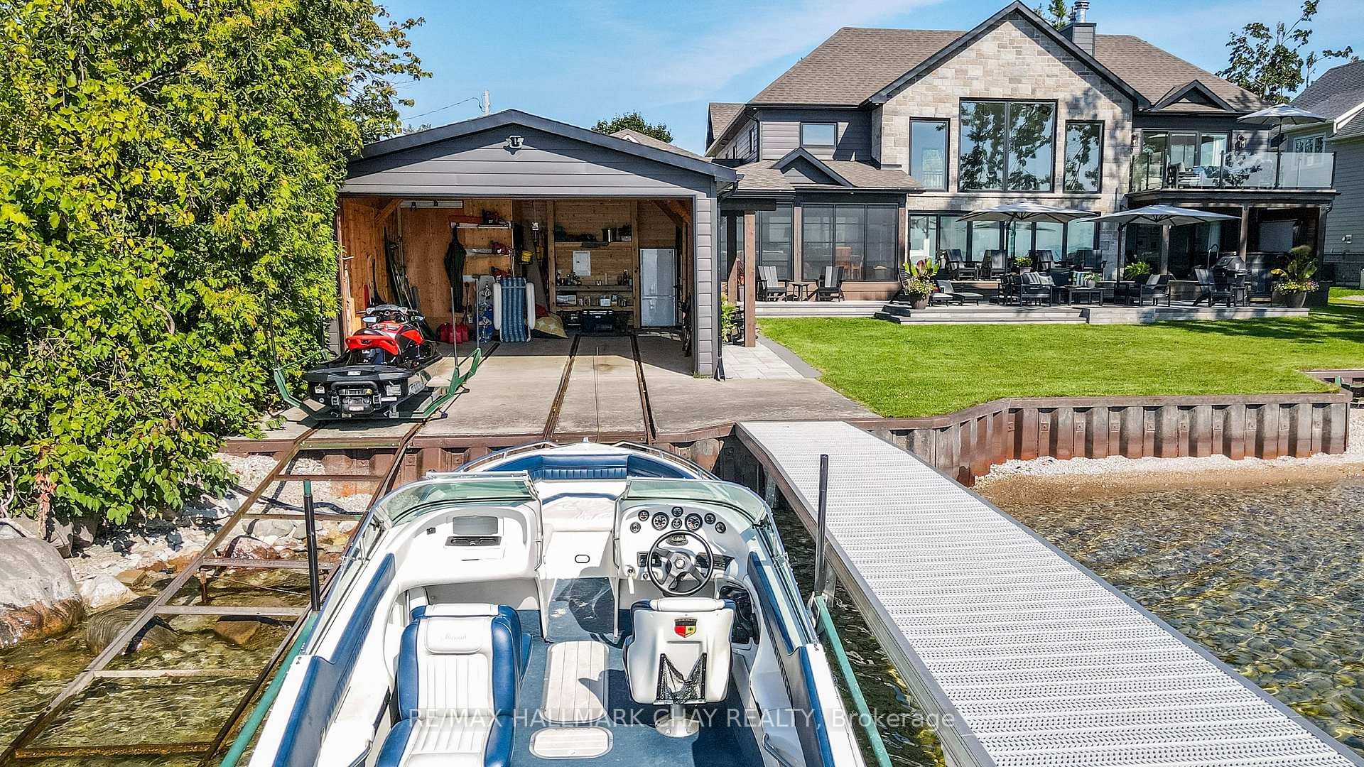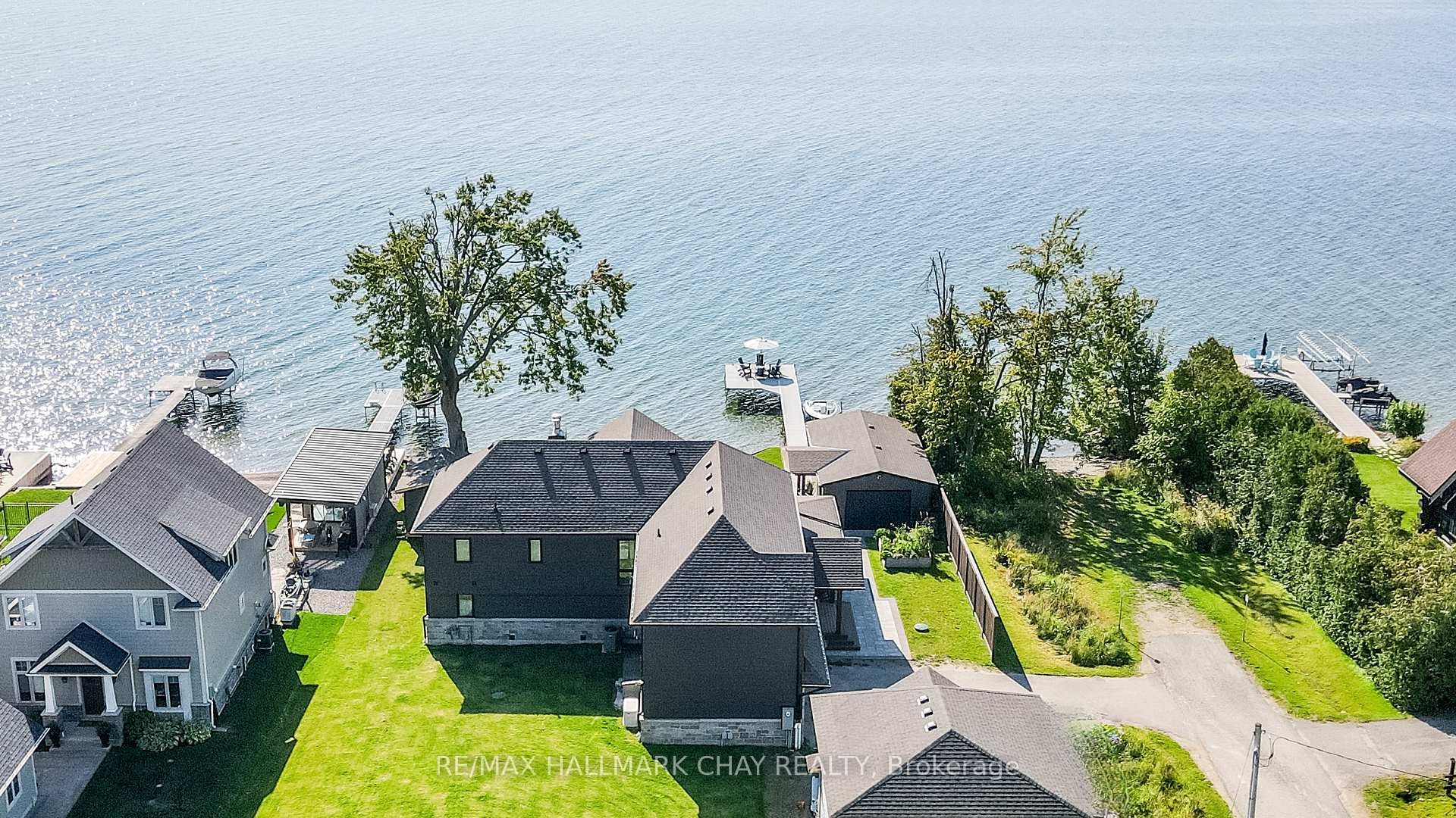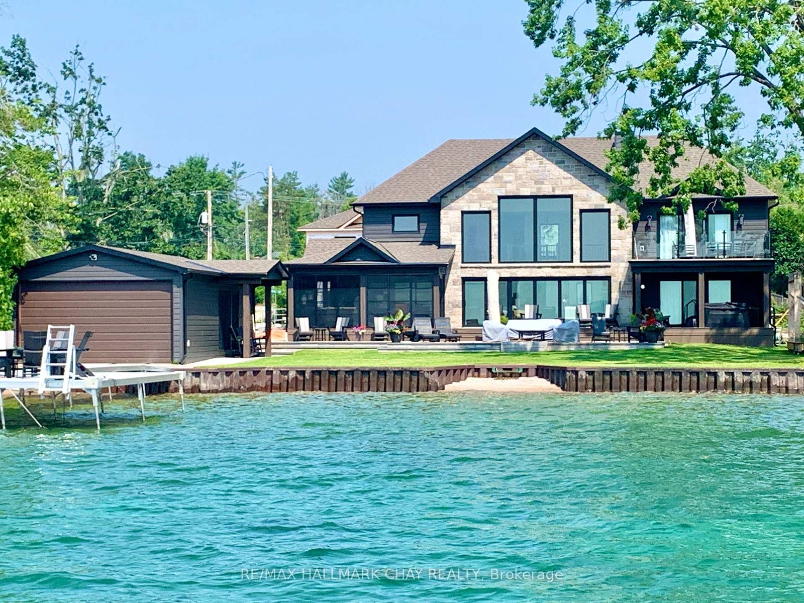 Exceptional south-facing lakefront estate offering 4370 sq ft of fully renovated living on 100' x 194' of flat, steel-pile protected shoreline. Breathtaking water views from nearly every room. Luxury waterfront just 15 minutes from Barrie or Orillia.Thoughtfully redesigned in 2023, features two spectacular Primary Bedrooms, 1 main floor & 2nd upstairs - each with ensuite bathrooms, heated floors, separate water closets, walk-in closets, floor-to-ceiling windows opening to private Lakeview decks. The lower suite offers covered deck hot tub access, while the upper suite features a glass railing deck. The 3rd spacious upper bedroom could be split into 2, has 5 pc ensuite & heated floors. House designed for a fifth bedroom/office or fitness space upstairs, easily converted. The Show-Stopping Great Room has floor-to-ceiling glass, ceiling wood beams, Napoleon wood-burning fp w/ Owen Sound stone and custom built-in cabinets. Hardwood flooring throughout w/ luxury carpet in bedrms. The chef's kitchen offers water views, Bosch Wall Oven & Microwave, gas range, custom cabinetry, Quartz countertops & backsplash, large island for six, and dedicated coffee bar. Enclosed 3 season Sunroom with Douglas Fir floors & ceiling, Sun-Tek windows/screens, room for sitting and eating area. Inside entry from garage into family sized mud/ laundry room, dog wash & powder room. Amenities continue: UV water system, whole-home generator, automated irrigation and lighting, new septic system, lakeside patio & fire pit, dry double boathouse with dual railways, workshop, storage for water toys, new 60' dock with huge seating area. A 2-storey Detached heated/air-conditioned garage built to fit a golf simulator, second story for 5th bedroom or games room. 21' Bow-rider boat included. Refined waterfront living at its absolute best - impeccably renovated, thoughtfully designed, and built for unforgettable moments on the water. Homes of this calibre, condition, and location are rarely offered.