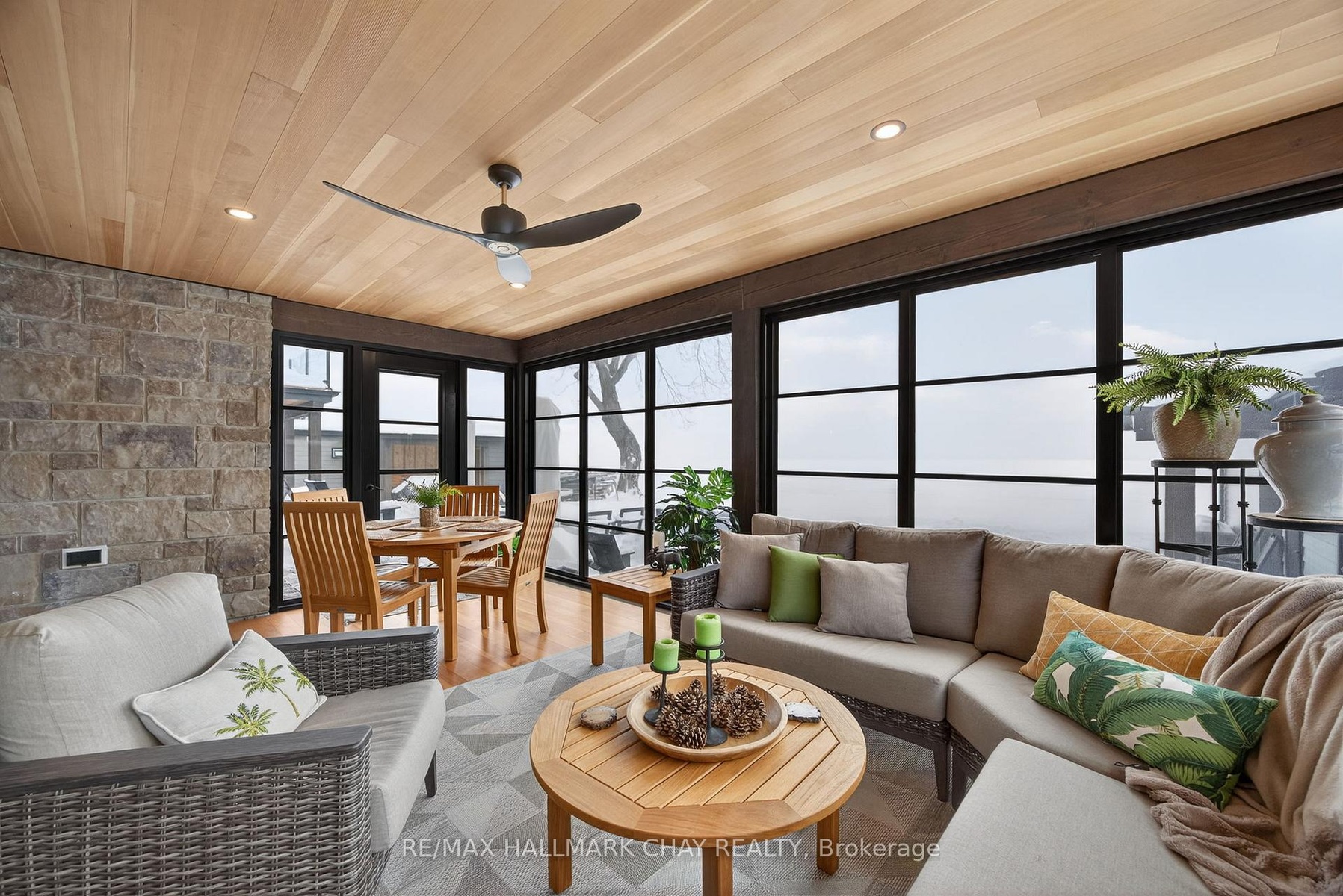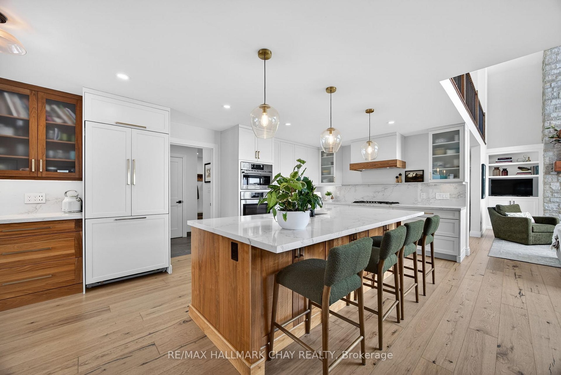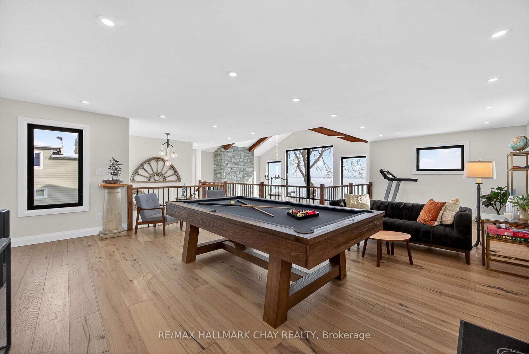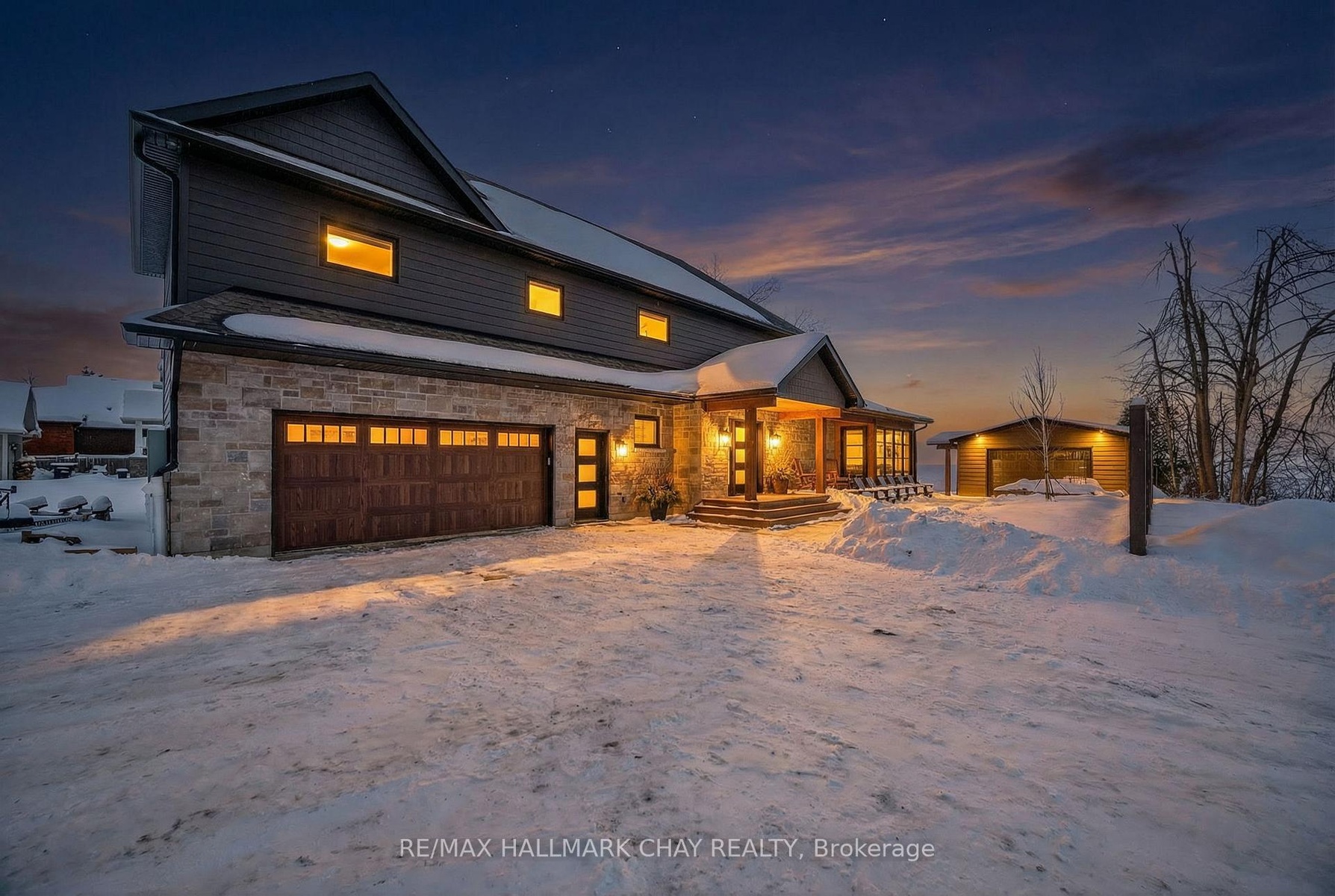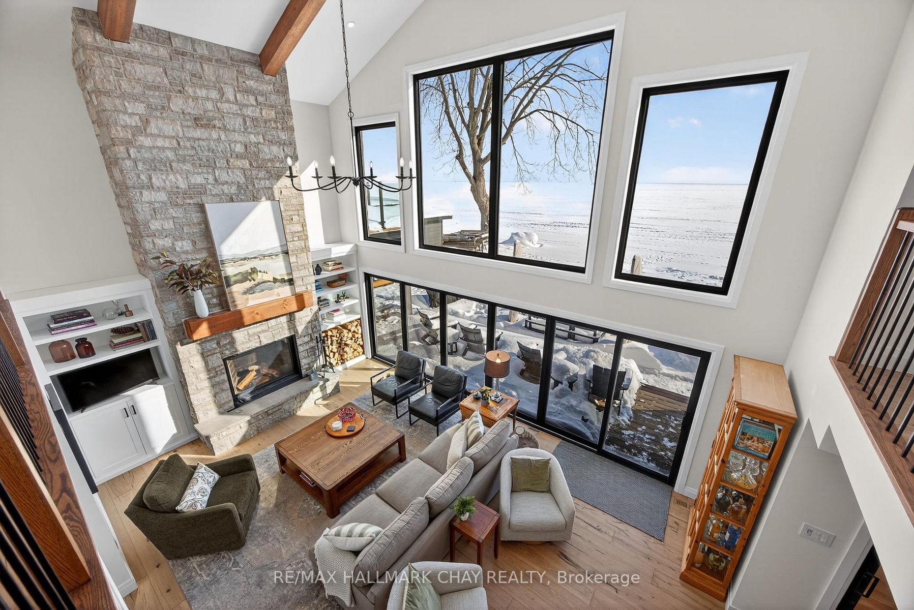 Exceptional south-facing lakefront estate offering 4370 sq ft of fully renovated living on 100' x 194' of flat, steel-pile protected shoreline. Breathtaking water views from nearly every room. Luxury waterfront just 15 minutes from Barrie or Orillia.Thoughtfully redesigned in 2023, features two spectacular Primary Bedrooms, 1 main floor & 2nd upstairs - each with ensuite bathrooms, heated floors, separate water closets, walk-in closets, floor-to-ceiling windows opening to private Lakeview decks. The lower suite offers covered deck hot tub access, while the upper suite features a glass railing deck. The 3rd spacious upper bedroom could be split into 2, has 5 pc ensuite & heated floors. House designed for a fifth bedroom/office or fitness space upstairs, easily converted. The Show-Stopping Great Room has floor-to-ceiling glass, ceiling wood beams, Napoleon wood-burning fp w/ Owen Sound stone and custom built-in cabinets. Hardwood flooring throughout w/ luxury carpet in bedrms. The chef's kitchen offers water views, Bosch Wall Oven & Microwave, gas range, custom cabinetry, Quartz countertops & backsplash, large island for six, and dedicated coffee bar. Enclosed 3 season Sunroom with Douglas Fir floors & ceiling, Sun-Tek windows/screens, room for sitting and eating area. Inside entry from garage into family sized mud/ laundry room, dog wash & powder room. Amenities continue: UV water system, whole-home generator, automated irrigation and lighting, new septic system, lakeside patio & fire pit, dry double boathouse with dual railways, workshop, storage for water toys, new 60' dock with huge seating area. A 2-storey Detached heated/air-conditioned garage built to fit a golf simulator, second story for 5th bedroom or games room. 21' Bow-rider boat included. Refined waterfront living at its absolute best - impeccably renovated, thoughtfully designed, and built for unforgettable moments on the water. Homes of this calibre, condition, and location are rarely offered.