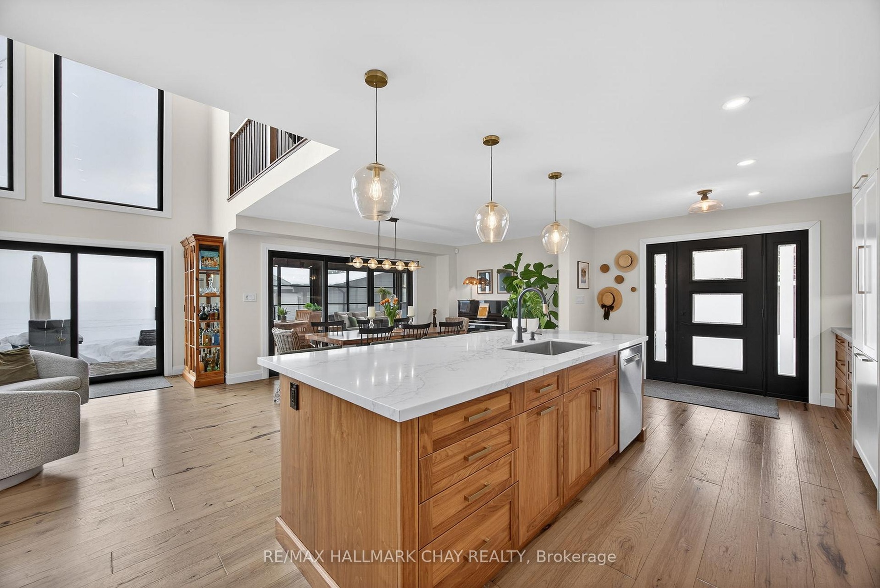 Exceptional south facing lakefront estate offering 4370 sq ft of fully renovated living on 100' x 194' of flat, steel pile protected shoreline.