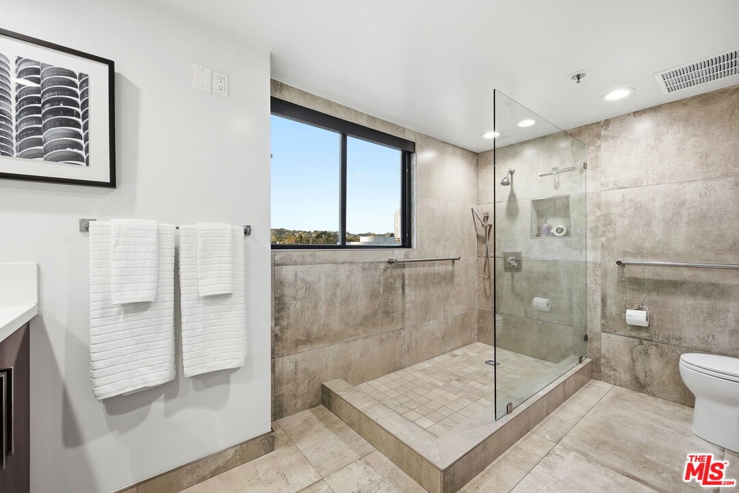 Exceptional Opportunity!!! Discover a sleek and chic, meticulously remodeled 2 bedroom, 2.5 bathroom condominium located in the Wilshire Manning, a full-service high-rise on the Wilshire Corridor. The residence features a formal entry leading into light-filled spacious living and dining areas. White porcelain floor tiles extend throughout the main living spaces, creating a bright and airy atmosphere. Floor-to-ceiling double sliding glass doors enhance natural light and showcase picturesque city and mountain views, while built-in custom cabinetry equipped with a wine fridge adds both style and functionality. The open-concept kitchen is outfitted with top-of-the-line Viking appliances and stylish, high-end cabinetry. A sizeable quartzite central island serves as the focal point, ideal for effortless entertaining and culinary creativity. The spacious primary bedroom features elegant wood flooring, double layered windows for shielding sound, revealing Ocean and City views. A large walk-in closet completes the personal retreat. The spa-inspired primary bathroom showcases a walk-in shower, concrete walls, and a double vanity, all embodying a clean, modern aesthetic. The secondary ensuite bedroom also features wood flooring, double layered window unveiling Ocean and City views, a walk-in closet and a full bath, ensuring comfort and privacy for guests or family. A side-by-side washer and dryer are conveniently situated in the hallway, away from the kitchen for optimal functionality. Residence includes two separate parking spaces, with one equipped with its OWN EV CHARGER for electric vehicles. Building amenities include 24-hour security and valet parking, an elegant lobby, fitness center, pool, and a conference room for residents. This home is move-in ready and offers a neutral palette, making it easy to personalize and create an ideal environment. Building is conveniently located close to 405 freeway, UCLA, Westwood, Century City and Beverly Hills...moments away from best shopping, dining and entertaining destinations.