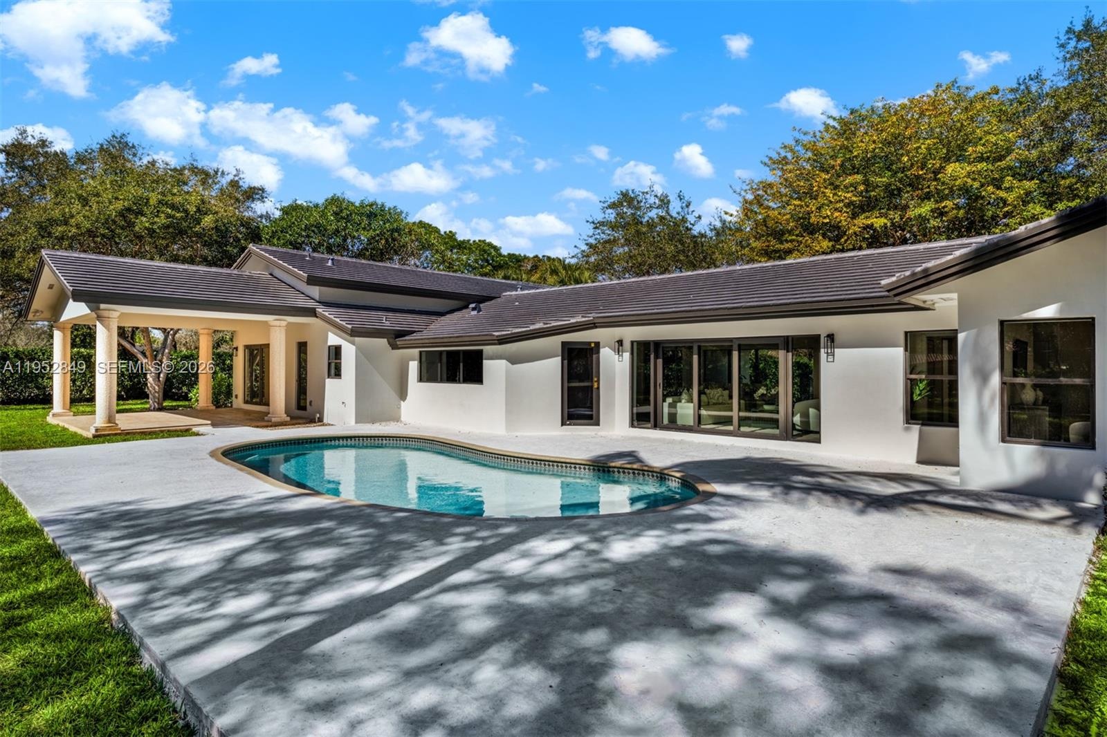 Set on a gated 31,798 SF lot in the heart of Pinecrest, this thoughtfully remodeled 4BD/3.5BA residence offers 4,016 total SF of light-filled living space. The split floor plan flows effortlessly for everyday living and entertaining, with a dedicated office for added flexibility. Comprehensive upgrades include a new roof, plumbing, electrical, AC systems, and full impact glass throughout. The designer kitchen features high-end appliances and refined finishes. The expansive backyard offers room to create a future resort-style retreat. Ideally located near top-rated schools, parks, and dining, this move-in-ready home embodies the best of Pinecrest living.