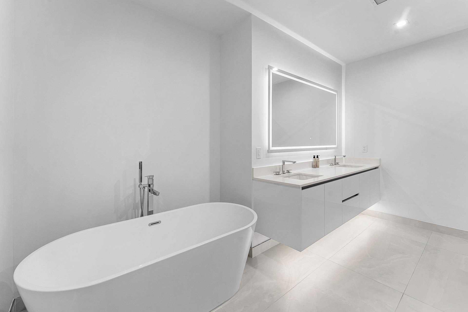 Nautilus 220 is an exclusive luxury condo community - perfectly positioned along the marina and just minutes from downtown West Palm Beach and Palm Beach Island - offering waterfront living at its finest. Nautilus features 24-hour concierge and an expansive one-acre outdoor amenity deck designed for true resort-style enjoyment. This stunning, never before lived in, East facing residence is 2-bed/2-bath PLUS A DEN and beautifully designed with 10-foot ceiling and porcelain tile throughout. The contemporary kitchen features waterfall quartz countertops, brand new Miele appliances, European-style cabinetry, and a built-in wine cooler. The spacious owner's suite offers a spa-inspired bathroom with a freestanding soaking tub, large walk-in closets, and gorgeous water views. Sweeping views of intracoastal and marina create a breathtaking living experience. Parking is located on the same floor as the apartment (3rd floor). A private entrance provides direct and private access to the 25th-floor rooftop pool deck. Residents enjoy an unparalleled collection of amenities spanning indoor and outdoor spaces. The one-acre amenity deck includes a resort-style pool and sundeck, fire pit, putting green, and an off-leash dog park. Two levels of indoor amenities on the 6th floor offer a state-of-the-art fitness center, golf/sports simulators, bowling alley, theater, kids' playroom, sauna, steam rooms, and club lounges. A rooftop pool deck and spa provide spectacular views of Singer Island, Palm Beach, and beyond. Additional lifestyle benefits include private beach club access, marina access, 24-hour onsite security, and David Burke's newly opened SeaHawk Prime.